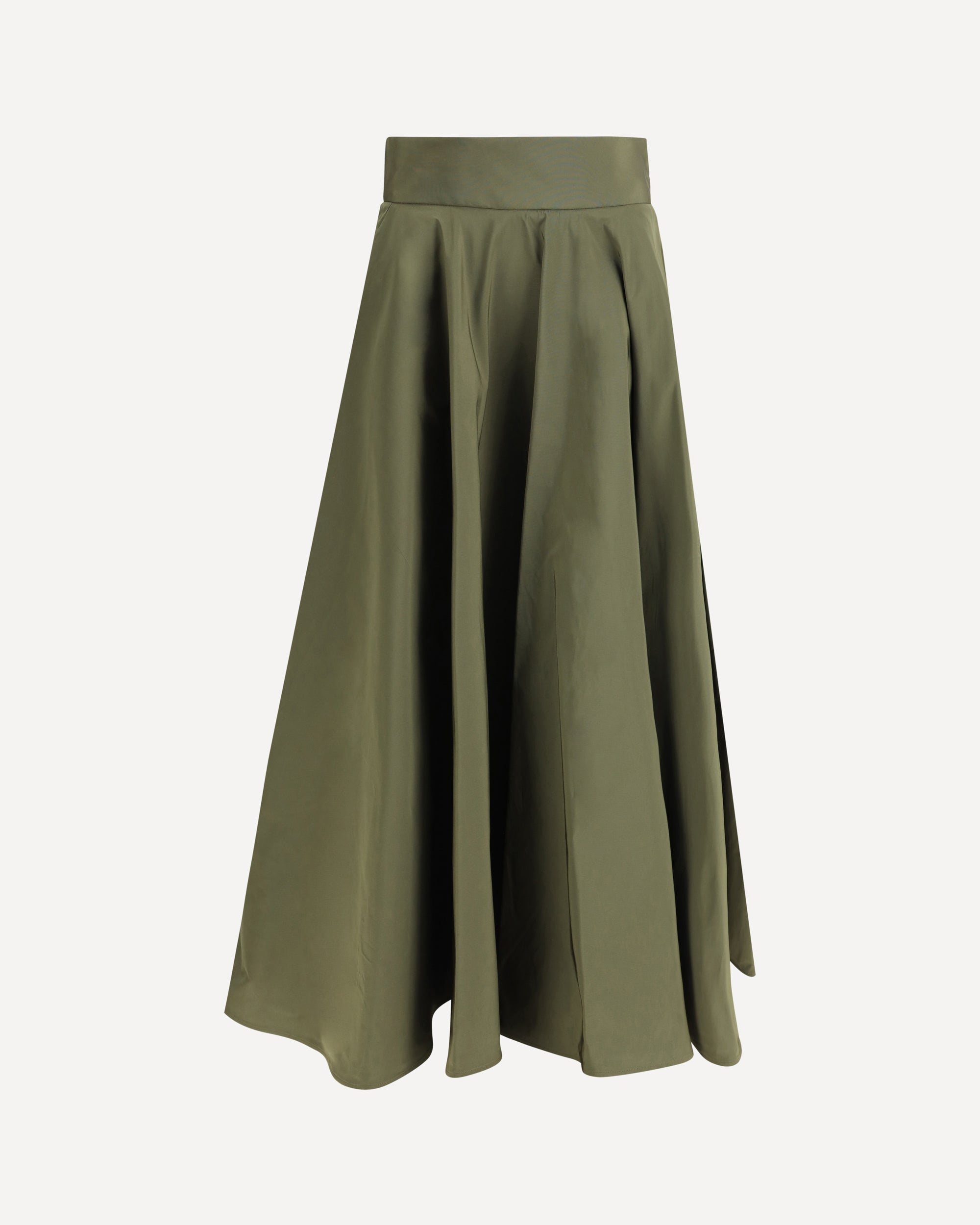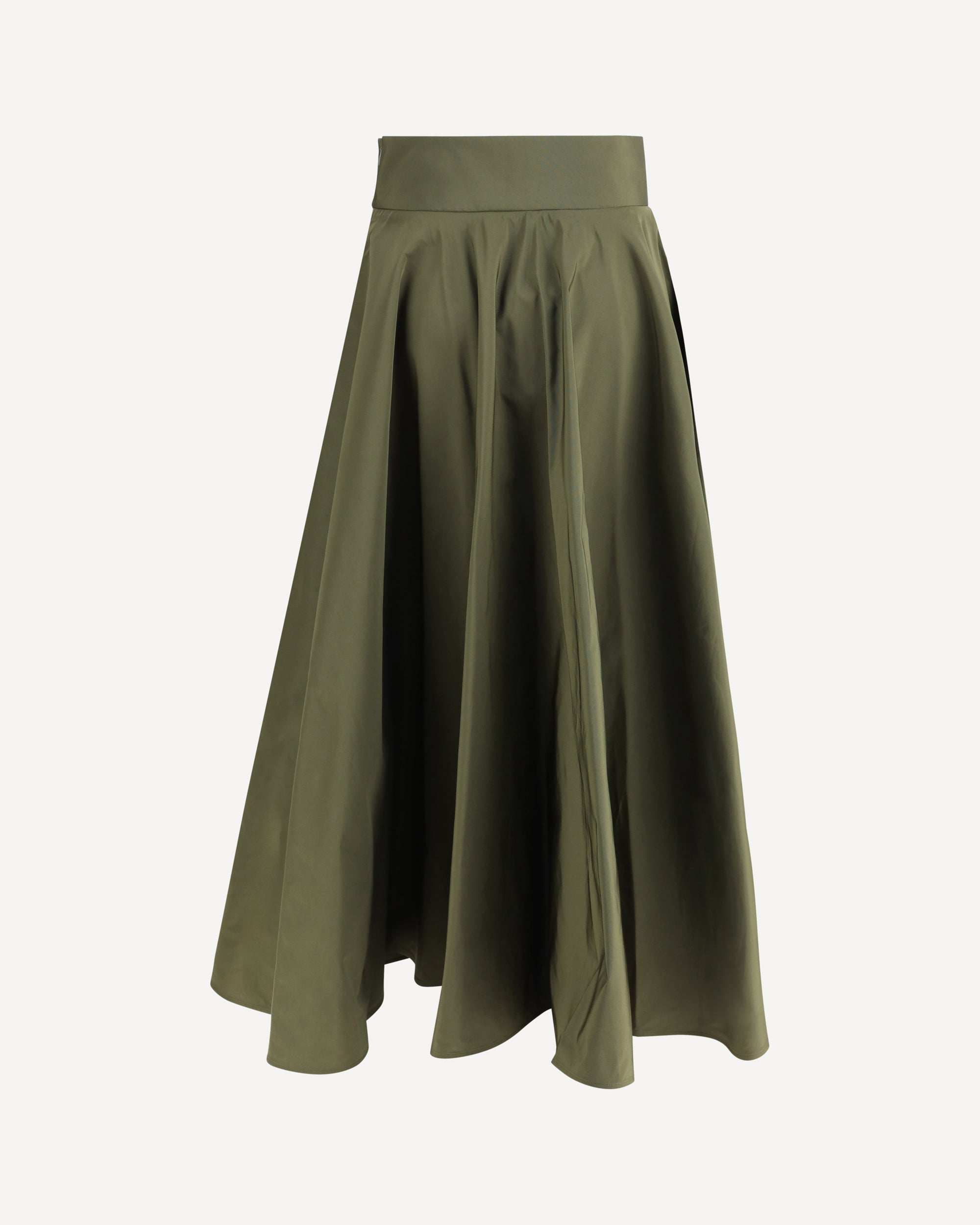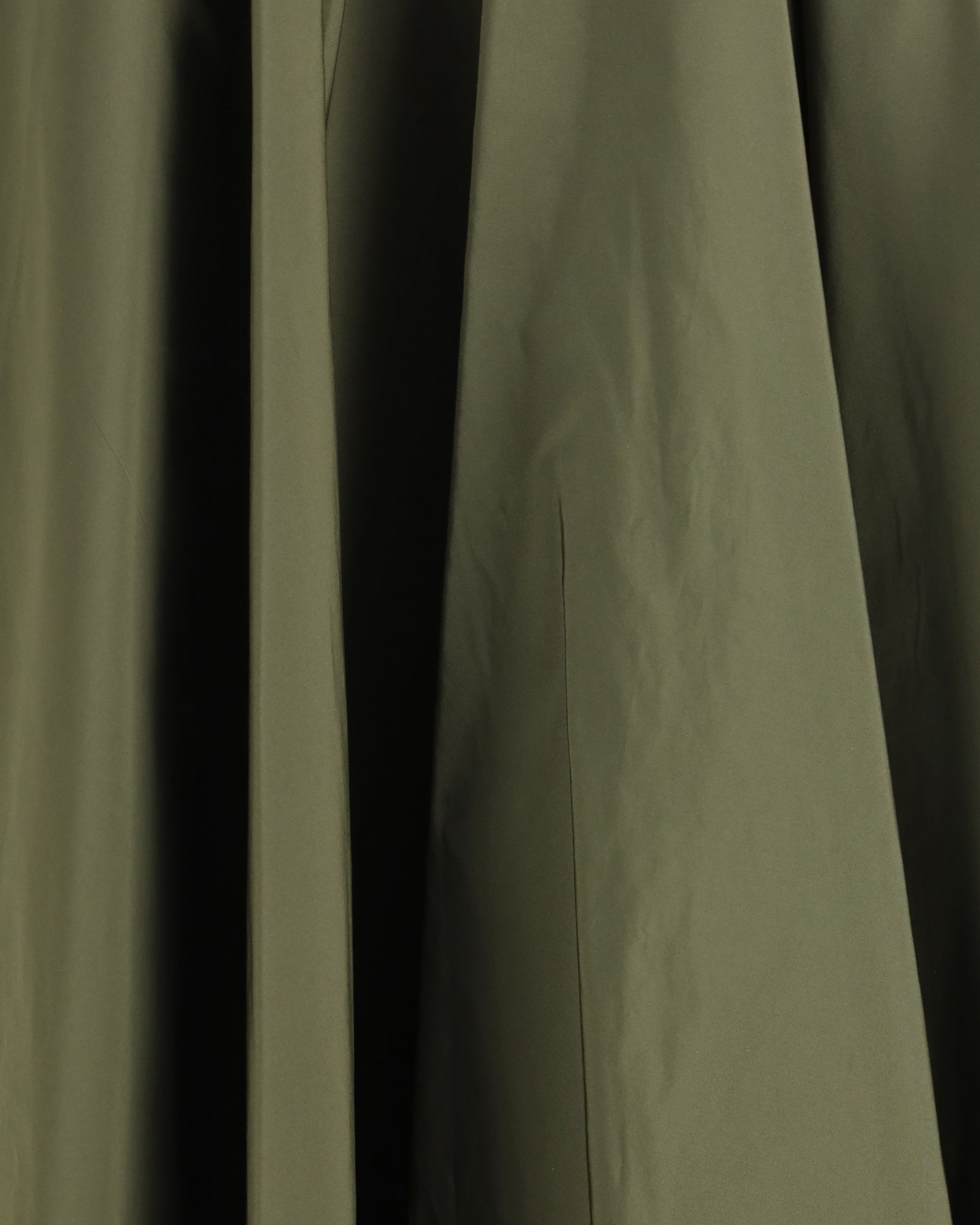 Sara Roka's circle midi Skirt is a garment with a sophisticated and contemporary style. Made of lightweight, structured nylon, it stands out for its wide, flowing line that lends movement and femininity to the silhouette. The side zipper closure ensures a comfortable and discreet fit, while the two front welt pockets add a functional and tailored detail. Versatile and modern, it is perfect for completing urban or more elegant looks with a touch of originality.