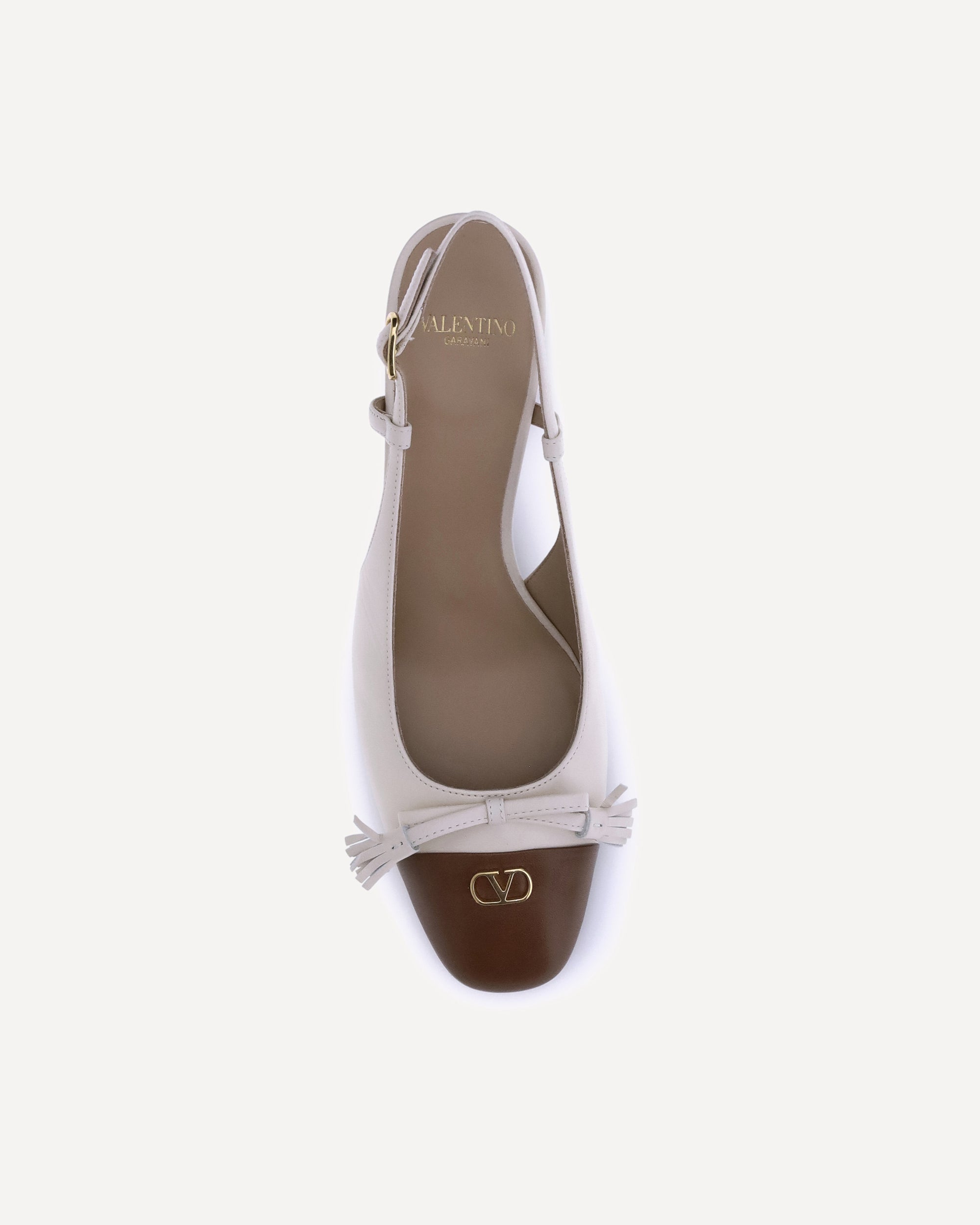 Valentino Garavani's Valet Du Roi Pumps reinterpret classic style with an old-world elegance. Made of two-tone kid leather, they feature a slingback silhouette embellished with the Signature VLogo detail in brass with an antiqued effect. A refined leather tassel bow and adjustable buckle strap complete the design for a customized fit and sophisticated look.