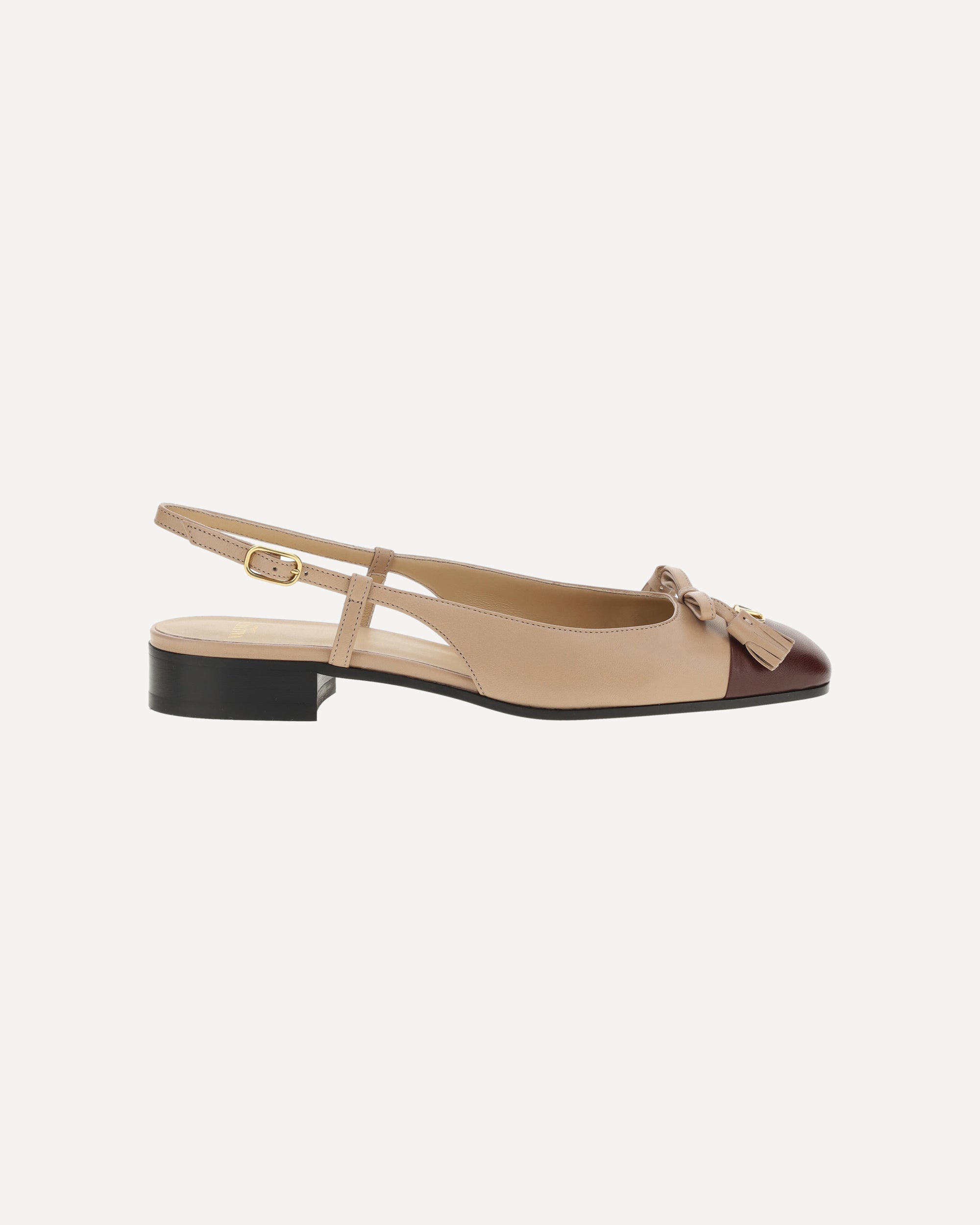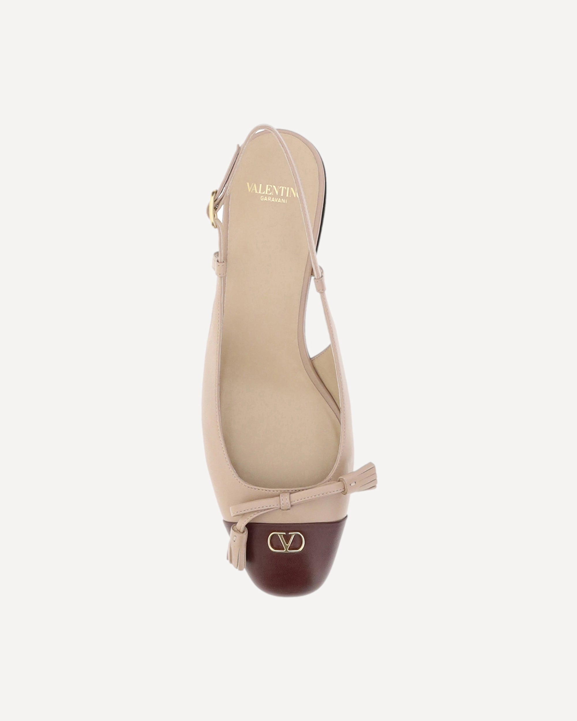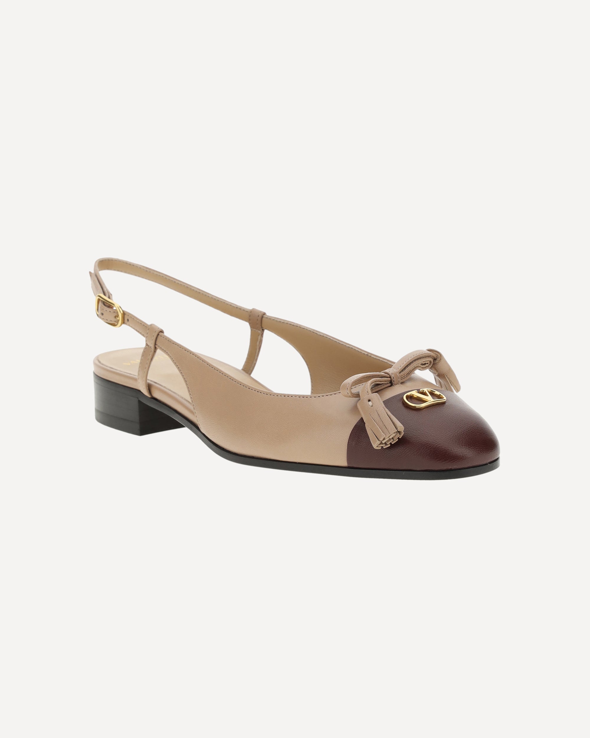 Valentino Garavani's Valet Du Roi Ballerinas are an elegant and sophisticated interpretation of the classic slingback style. Fastened at the back via an adjustable buckle, they feature a slightly squared toe and a block heel for a comfortable, stable walk. A bow on the front adds a touch of femininity, while the golden plaque with the brand's iconic logo applied to the front underscores their luxury and sophistication.