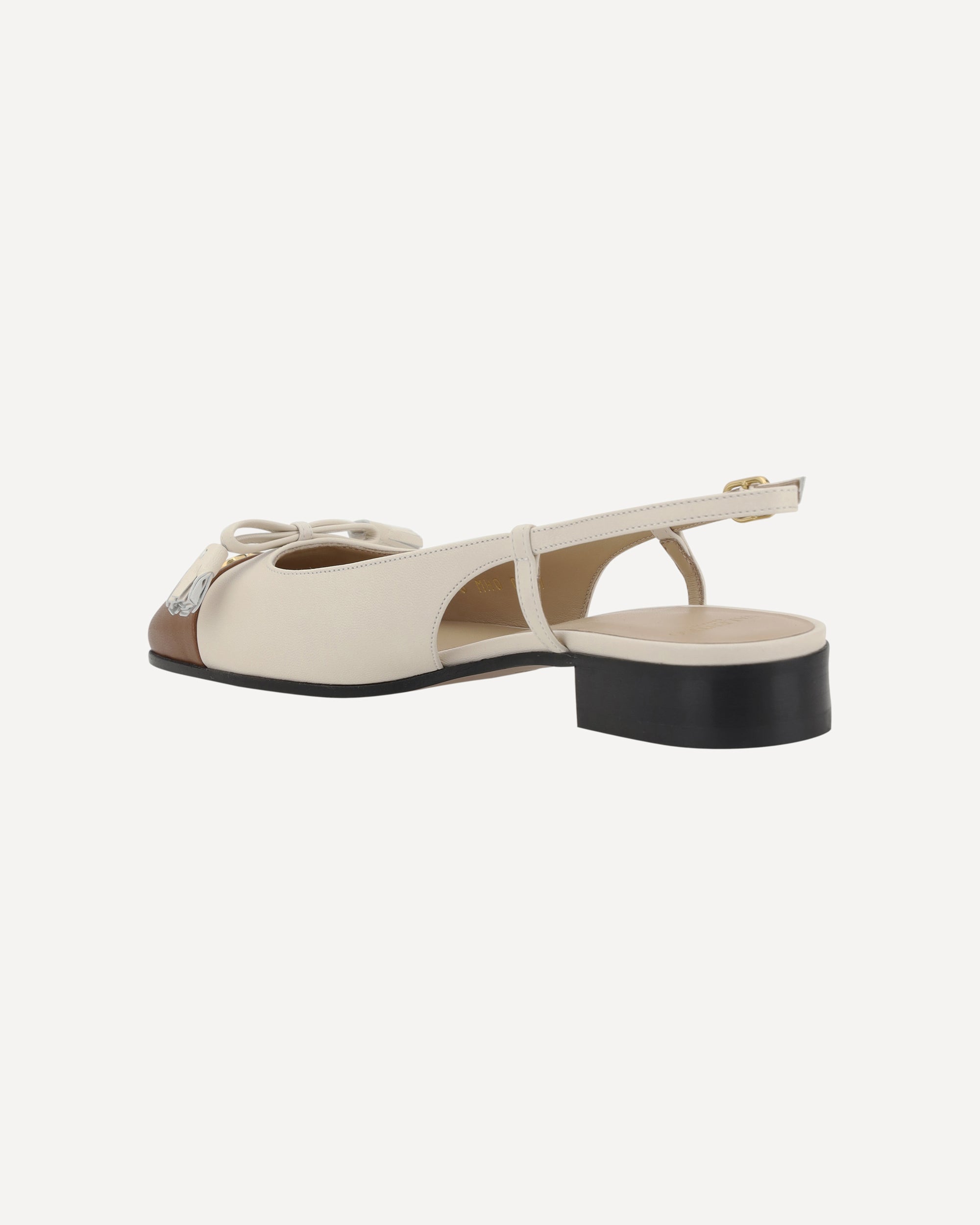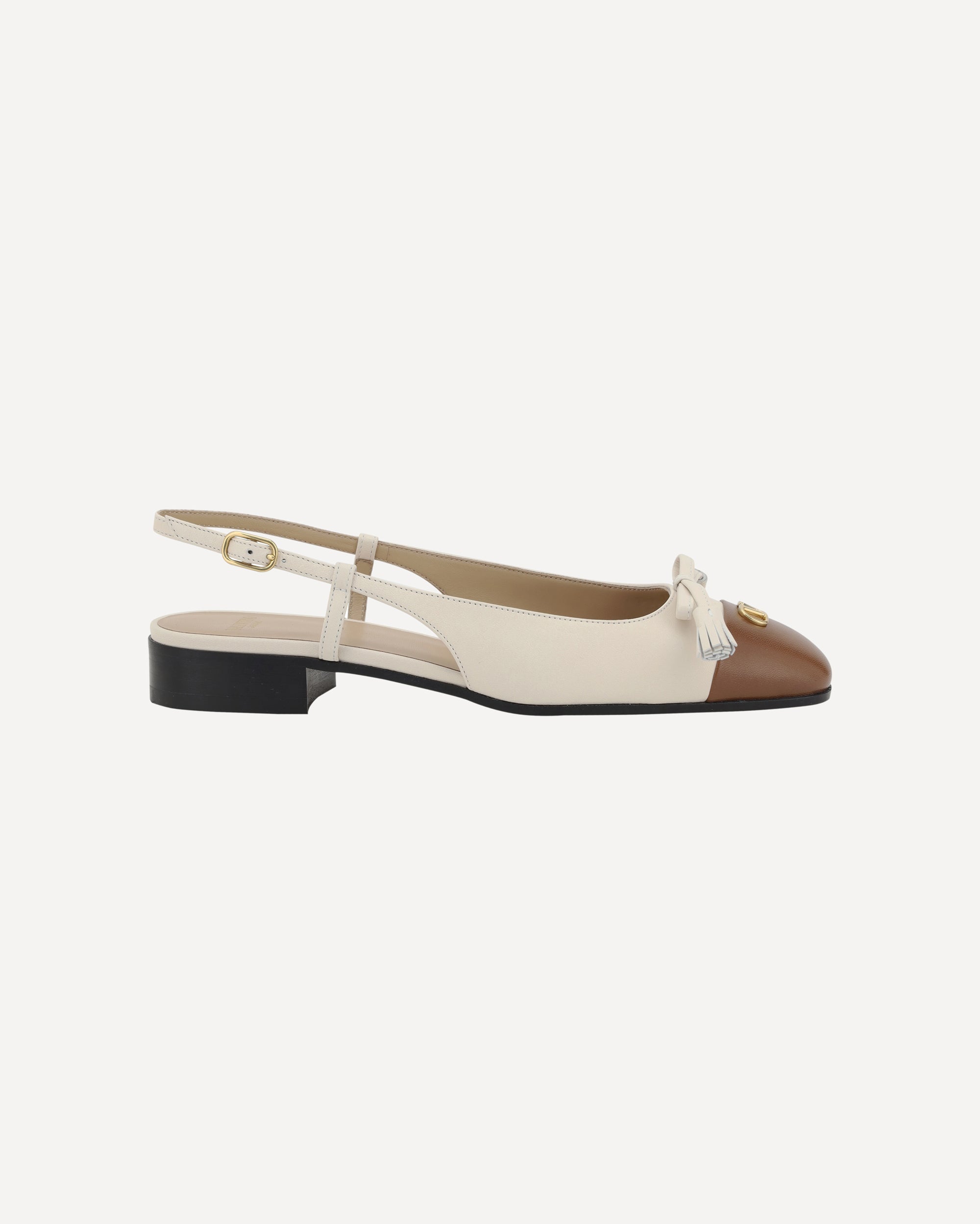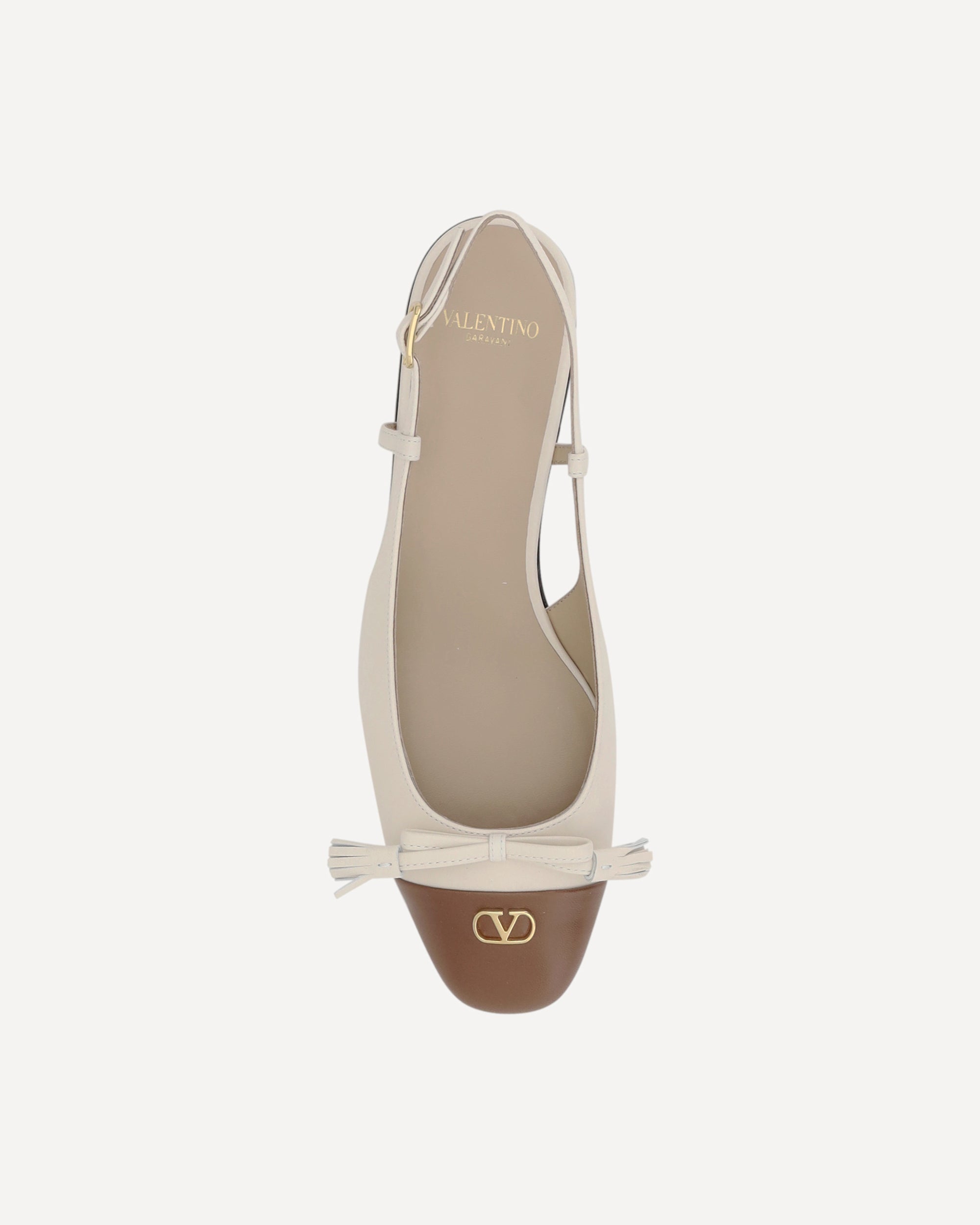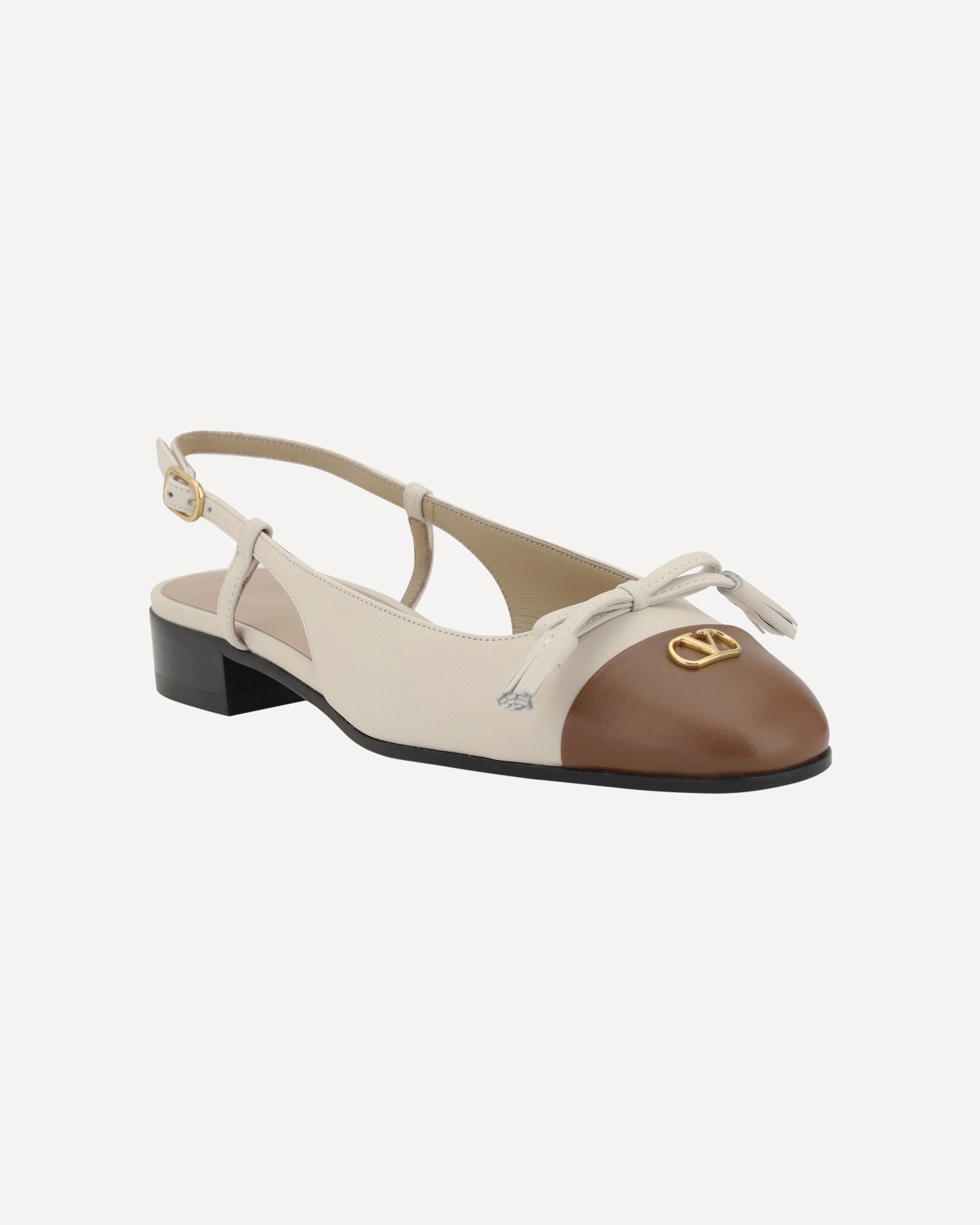 Valentino Garavani's Valet Du Roi Ballerinas are an elegant and sophisticated interpretation of the classic slingback style. Fastened at the back via an adjustable buckle, they feature a slightly squared toe and a block heel for a comfortable, stable walk. A bow on the front adds a touch of femininity, while the golden plaque with the brand's iconic logo applied to the front underscores their luxury and sophistication.