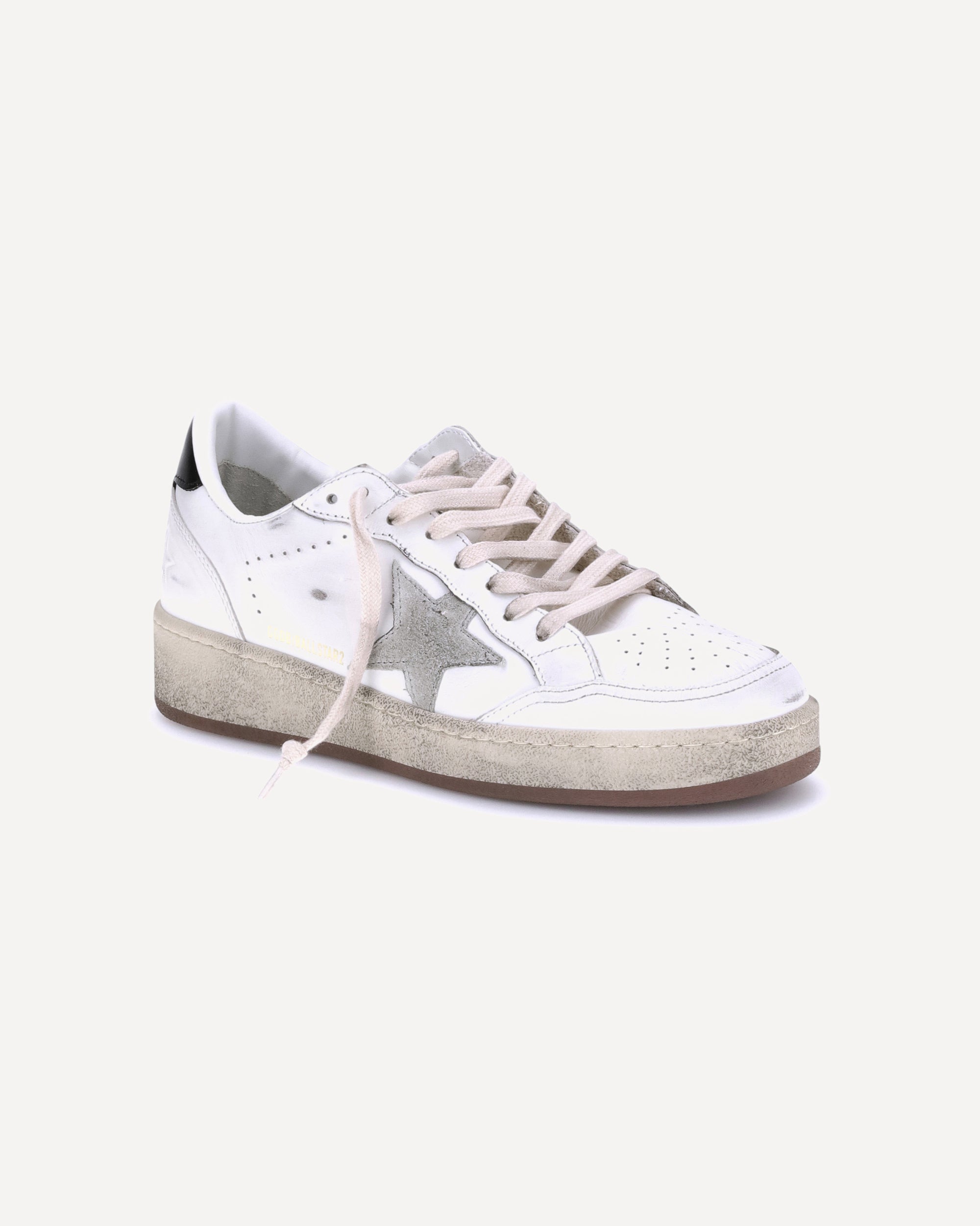 Golden Goose's Ball Star leather Sneakers combine comfort and urban style flawlessly. The lace-up front closure and round toe ensure a comfortable and practical fit, while the flat sole offers stability. The iconic star on the outer side panel and the press-on logo on the same panel add a distinctive touch. Finally, the front tab with the iconic contrasting embroidered monogram completes the look with a classy detail. Perfect for a casual yet personality-packed look!