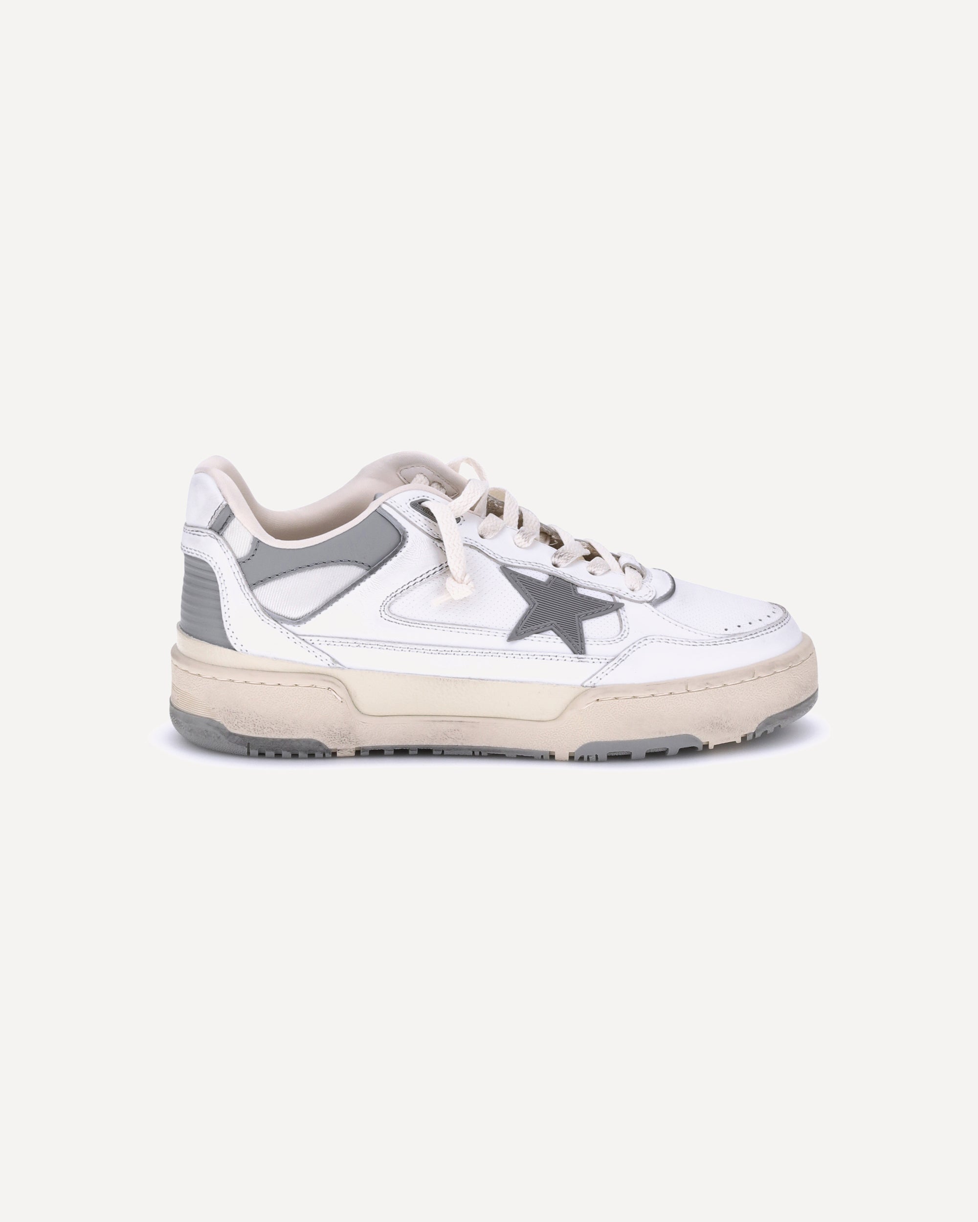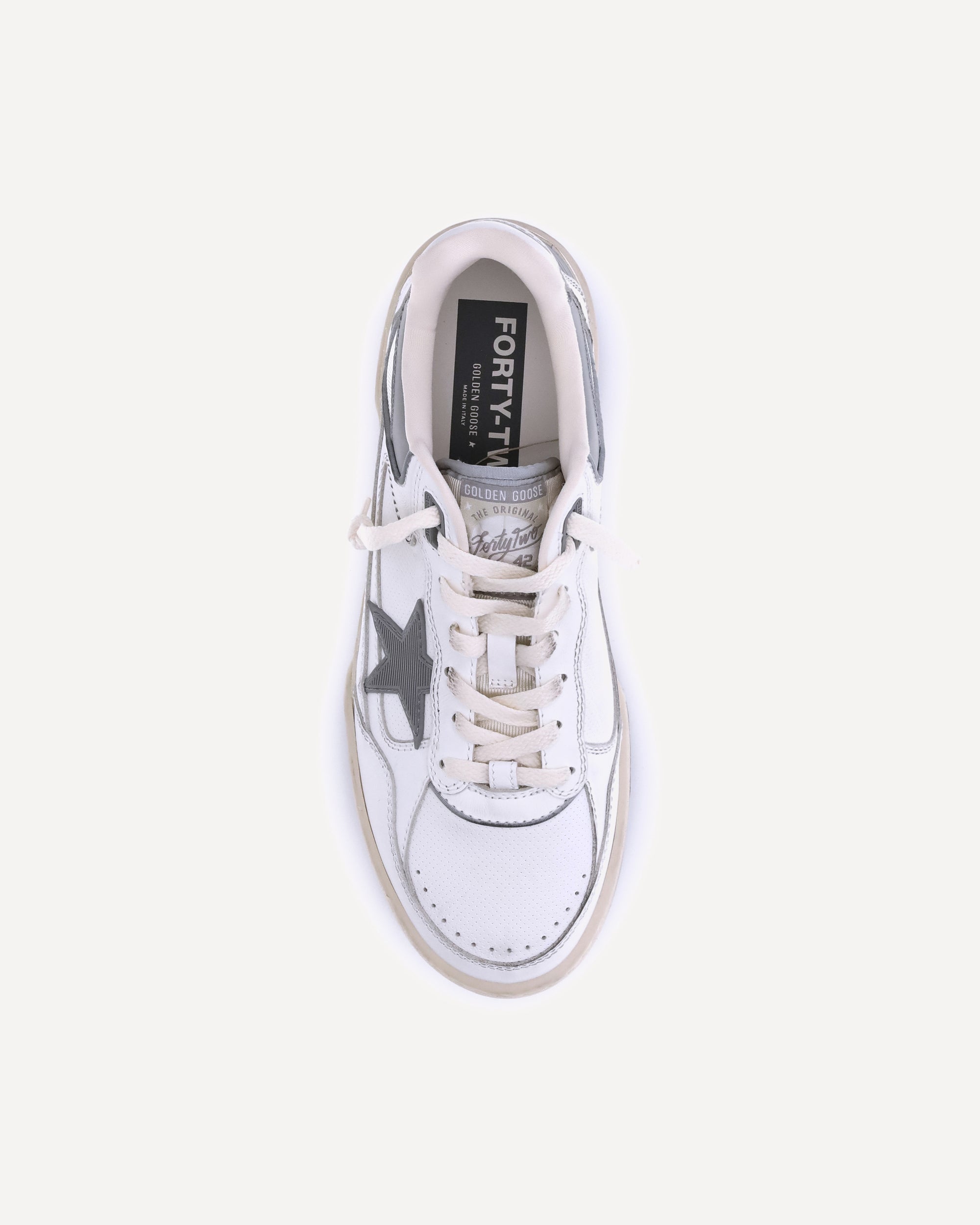 The Forty2 Sneakers are inspired by the legendary American basketball days of the 1990s, bringing with them a timeless appeal. The chunky low-top silhouette with a sporty design celebrates the indomitable spirit of the eternal dreamer, with 3D textured details such as the star and black leather back insert, complemented by the heel also in black leather. The suede toe and vintage-effect white laces add a final touch of authentic, contemporary style.