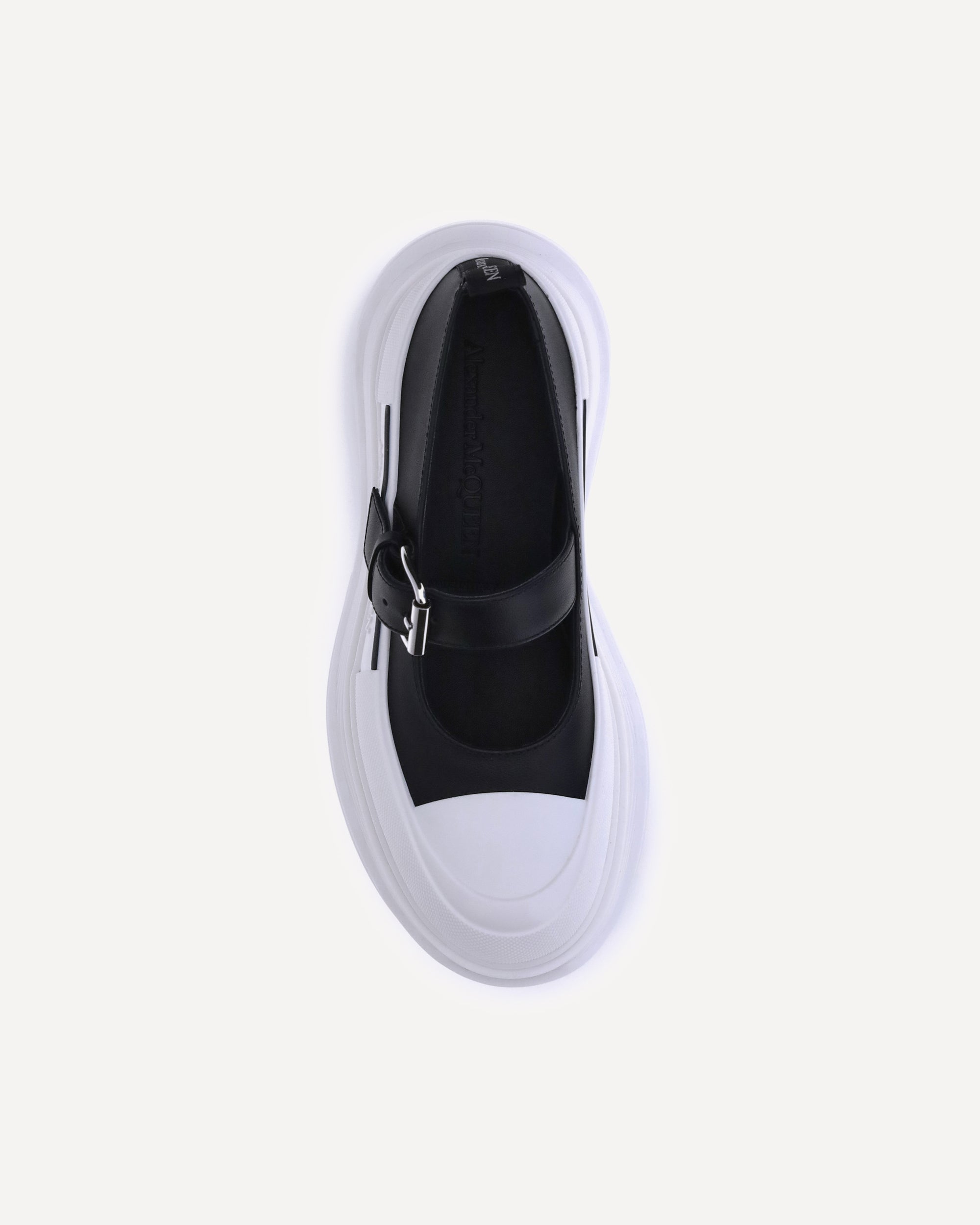 The Ballerinas are made of a mix of leather and rubber, and are distinguished by an embossed logo on the side. They feature an adjustable instep strap for a perfect fit, a reinforced toe for added durability, and a logoed pull on the heel for easy donning. The logo is also embossed on the inside, while the oversized sole provides a modern touch and ensures comfort.