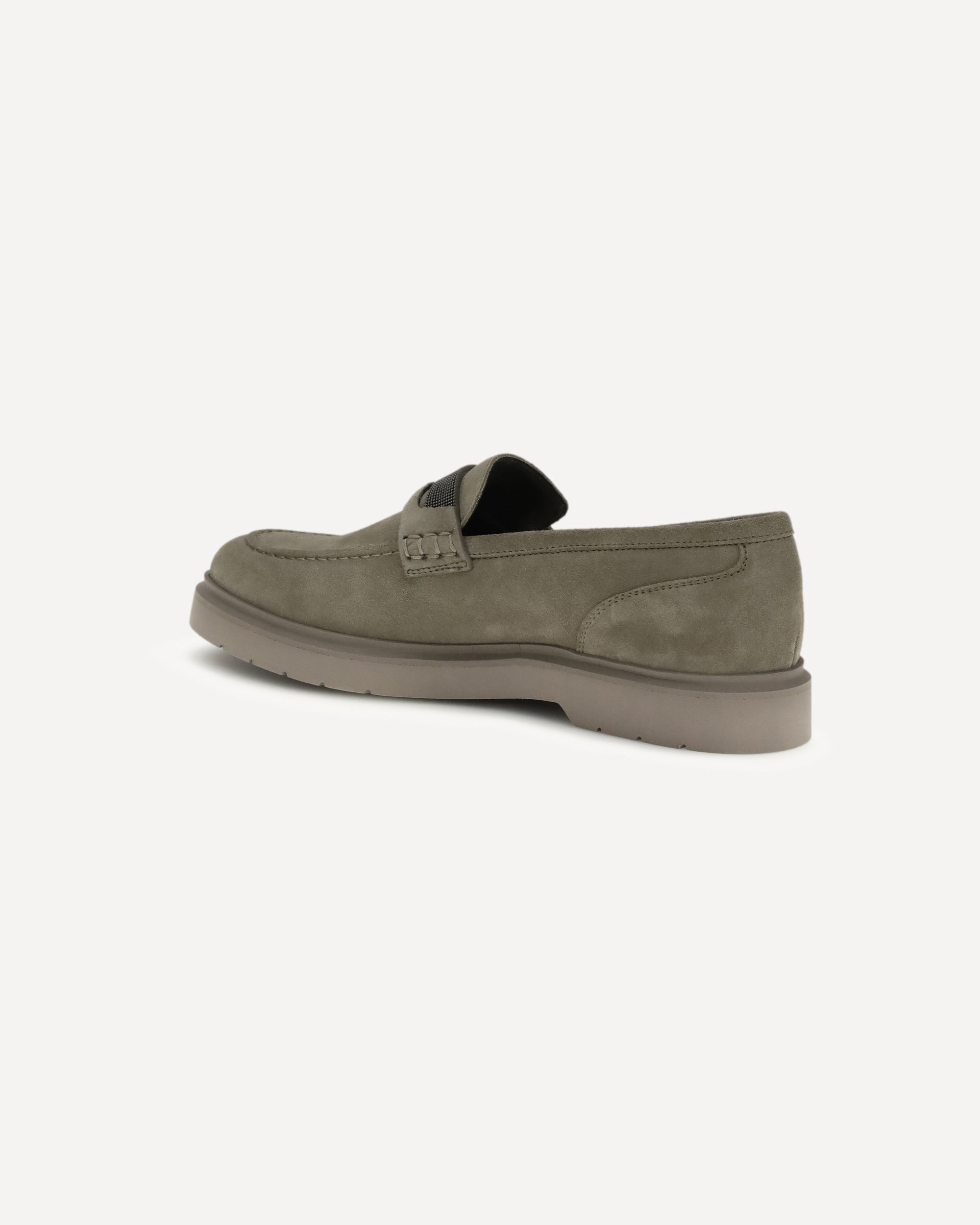 The leather Loafers by Brunello Cucinelli feature an almond toe on the front, giving them an elegant and refined touch. The suede design lends a soft, sophisticated look, while the front tray is decorated with the brand's iconic jewels, a distinctive luxury detail. Matching all-over stitching adds an element of precision craftsmanship, while the press-stamped logo insole completes the look with a sign of authenticity. A pair of loafers that combines comfort, style and high quality.