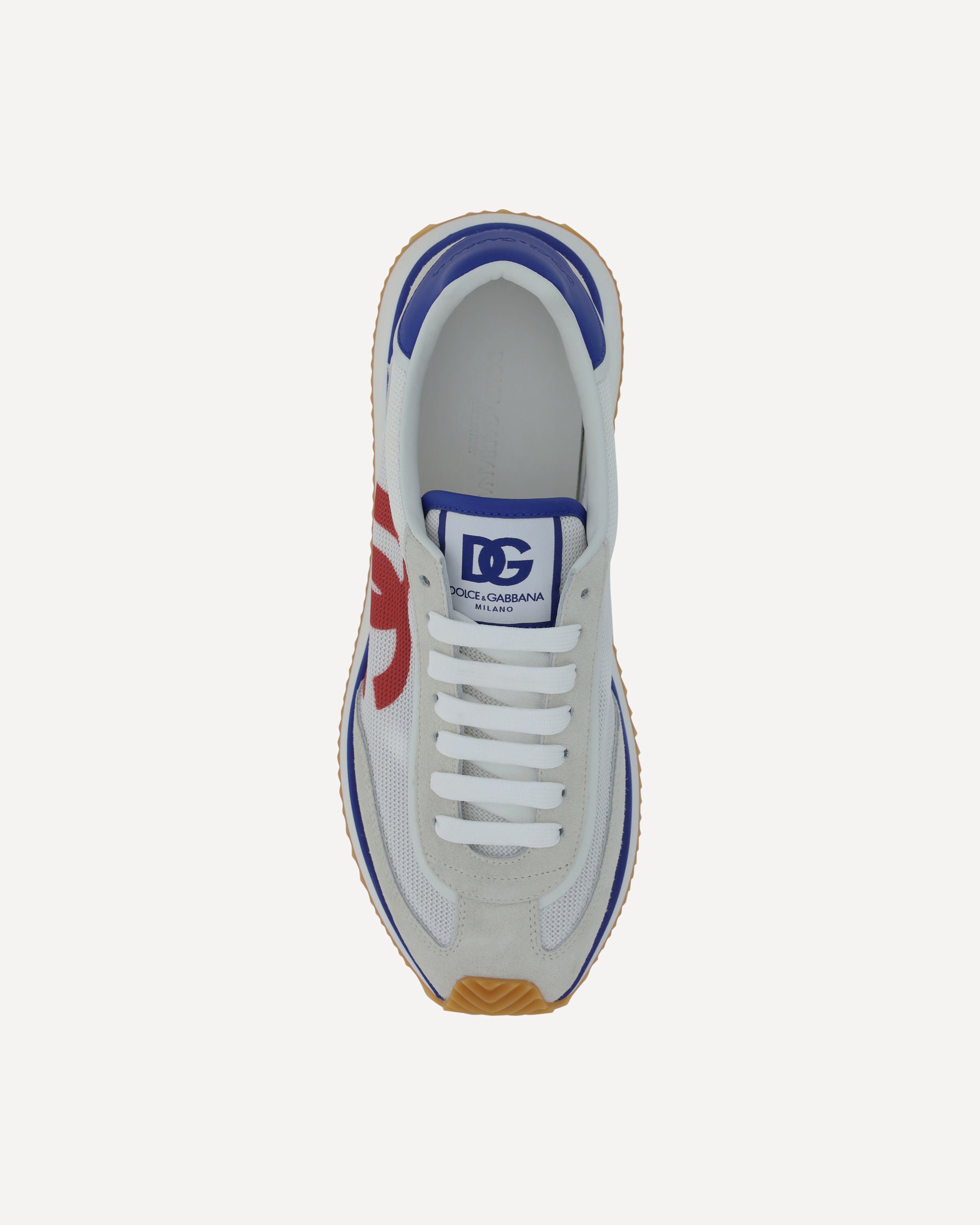 Dolce&Gabbana Sneakers combine suede details with an elongated toe silhouette. They feature a lace-up front closure, a printed logo on the tongue and a structured sole. The design is completed by the brand's iconic monogram on the heel, for a distinctive and refined style.