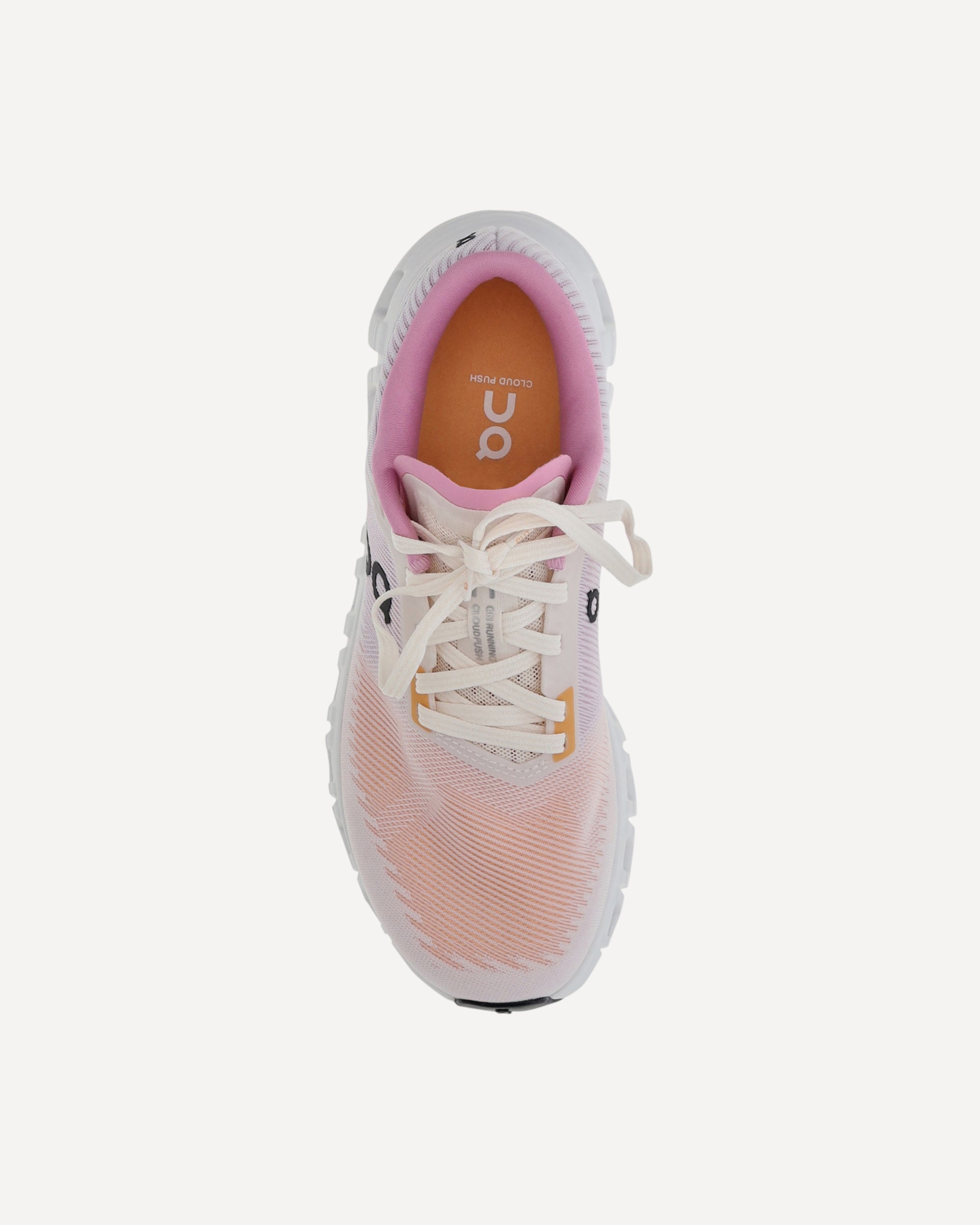 Cloud 6 Push Sneakers by On, are designed to provide superior comfort and cushioning with CloudTec® technology. Lightweight and versatile, they feature quick lacing with laces on the front for a convenient fit. The reinforced extended toe box provides durability, while the notched non-slip rubber outsole offers traction and stability. An iconic contrasting monogram on the side panel adds a distinctive touch, while the branded insole completes the design with a luxurious detail.