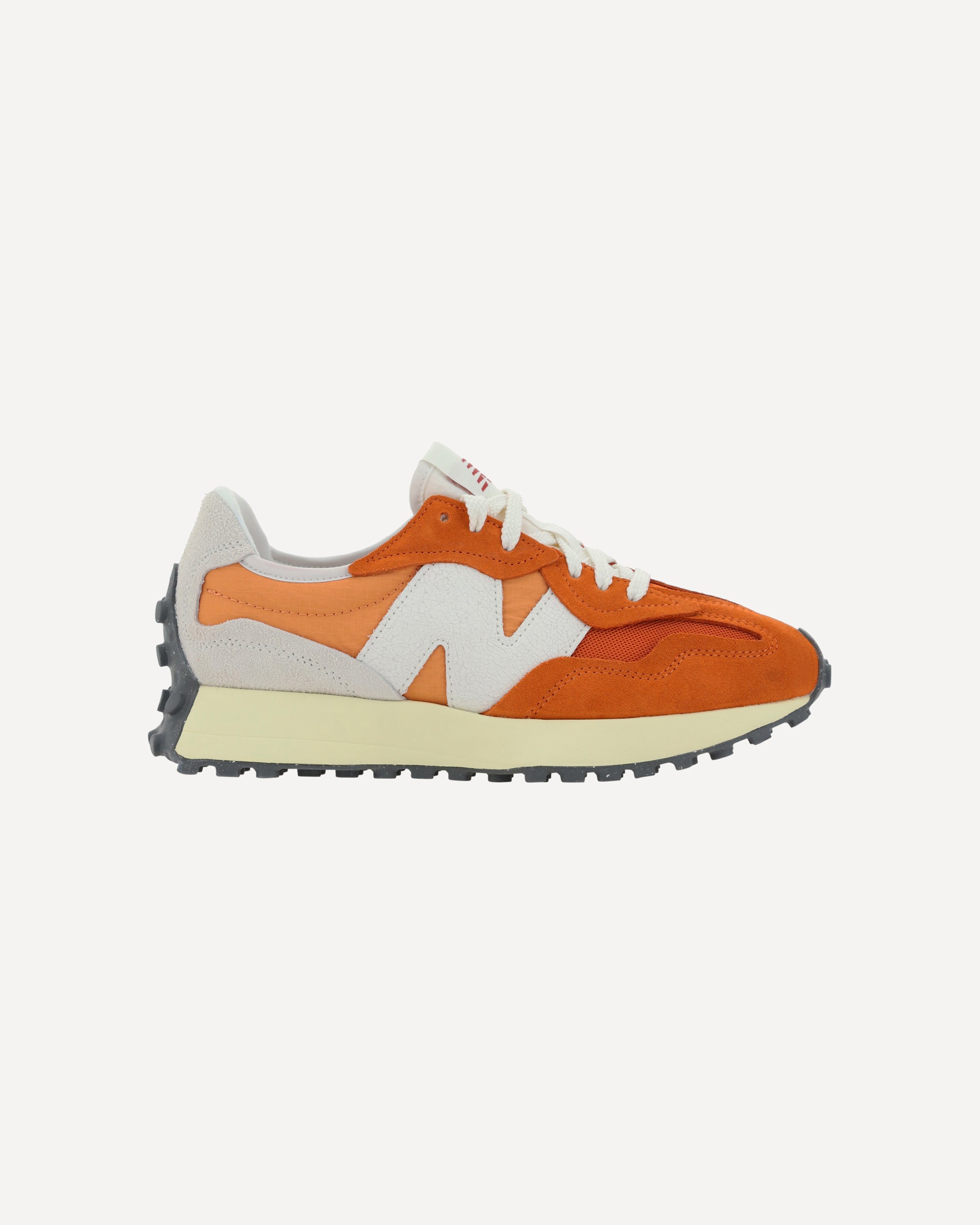 Sneakers 327 by New Balance, elongated toe with rubber detail, textured non-slip rubber sole, mesh panel design, details made of suede, iconic contrasting brand logo on side panels, front lace-up closure, iconic contrasting brand monogram on front tab.