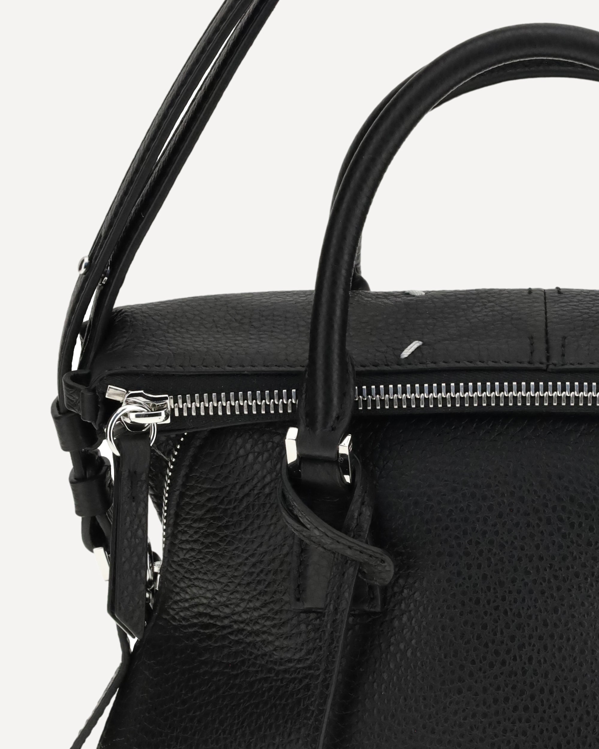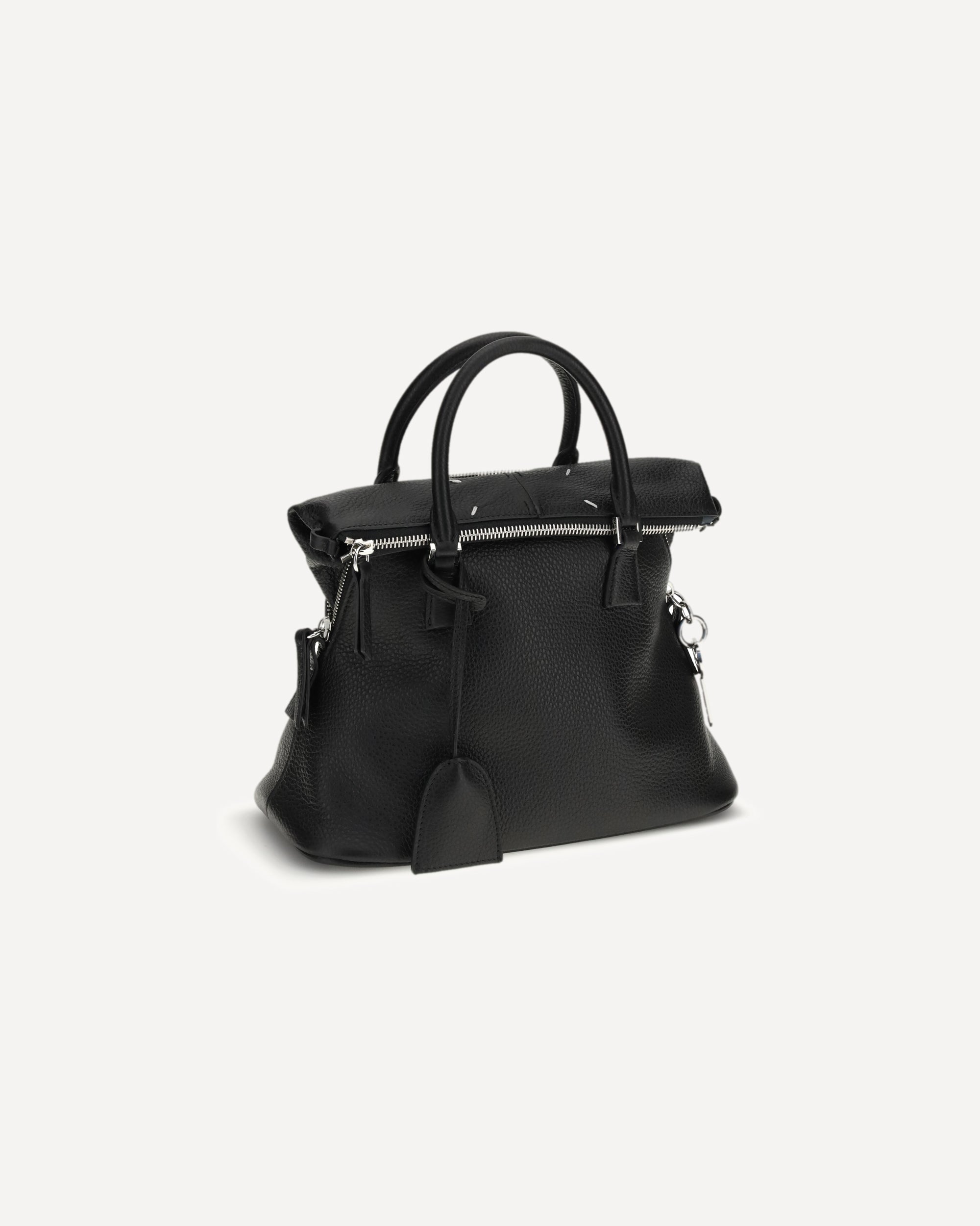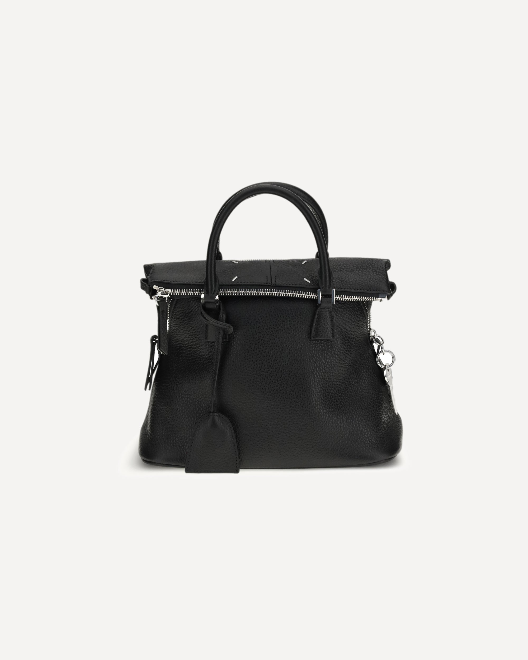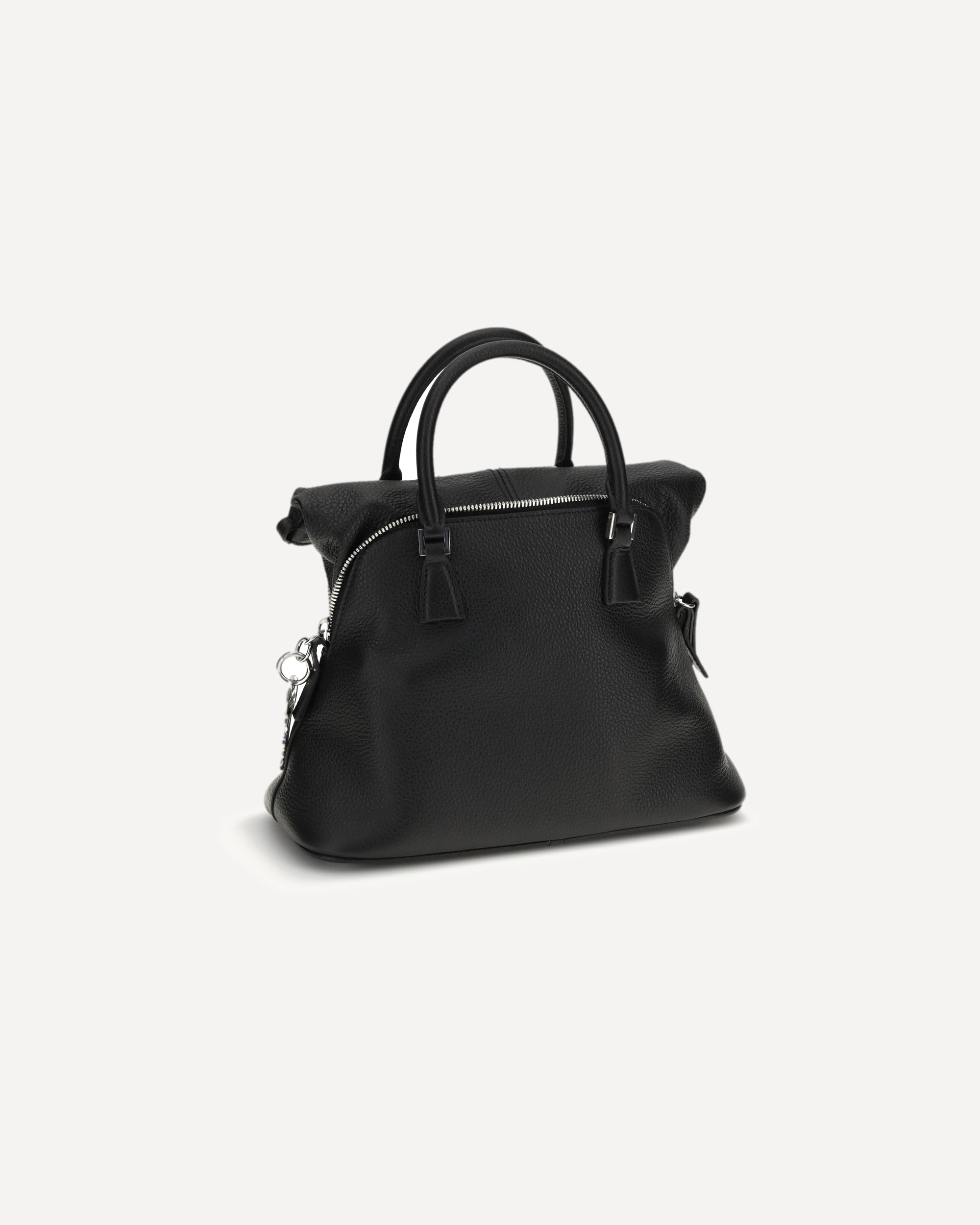 The 5AC mini Handbag by Margiela, made of fine grained calfskin leather, is a perfect blend of elegance and practicality. Featuring top handles and a removable and adjustable shoulder strap, it offers versatility in everyday use. The zippered closure provides security, while metal feet protect the base of the bag. The four topstitching on the back adds a distinctive touch, recalling the house's iconic design.