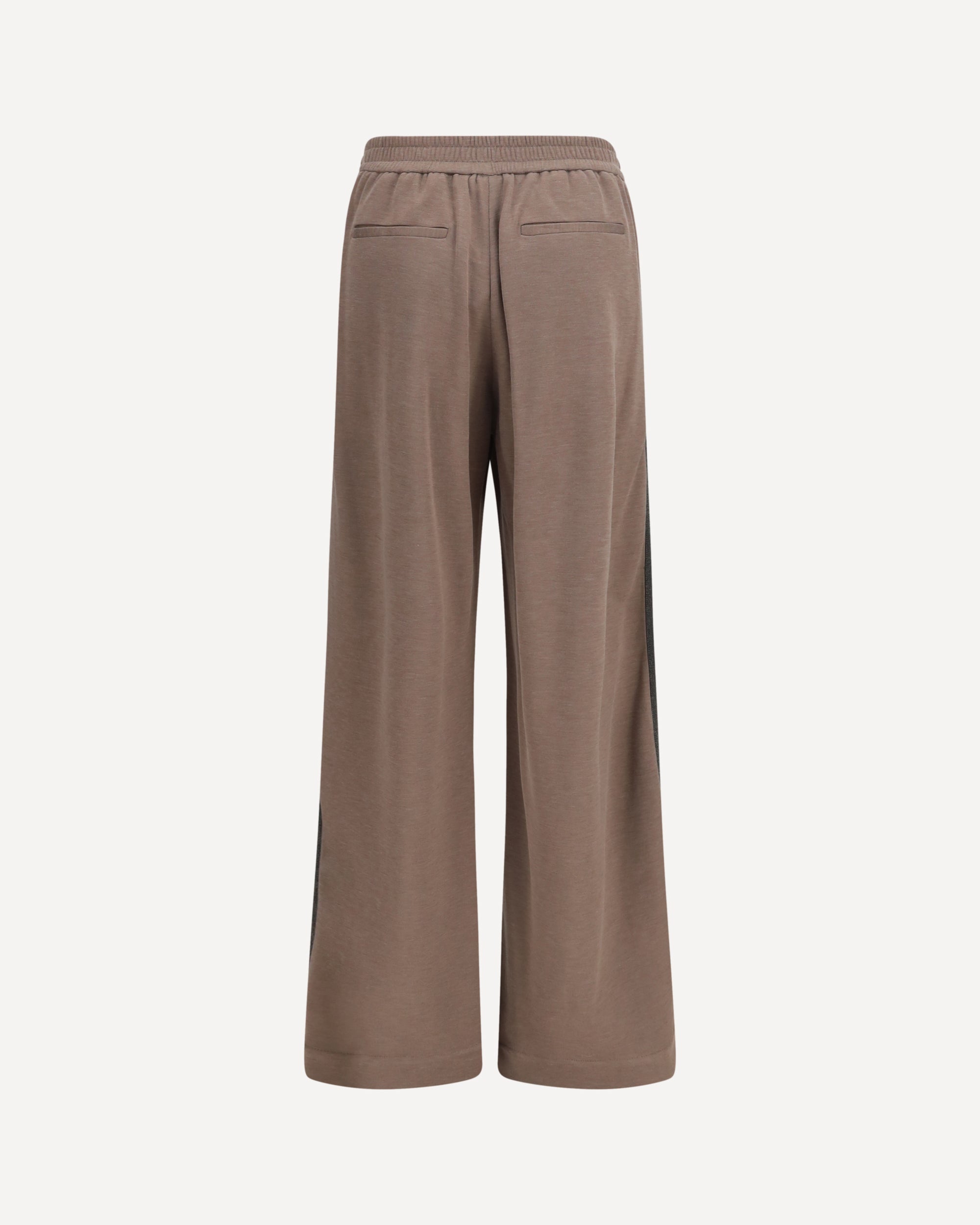 The Cotton Sweatpants by Brunello Cucinelli are a refined and contemporary Pants, featuring a regular fit and a wide-leg cut. The design includes an elasticated waistband with drawstring for maximum comfort, along with two side welt pockets and two rear slip pockets for added functionality. The band with the brand’s iconic sparkling monili applied on the side panel adds a distinctive and elegant detail. Perfect for casual-luxury looks.