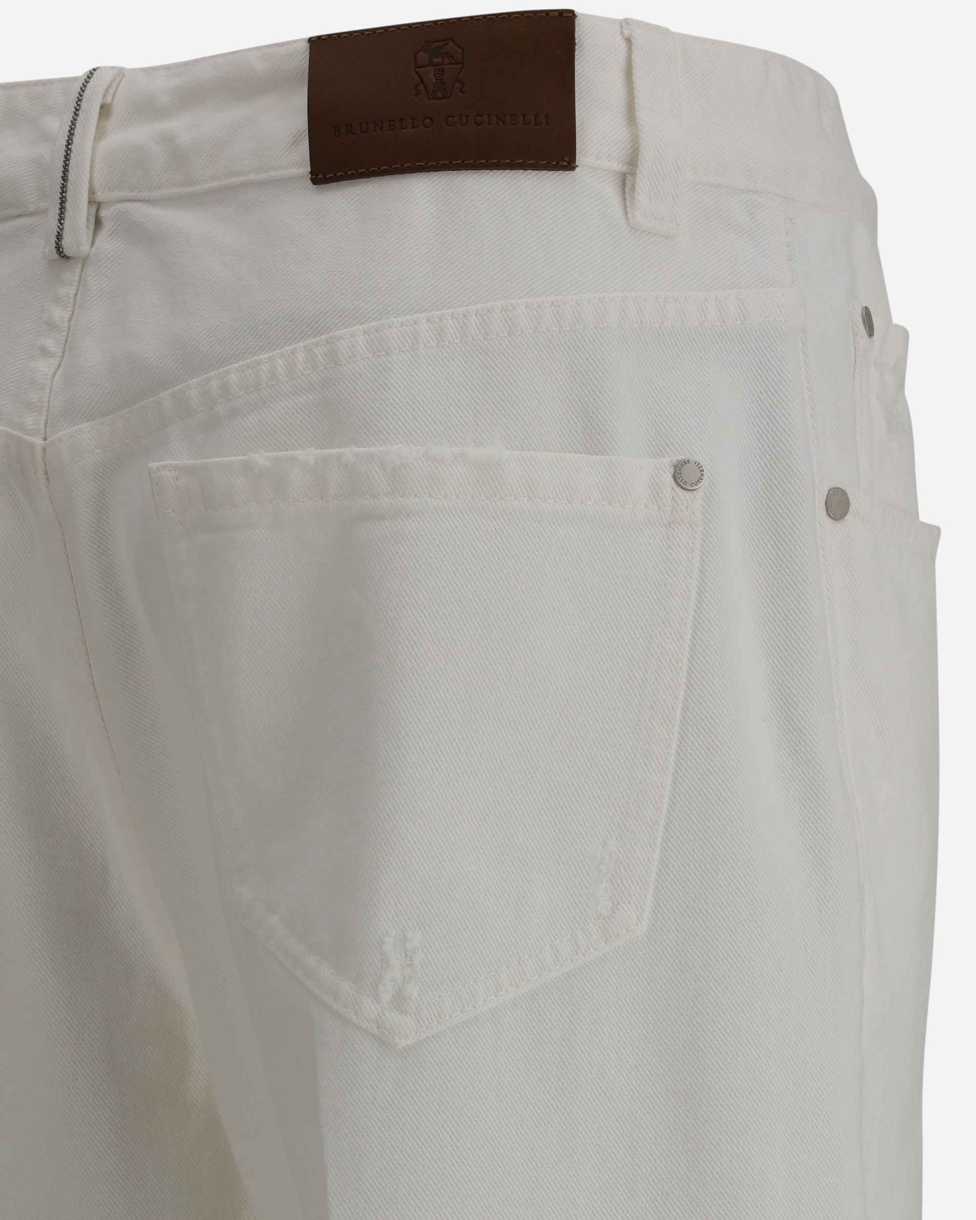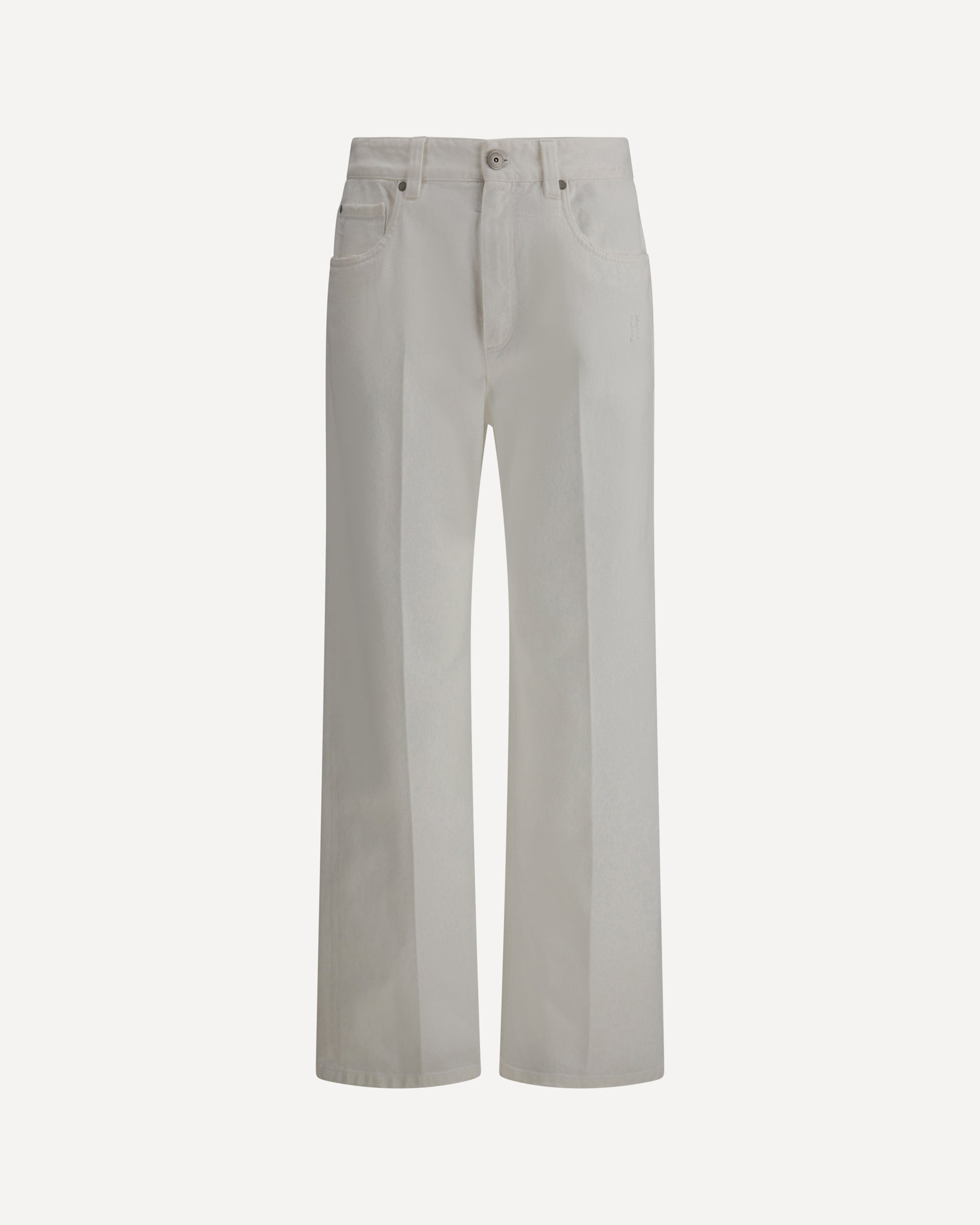 Brunello Cucinelli's Jeans are a perfect balance of elegance and a touch of casual, with a straight five-pocket design that provides a classic and comfortable fit. The front zipper-and-button closure offers practicality, while belt loops at the waistband allow you to add a personal touch with a belt. Worn details along the fabric give the garment a lived-in, authentic feature without losing the brand's signature refined appeal. With impeccable quality and a timeless silhouette, these jeans are ideal for those seeking a casual yet polished look.