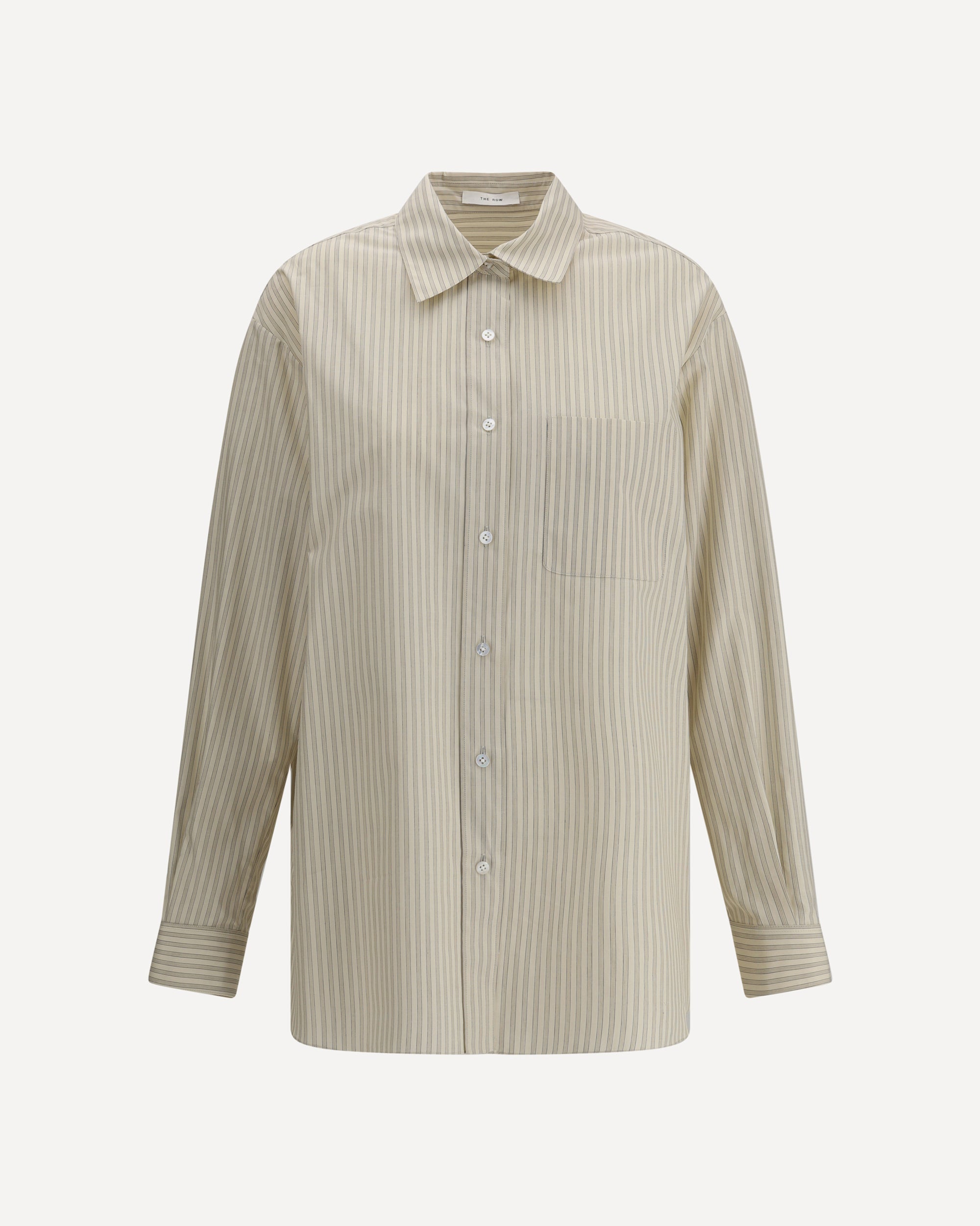 The Row's striped Nesson Shirt is an essential and sophisticated piece, ideal for a casual-chic look. With a classic collar and front button closure, it features a patch pocket on the chest, adding a touch of discreet functionality. The subtle stripes lend an understated and timeless elegance, making this shirt versatile and suitable for any occasion.
