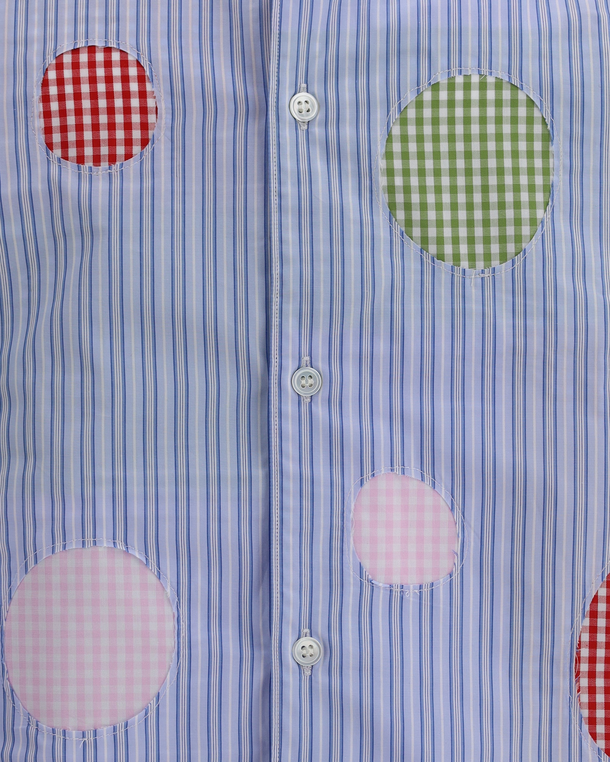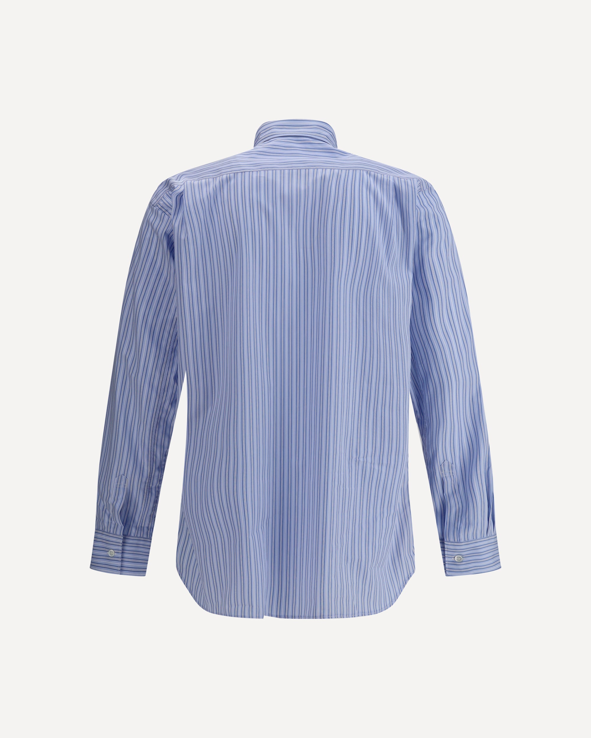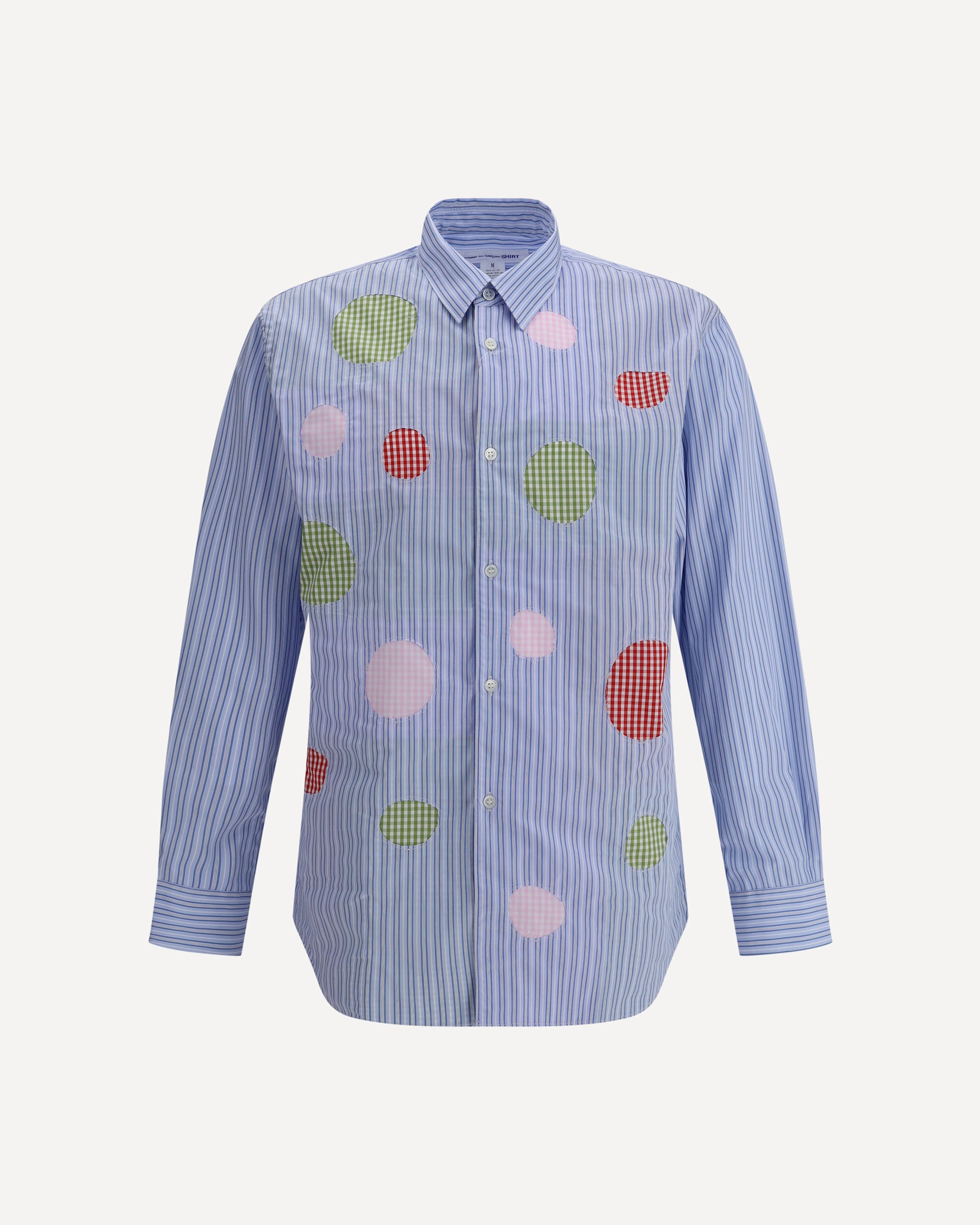The Cotton Comme des Garçons Shirt is a Shirt classic garment with a touch of sophistication. Made of pure cotton, it features a classic collar that gives it an elegant and versatile look. The front button closure and adjustable button cuffs allow for a customizable fit. The striped pattern adds an element of dynamism and modernity, making this shirt perfect for both a formal and a more casual look, always maintaining a timeless elegance.