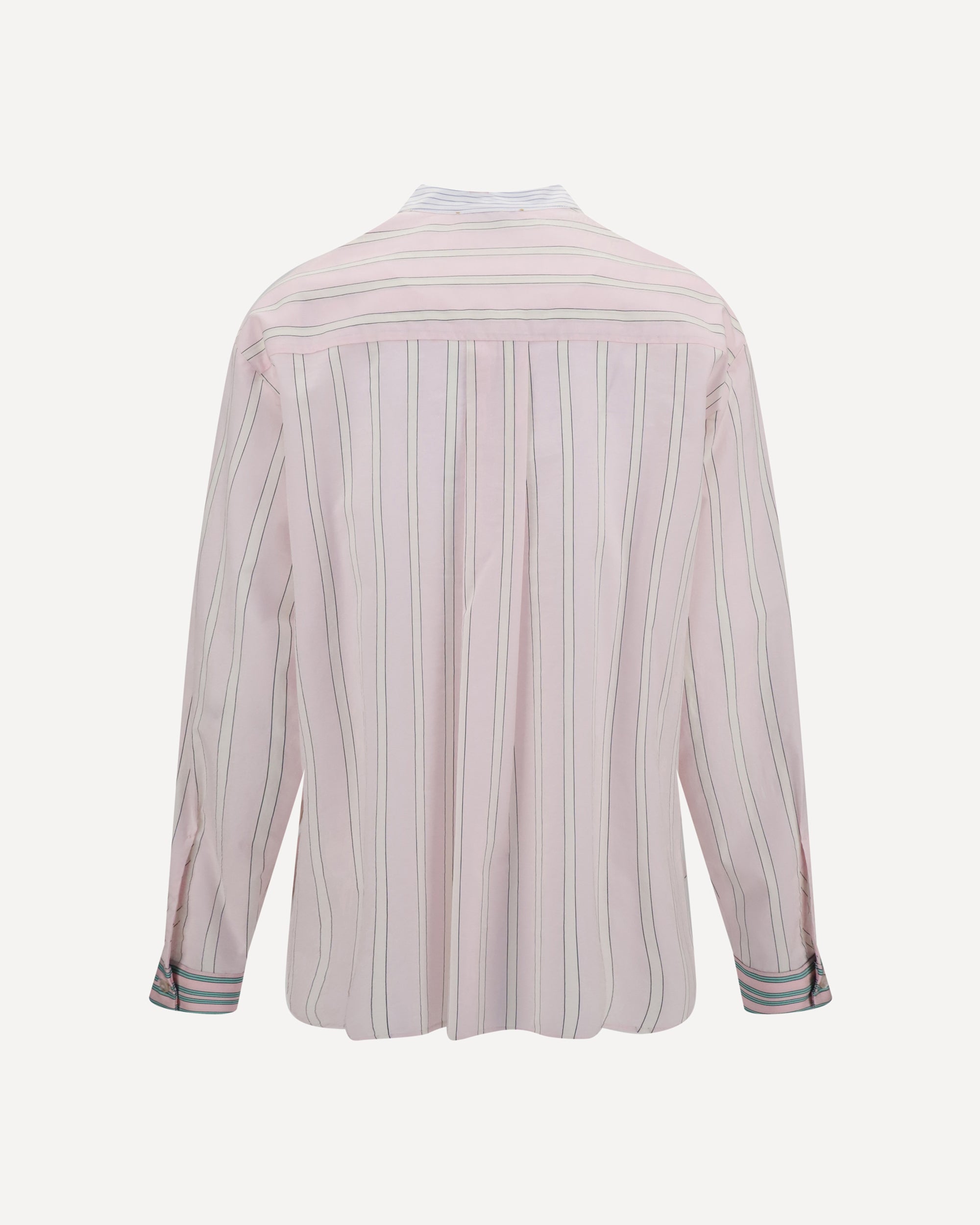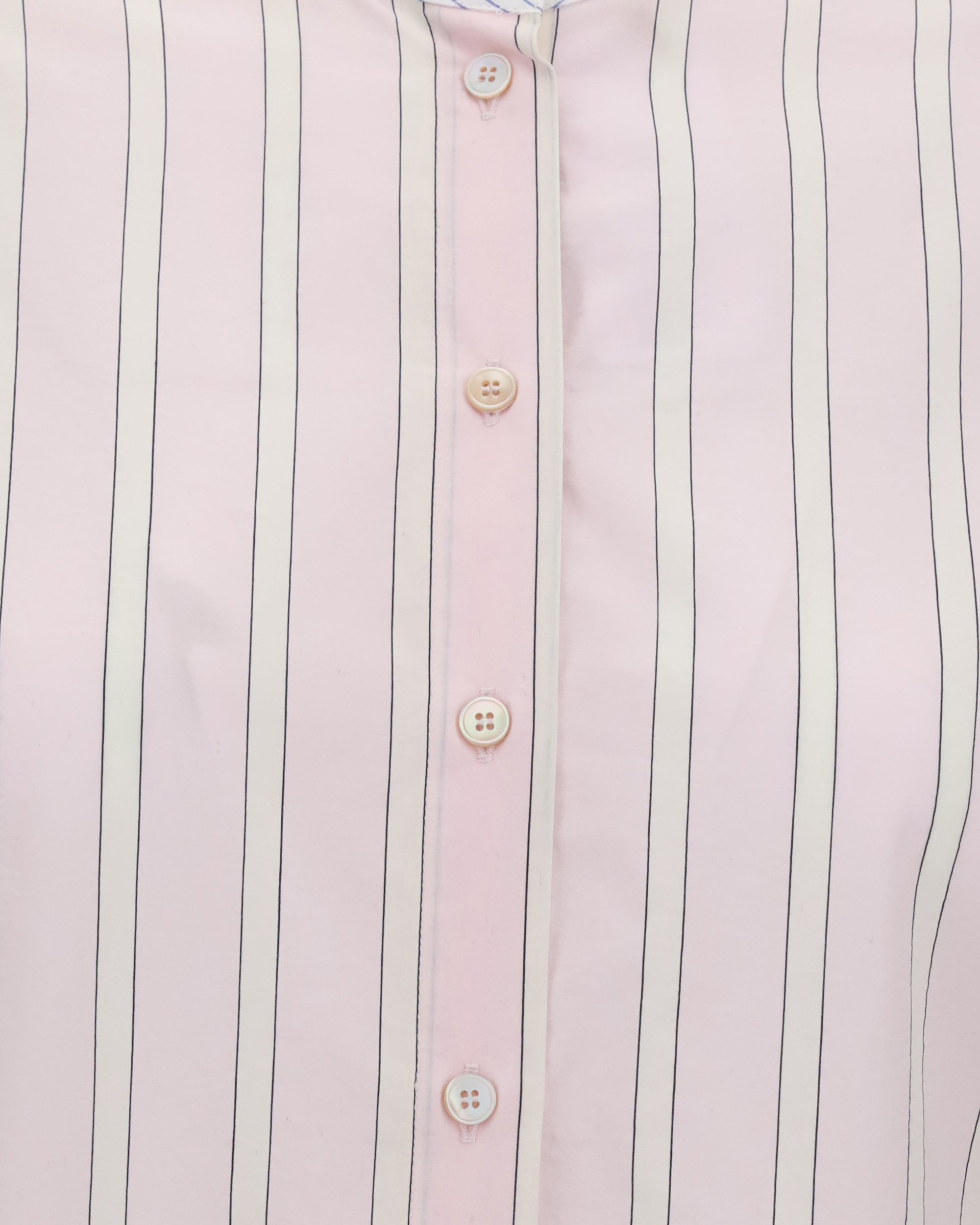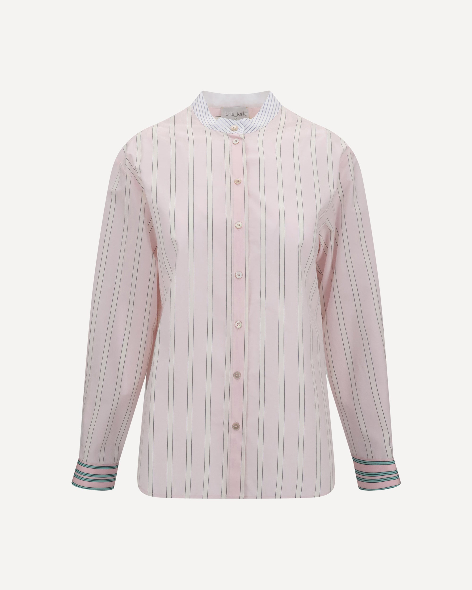 Forte_Forte's Striped Shirt is an essential and sophisticated design, perfect for a relaxed yet detail-oriented style. The mandarin collar gives a contemporary and minimalist touch, while the front button closure maintains a discreet elegance. Exposed side seams add a tailored detail that enhances the construction of the garment. Lightweight and versatile, it is ideal for completing everyday looks with natural elegance.