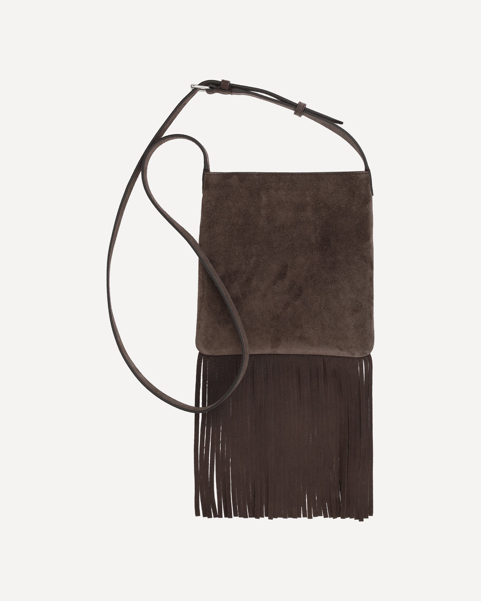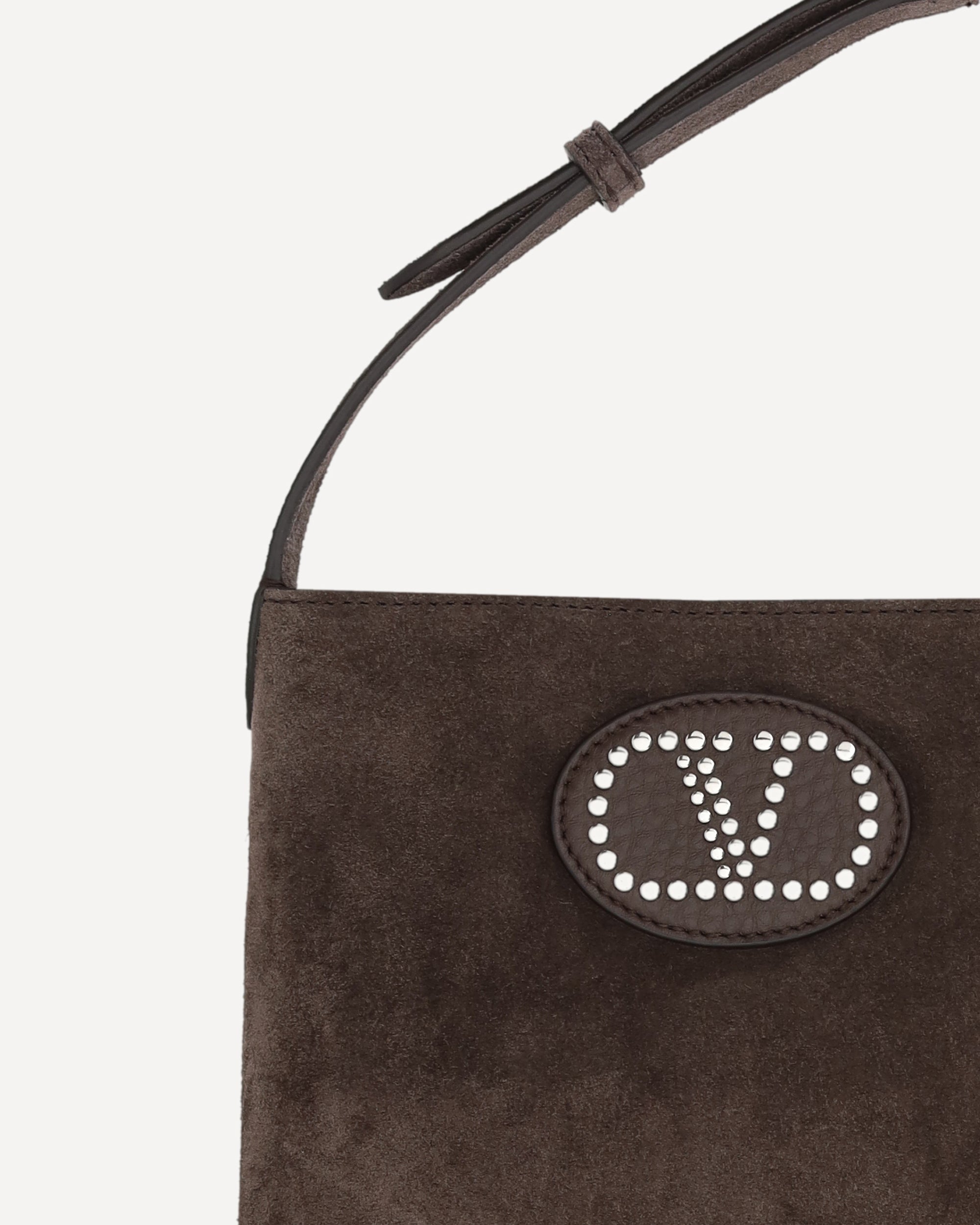 Valentino Garavani's suede leather Shoulder Bag combines elegance and character. Adjustable shoulder strap provides comfort, single compartment without closure. The iconic logo patch applied on the front adds a recognizable touch. Bangs on the bottom give movement, making this bag perfect for a contemporary and refined look, suitable for any occasion. A mix of sophistication and bold style.