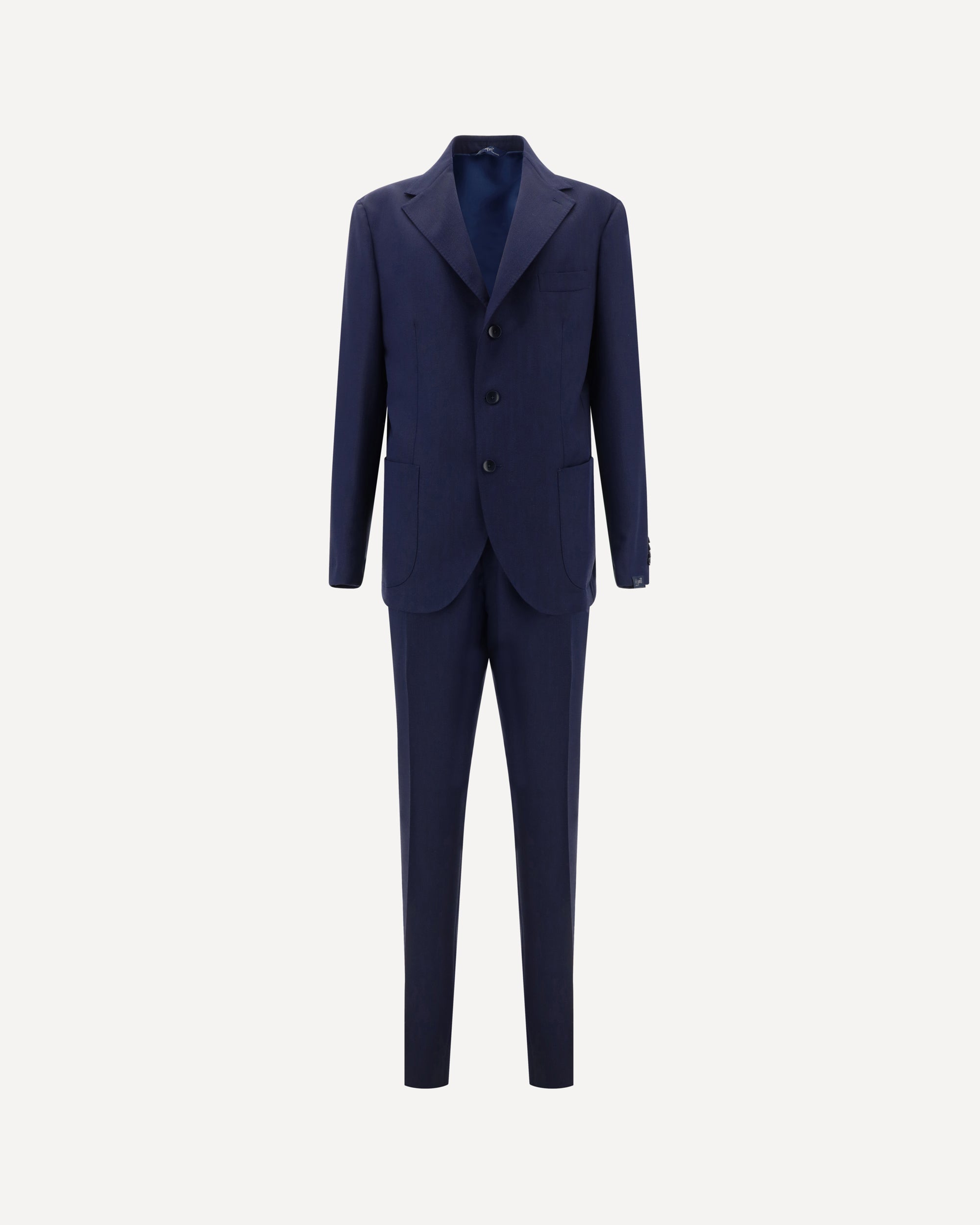 Gi Capri's virgin wool Suit is a refined and elegant ensemble consisting of a blazer jacket and pants, both in a sophisticated mélange pattern. The jacket features a single-breasted front button closure, two welt patch pockets on the front and a slit pocket for a practical touch. Classic lapels complete the look, giving the jacket a timeless design. The classically cut pants feature a front zipper and button closure, two side slash pockets and two welt pockets on the back. Belt loops on the waistband allow you to further customize the fit.