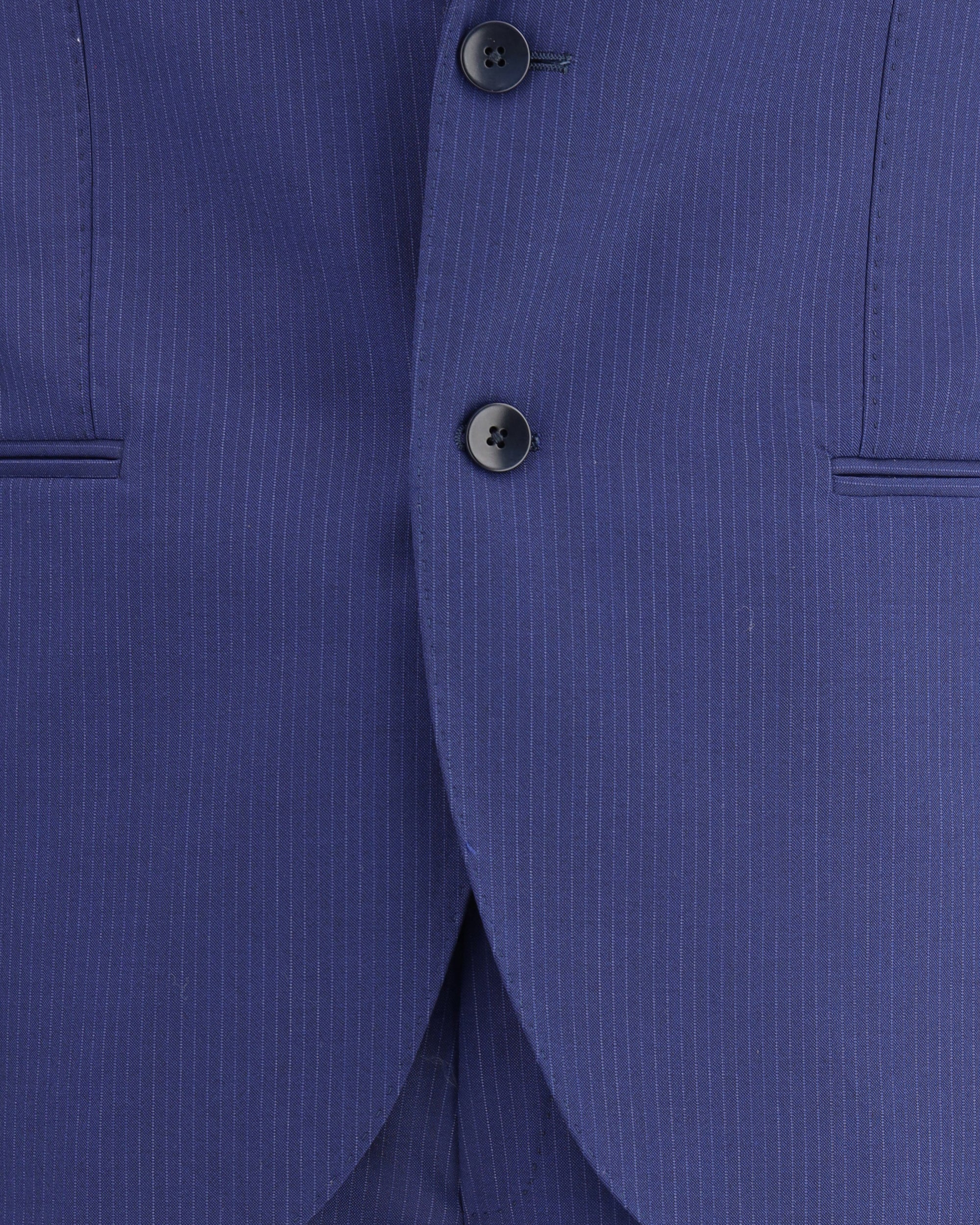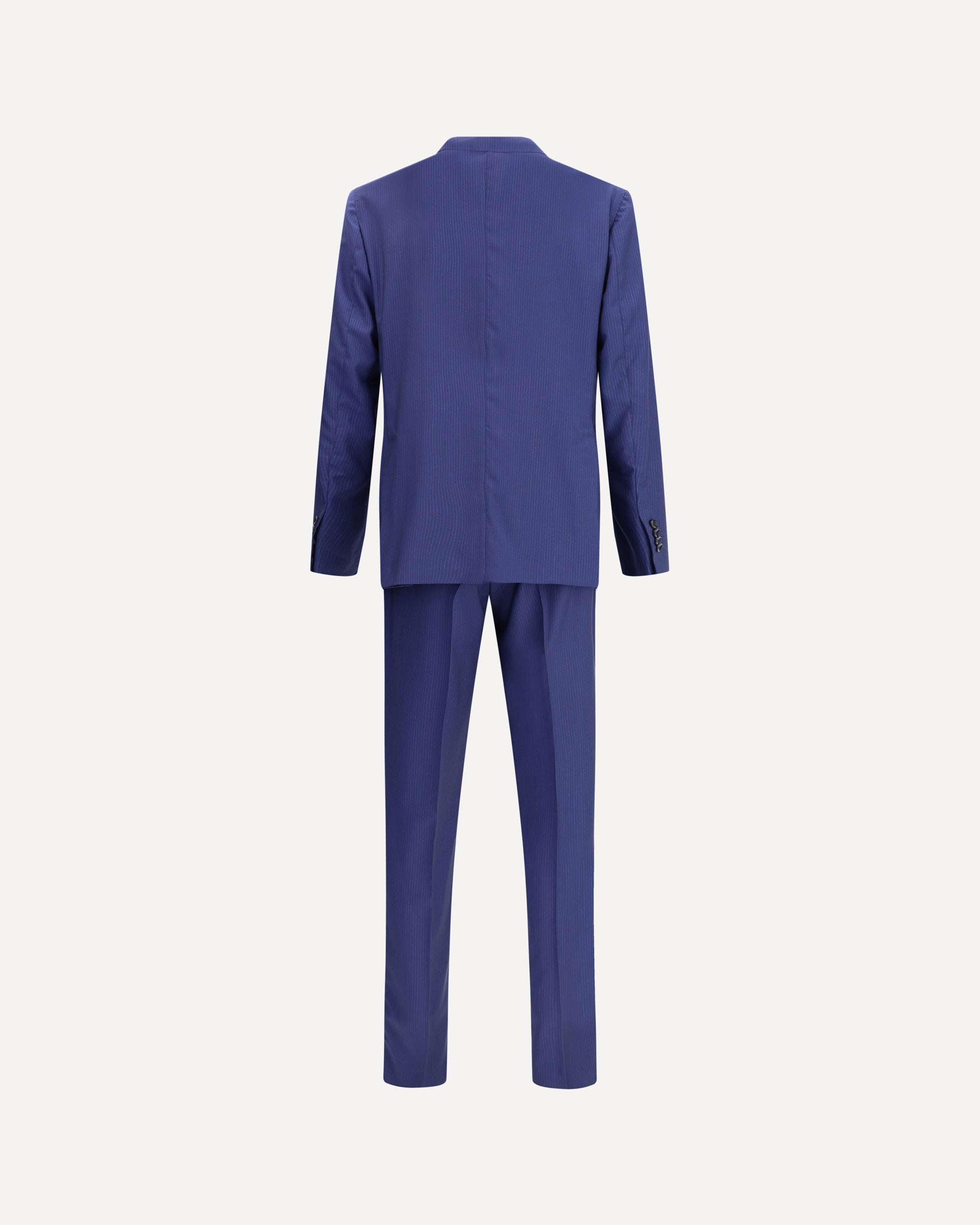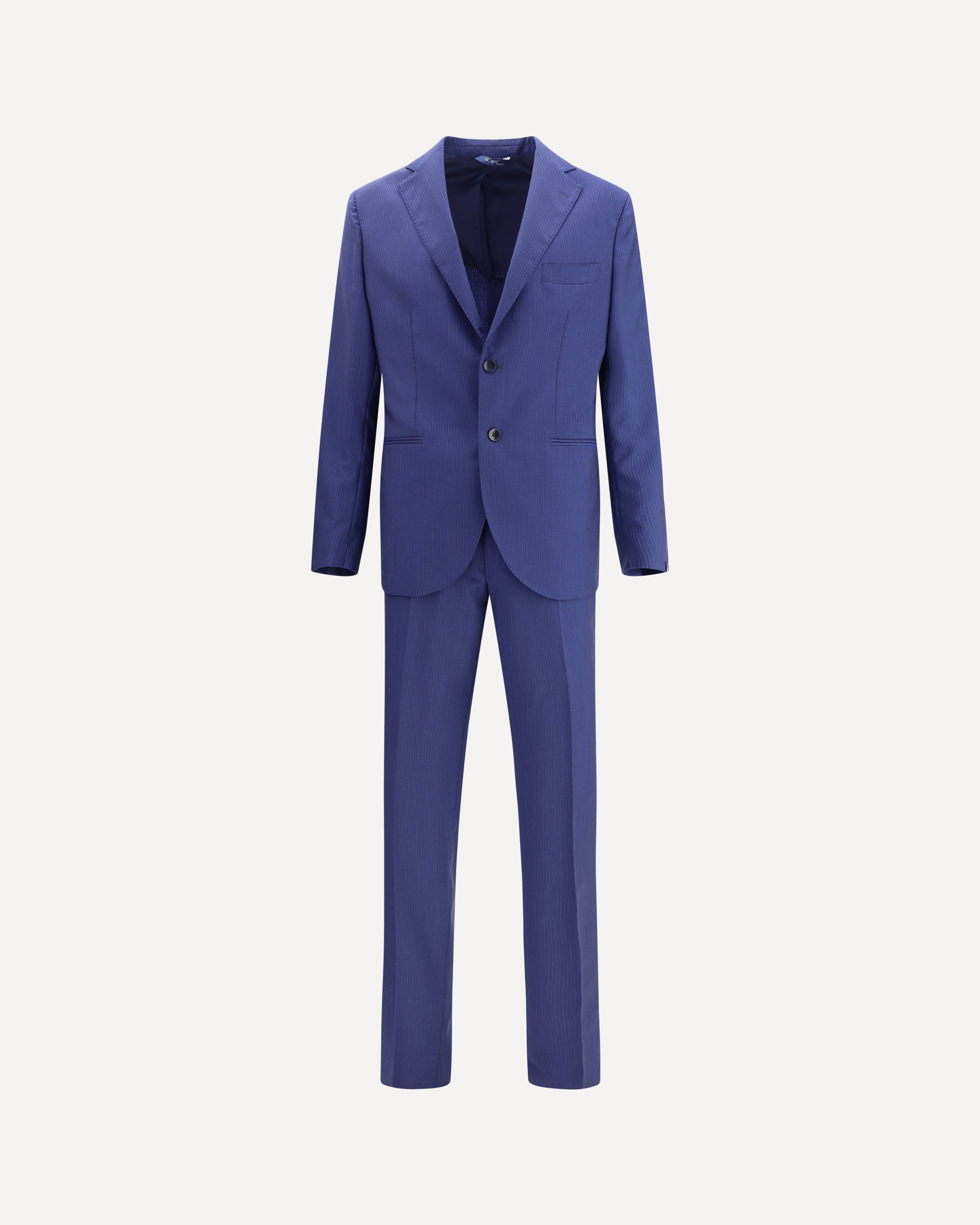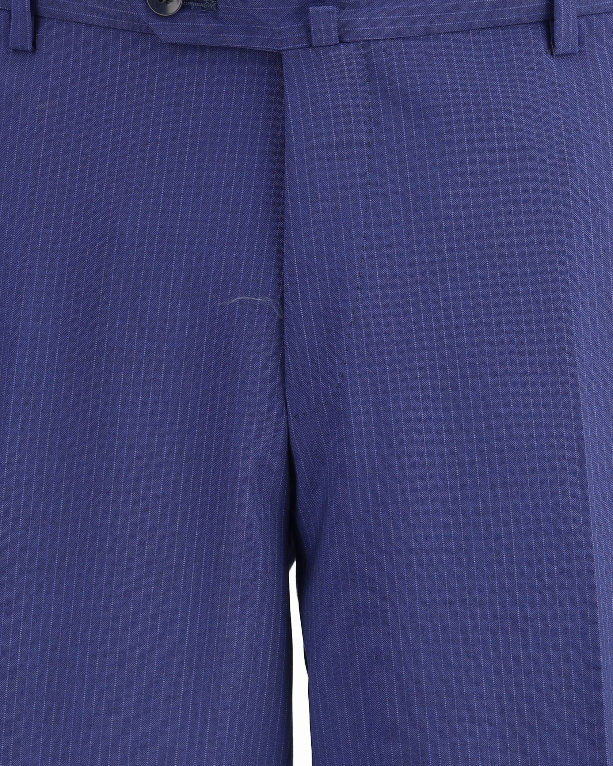 Gi Capri's Striped Virgin Wool Suit is a refined and elegant ensemble consisting of a blazer jacket and pants, both in a sophisticated mélange pattern. The jacket features a single-breasted front button closure, two welt patch pockets on the front and a slit pocket for a practical touch. Classic lapels complete the look, giving the jacket a timeless design. The classically cut pants feature a front zipper and button closure, two side slash pockets and two welt pockets on the back. Belt loops on the waistband allow you to further customize the fit.