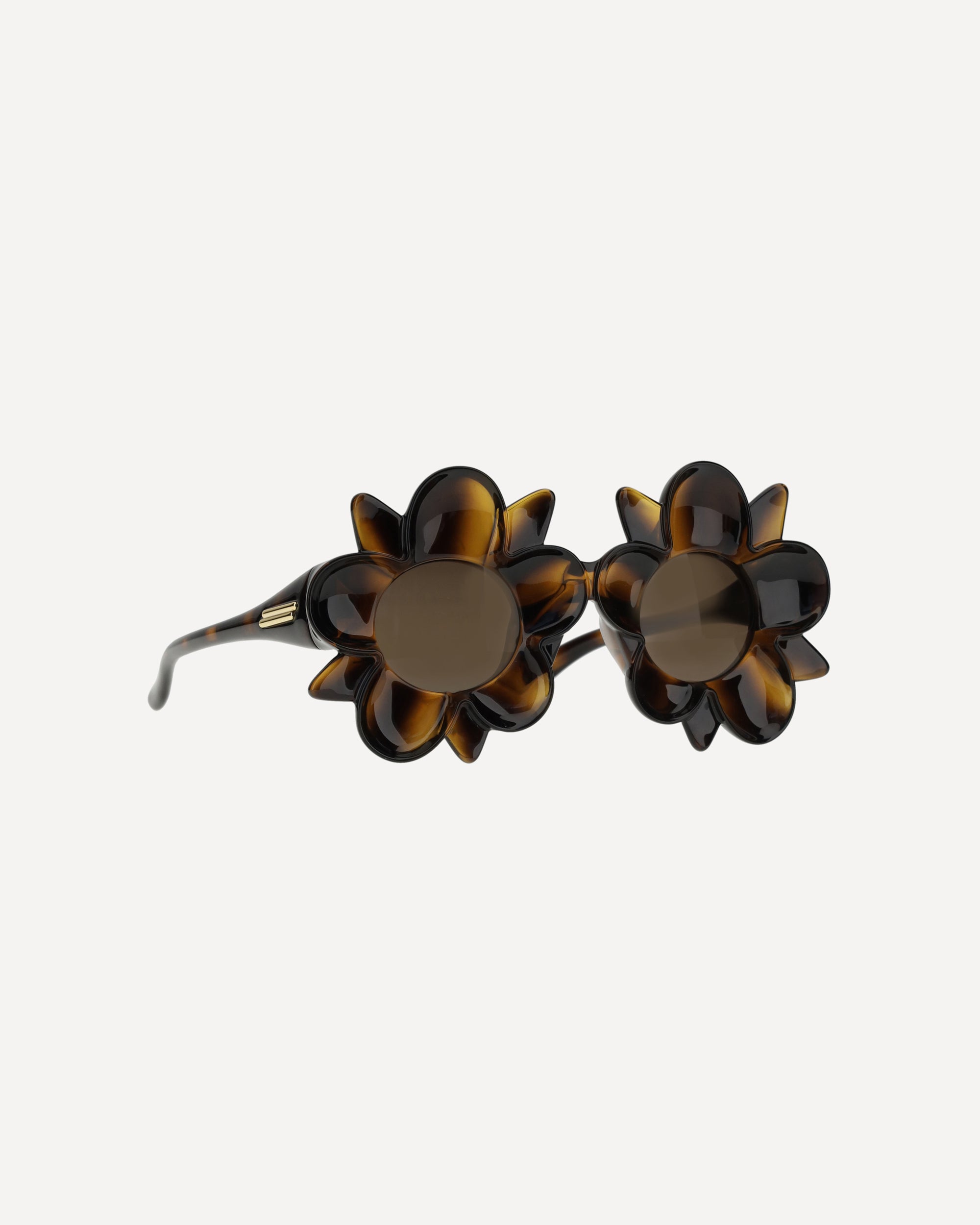 Bottega Veneta's Peggy Flower Sunglasses stand out for their sculptural and sophisticated design. The frame features a refined three-dimensional shape reminiscent of a flower, an expression of the Maison's creativity and craftsmanship. An iconic accessory, perfect for adding a distinctive touch to the look.