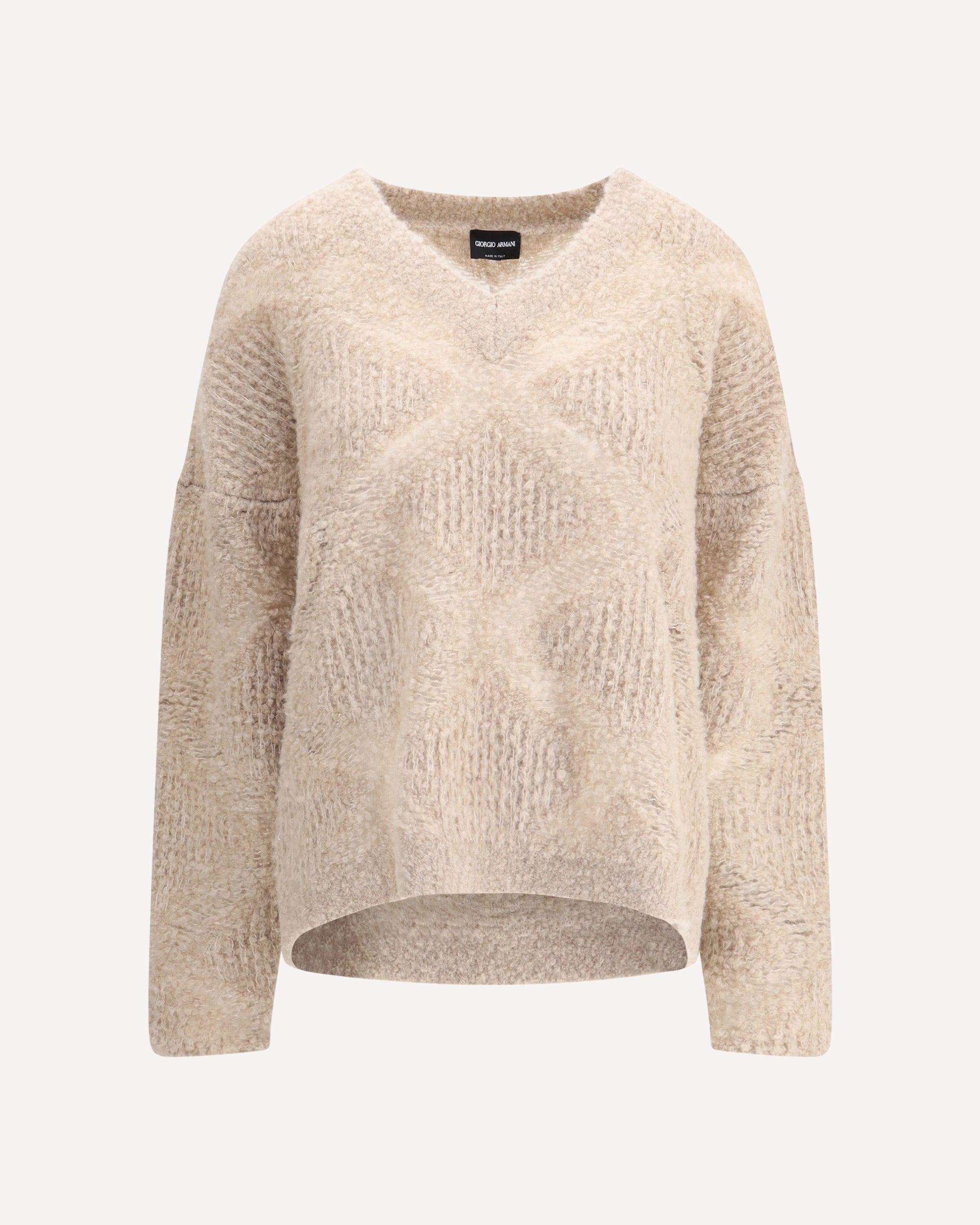Giorgio Armani's cashmere and alpaca blend Sweater stands out for its refined softness and elegant design. The V-neck is enhanced by a special finish that creates a delicate sheer effect, lending the piece a light feel and a touch of sophisticated originality.