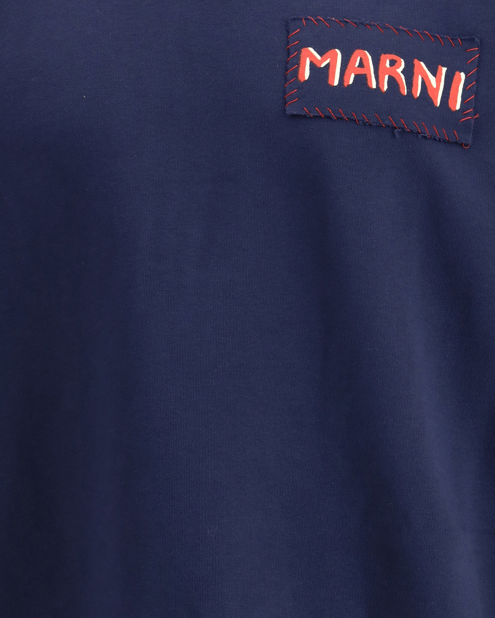 Marni's logo Sweatshirt is an essential yet highly recognizable style. Made of soft cotton, it features a ribbed crew neck, cuffs and hem that ensure a comfortable and structured fit. The clean design is enhanced by the contrasting logo patch applied on the front, a distinctive detail that gives character and identity to the garment. Perfect for casual looks with a contemporary taste, it combines comfort and personality with Marni's unmistakable creative touch.