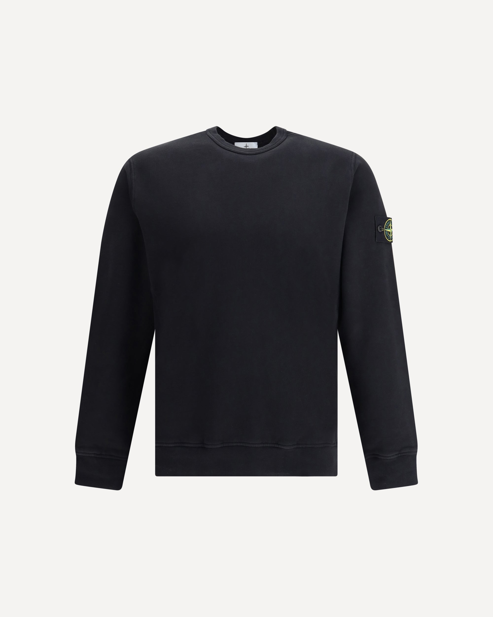 Cotton Sweatshirt by Stone Island featuring a ribbed crew neck, a logo patch applied to the left sleeve and ribbed details on the cuffs and hem. The plush interior provides comfort and warmth, making this garment perfect for cooler days. A blend of style and functionality, ideal for a casual, contemporary look.