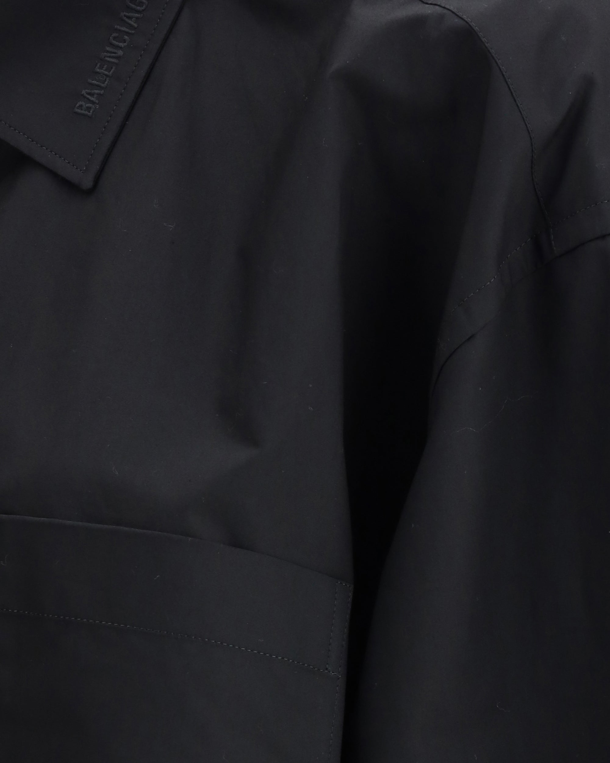 Balenciaga's cotton Swing Shirt is a sophisticated and on-trend piece. The classic collar is enhanced with an iconic monogram detail, which adds a distinctive and recognizable touch. On the front, there is an applique welt pocket, offering functionality and a stylish accent. The front button closure and adjustable button cuffs allow for a customized fit. With its oversized fit, this shirt offers a modern, relaxed look perfect for those seeking a balance of comfort and style.