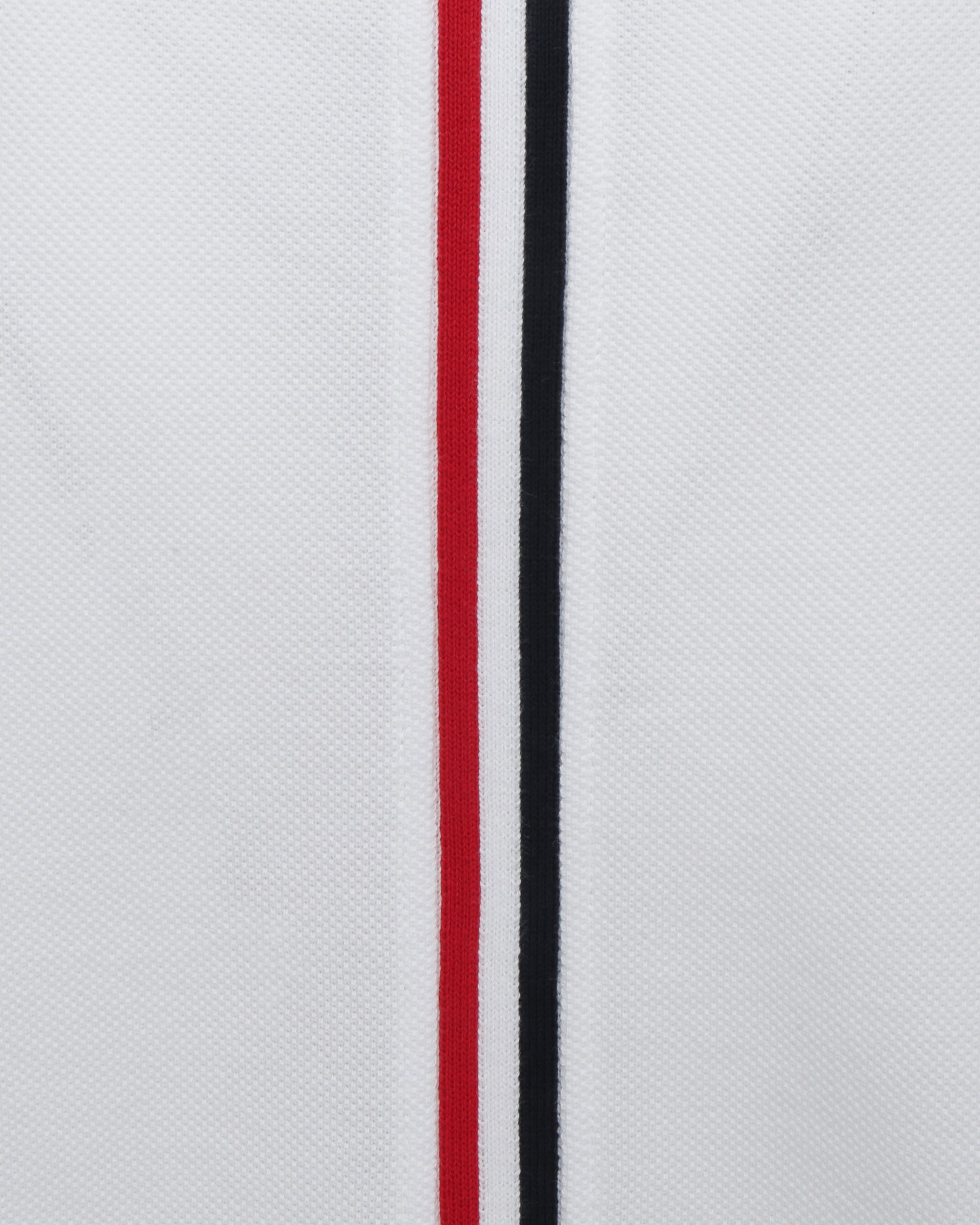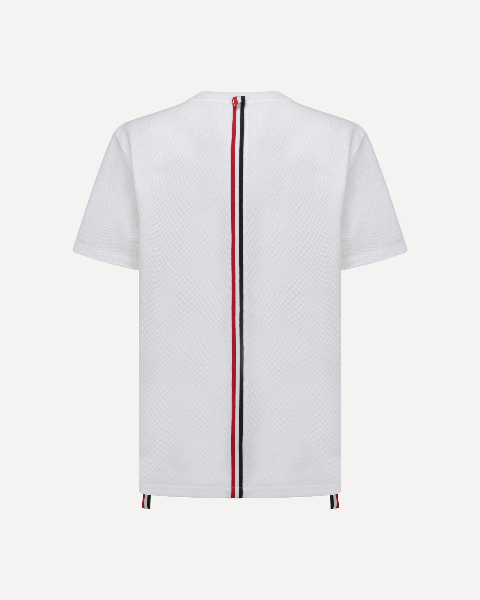 Cotton T-Shirt by Thom Browne, ribbed crew neck collar, lateral slits with buttons, back stripe bar.