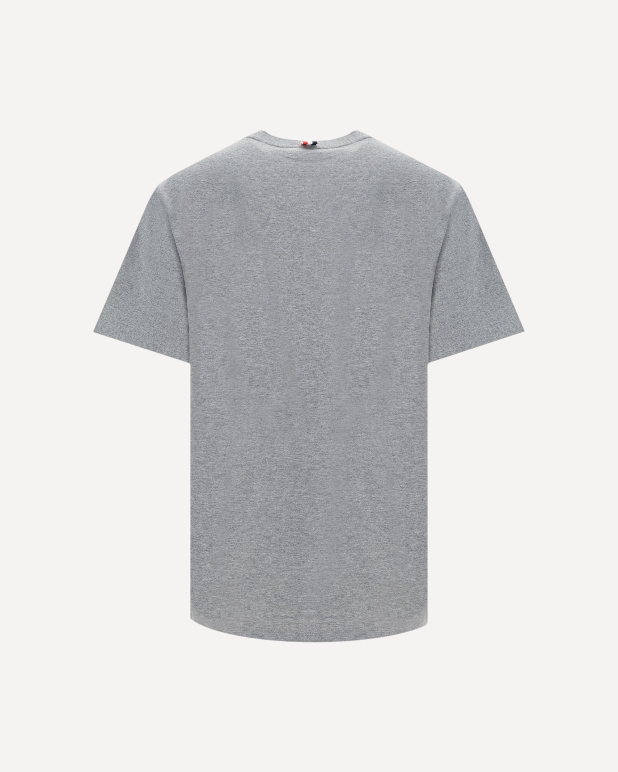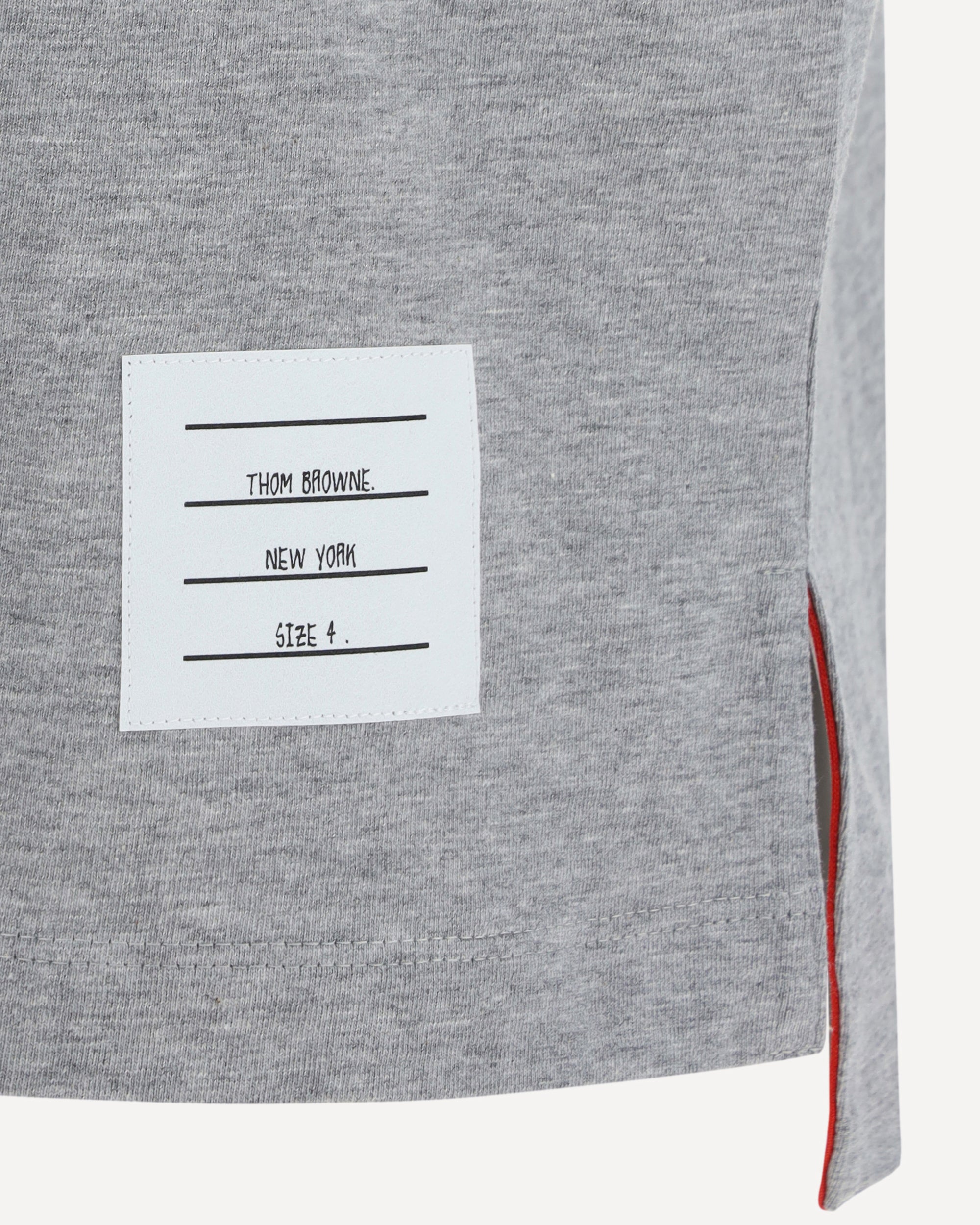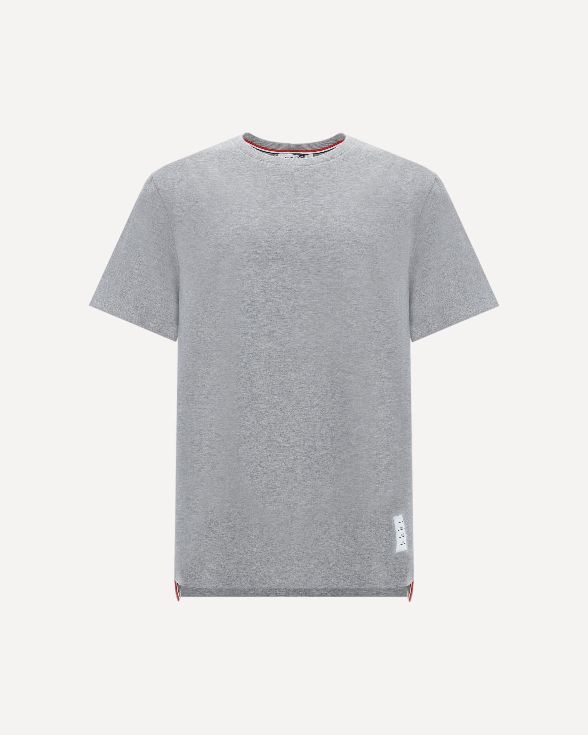 Cotton T-Shirt by Thom Browne, ribbed crew neck, side slits, iconic brand monogram patch applied to front.