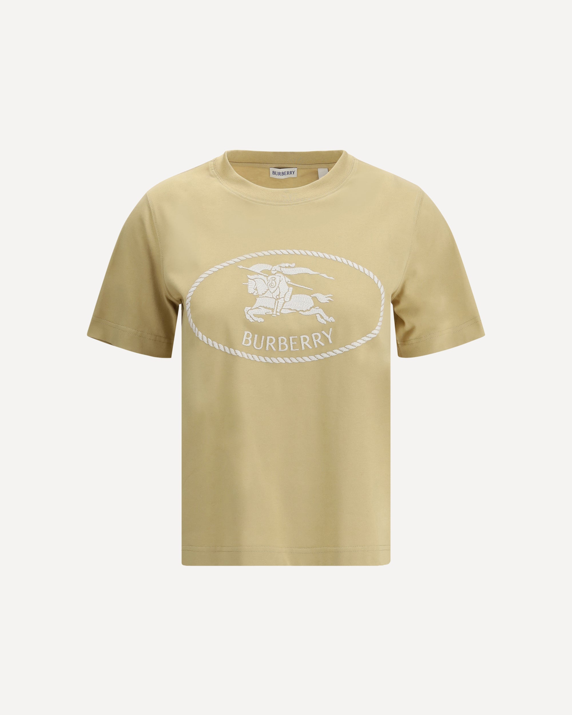 Burberry's T-shirt is an essential garment enhanced by iconic details. Made of soft cotton, it is embellished with the embroidered Knight Stamp, an archival motif first introduced on Burberry bags in the 1980s. A ribbed crew neck and a clean silhouette complete the design, for a casual yet heritage-soaked style.