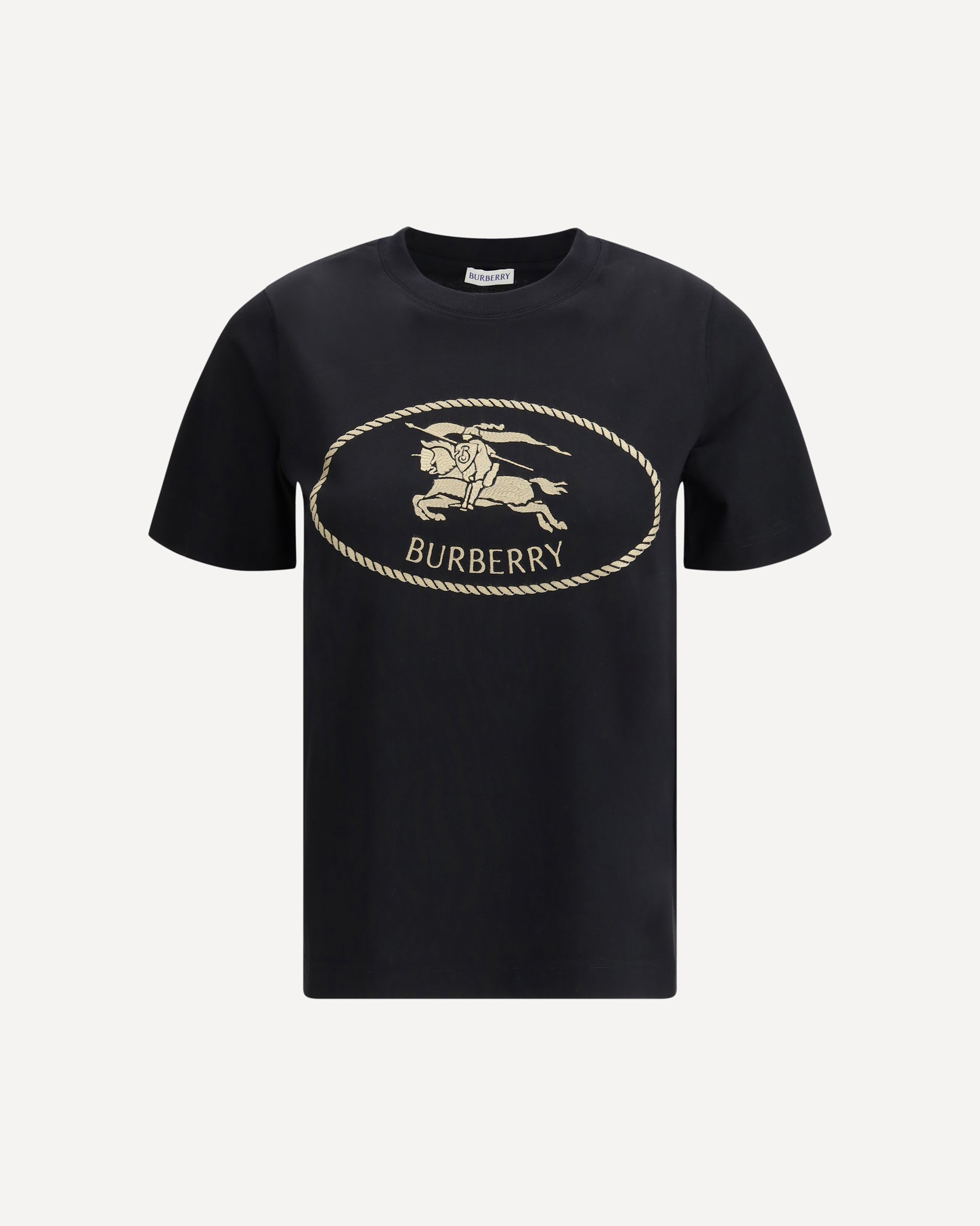Burberry's T-Shirt is an essential garment enhanced by iconic details. Made of soft cotton, it is embellished with the embroidered Knight Stamp, an archival motif first introduced on Burberry bags in the 1980s. A ribbed crew neck and a clean silhouette complete the design, for a casual yet heritage-soaked style.