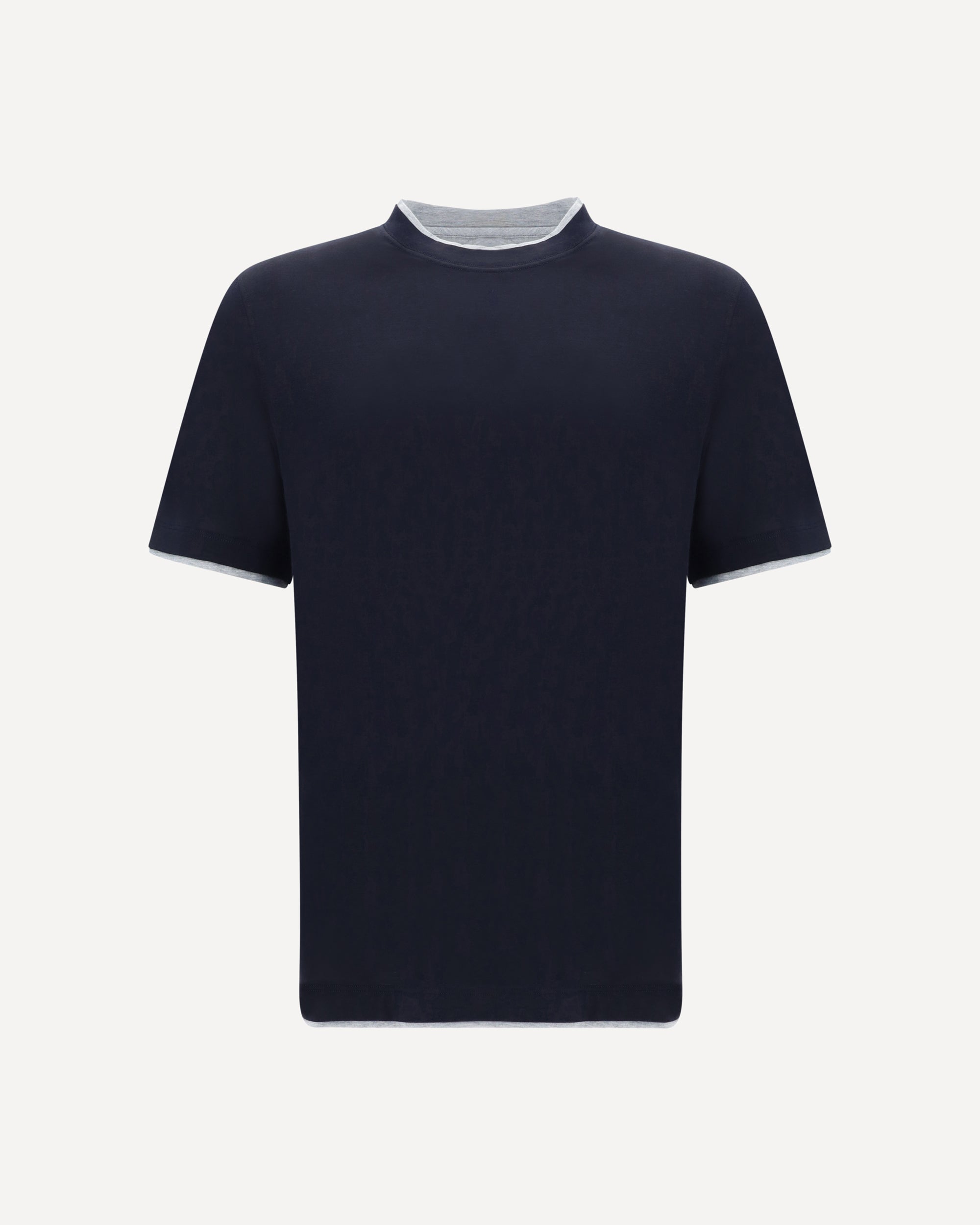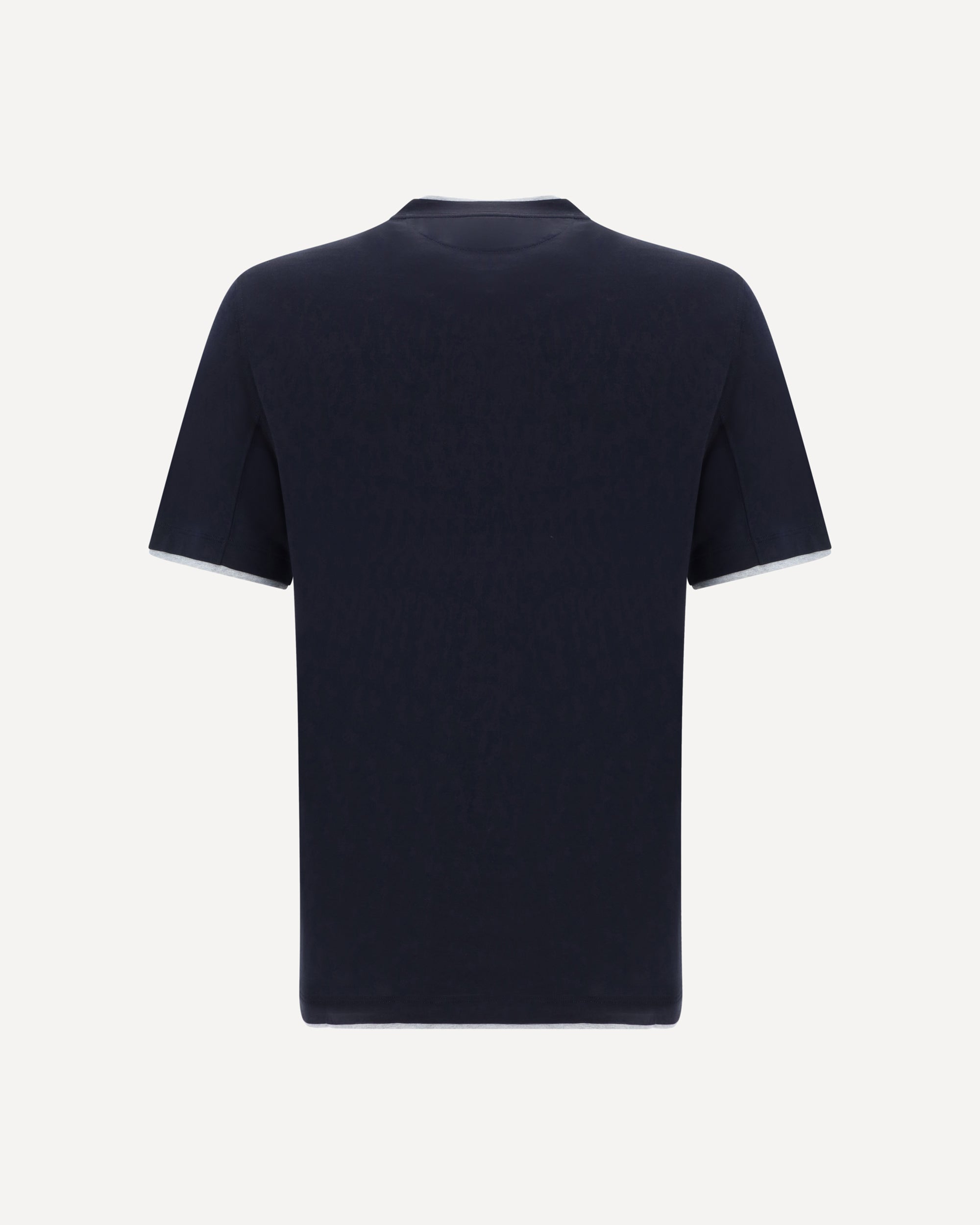 The silk T-Shirt by Brunello Cucinelli is a garment of refined elegance, combining fine materials with sophisticated design. Made of soft silk, it features a two-tone double layer on the hems, giving movement and a contemporary touch to the model. The monochrome pattern maintains the balance between sobriety and style, making this T-shirt perfect for those who want to combine comfort and class in a versatile and sophisticated look.