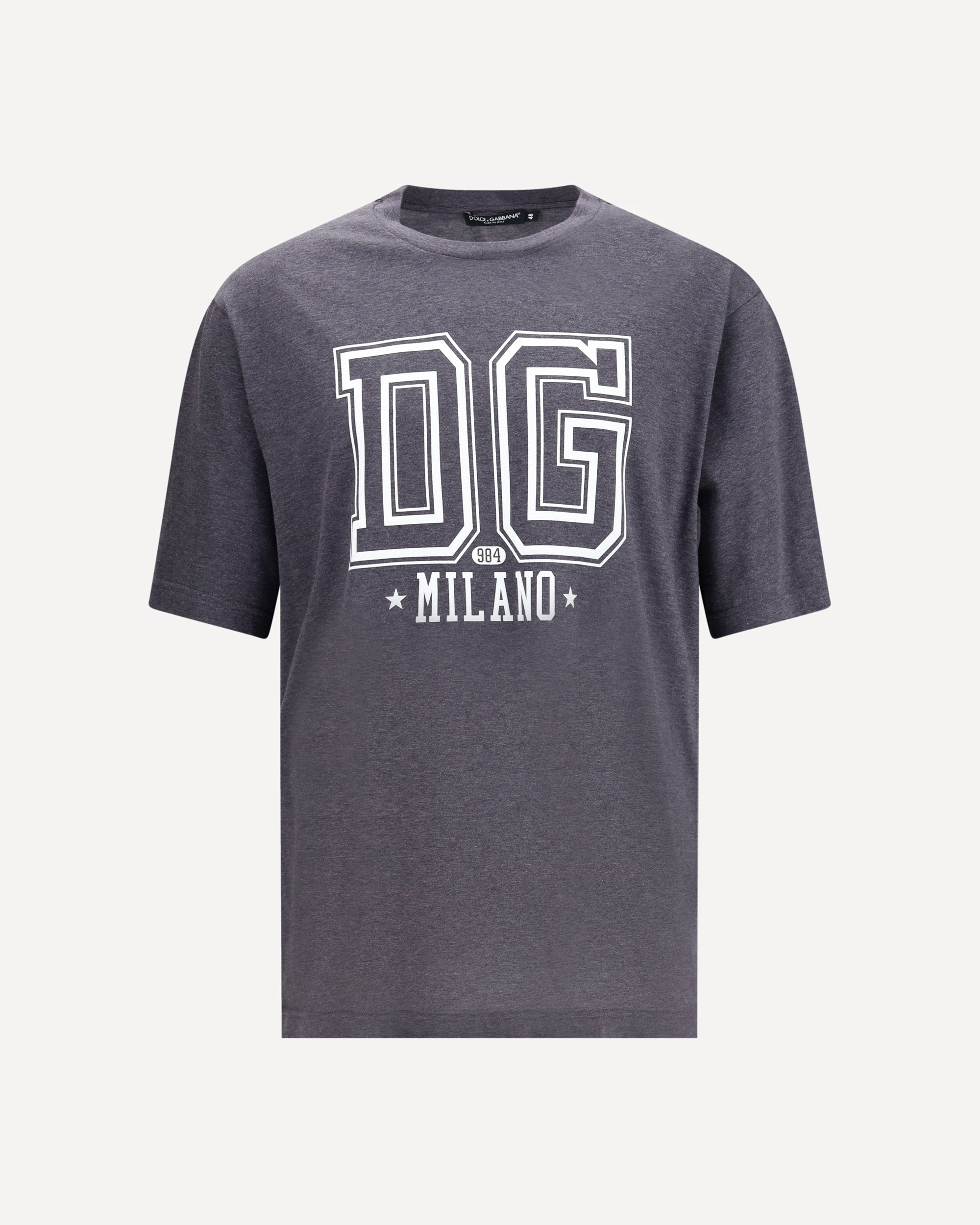 The Cotton T-Shirt by Dolce & Gabbana is defined by a clean design enriched with a Milano logo print on the front. A ribbed crew neck enhances its streamlined silhouette, while the cotton fabric ensures comfort and versatility, making it ideal for casual looks with a distinctive touch.