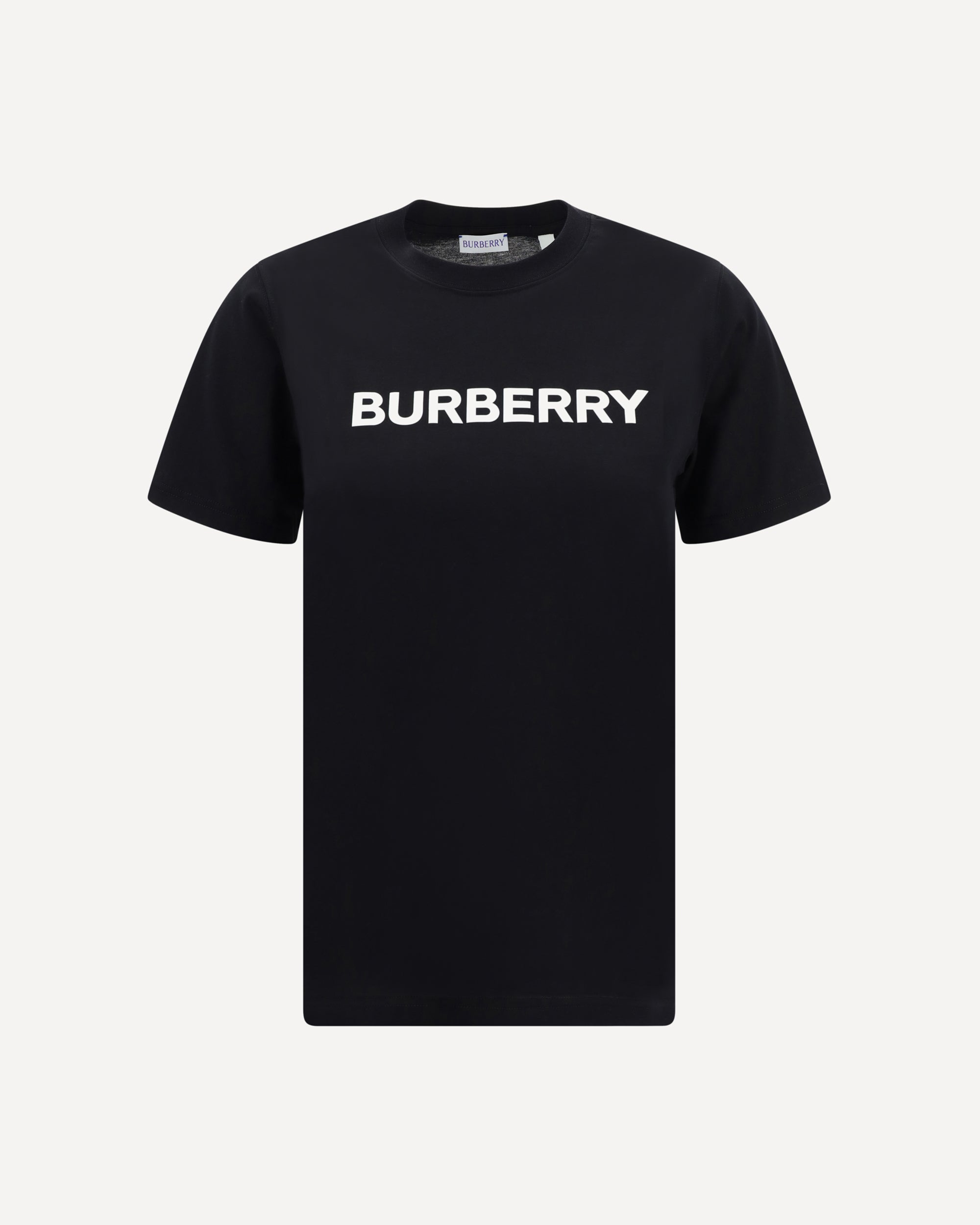 Cotton T-Shirt by Burberry, ribbed crew neck, contrasting iconic brand monogram on front, monochrome pattern, regular fit.
