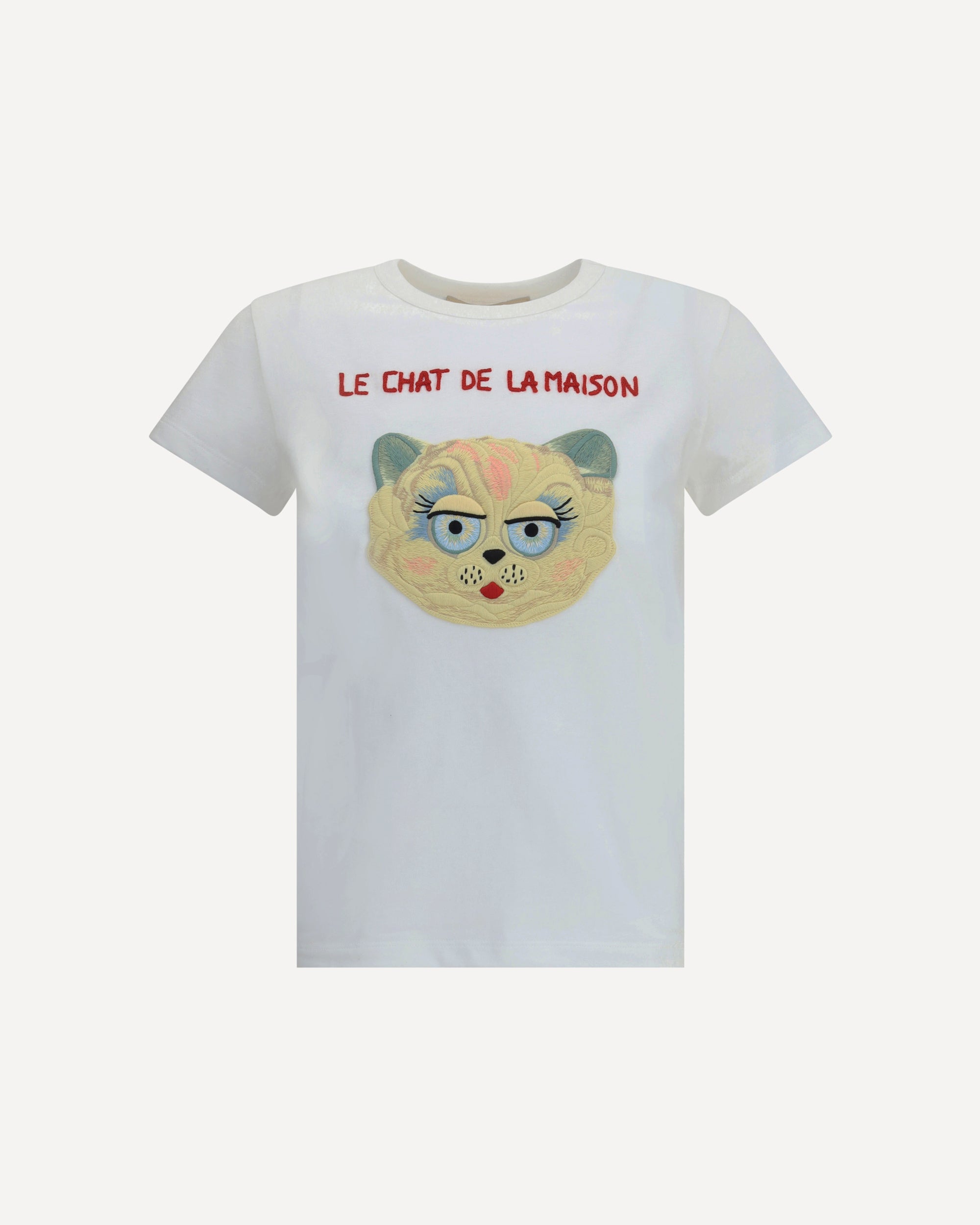 The Le Chat De La Maison T-Shirt by Valentino is an essential piece with a distinctive touch. Crafted with a ribbed crew neck, it is embellished with the iconic Chat De La Maison embroidery sewn onto the front, for a casual yet sophisticated look.
