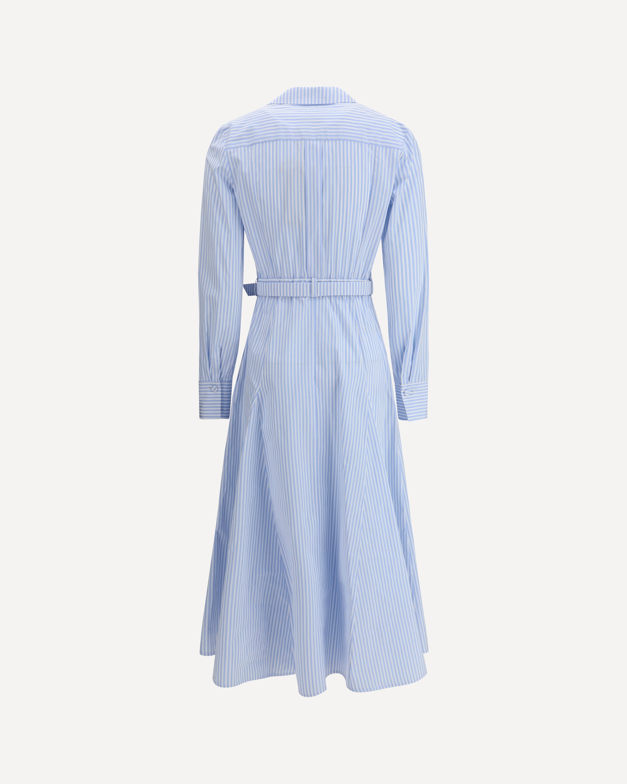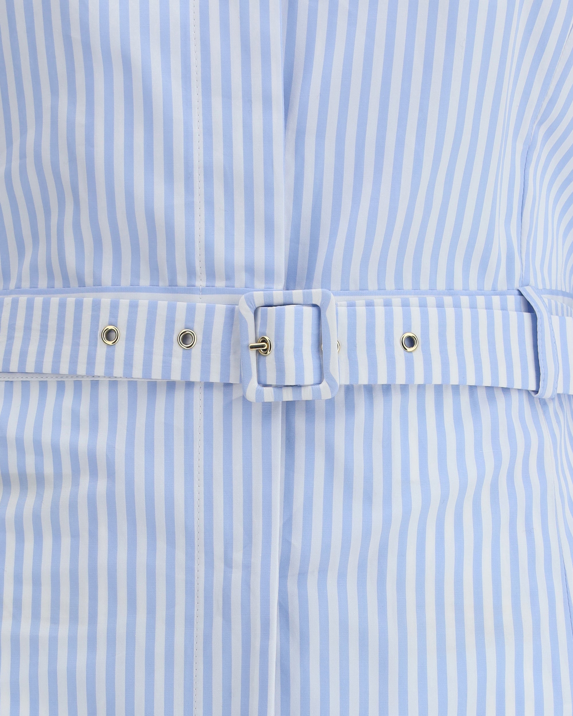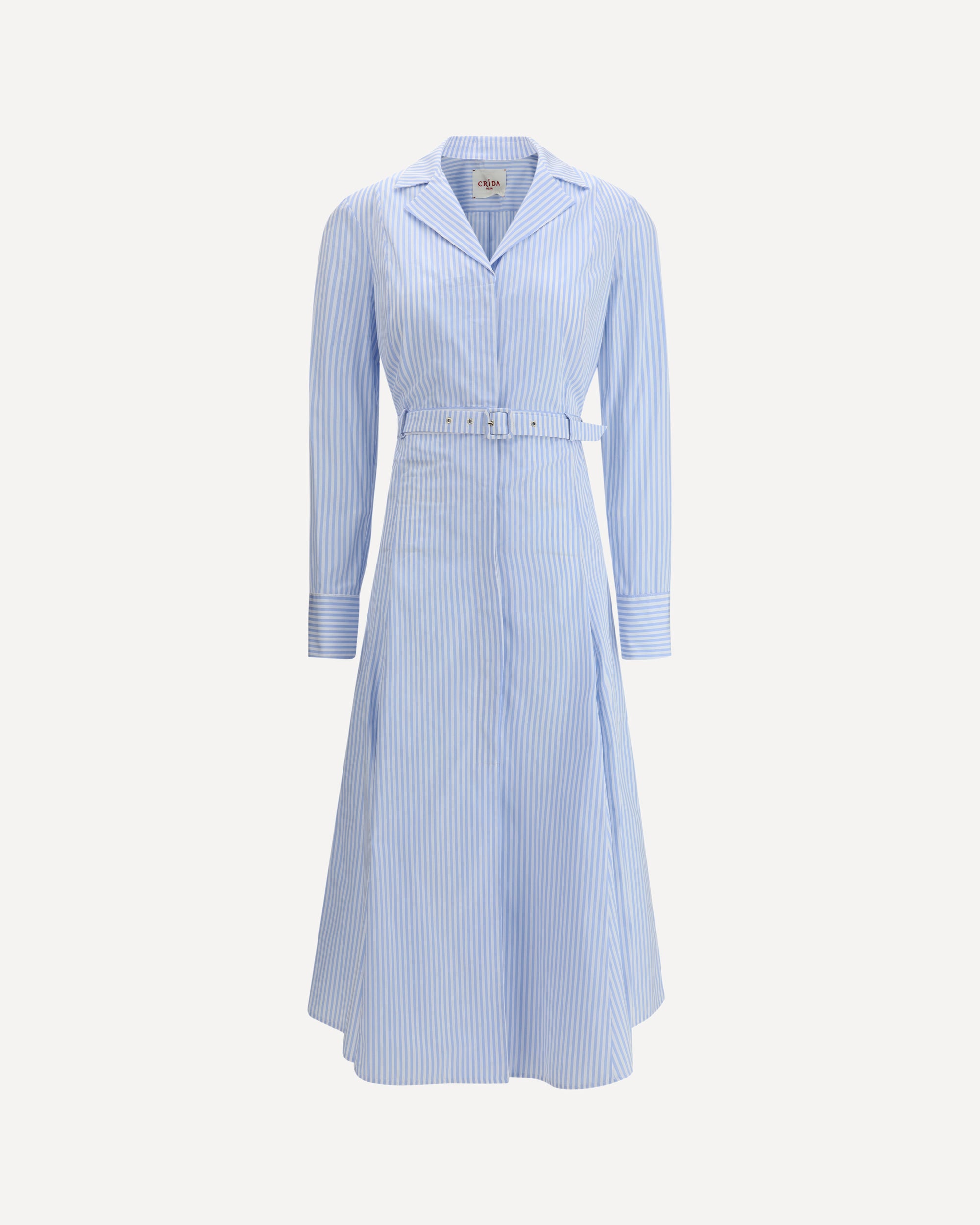 Crida Milano's Taranto chemisier Dress is an elegant and versatile garment perfect for a variety of occasions. Its classic lapel construction lends a touch of sophistication, while welt pockets add practicality without compromising style. The matching adjustable and removable belt allows you to customize the fit and accentuate the silhouette. The slightly flared wedge skirt gives a fluid and dynamic movement, ideal for those seeking a sophisticated yet comfortable look. Finally, the striped pattern makes the dress modern and versatile, suitable for both formal and more casual settings.