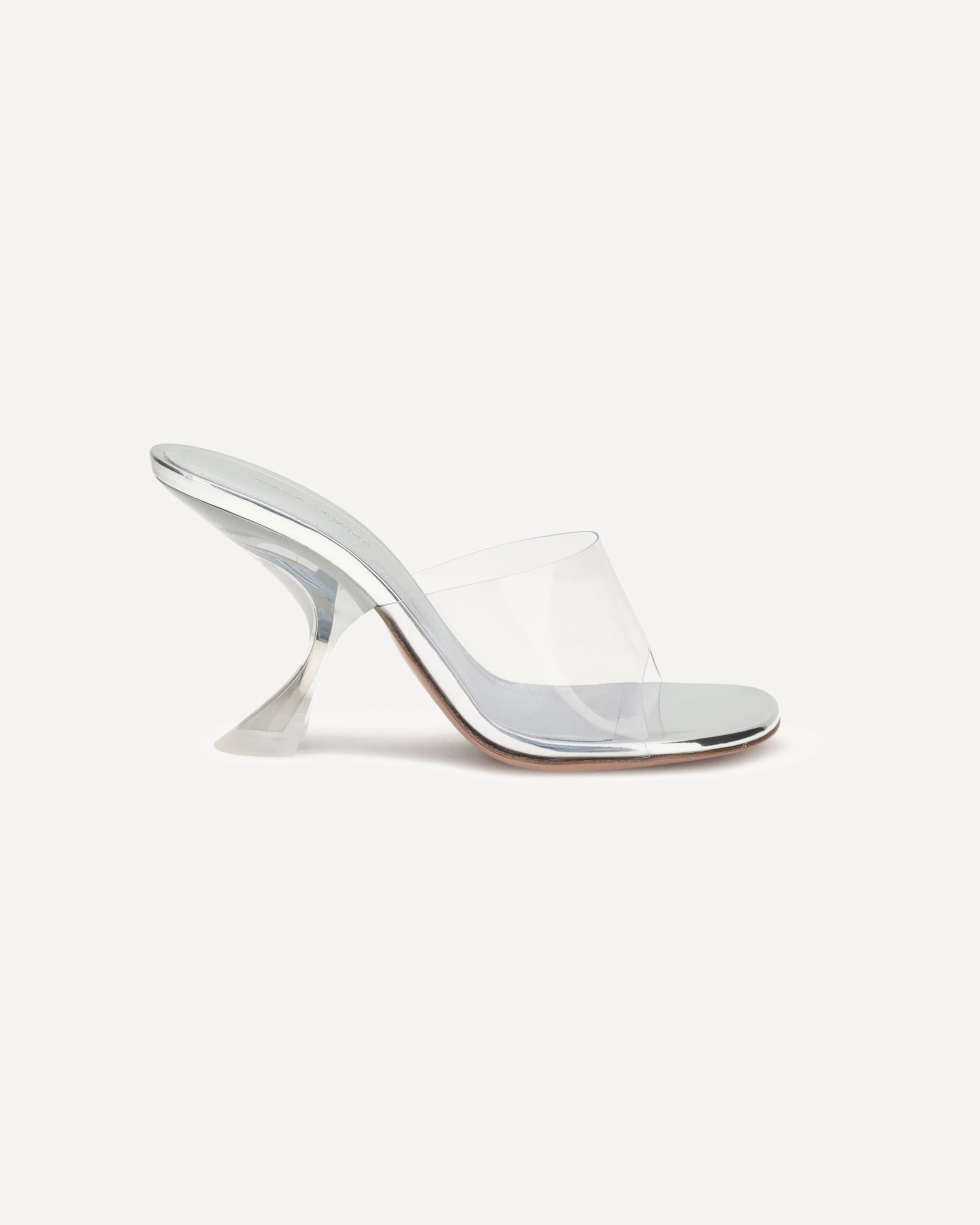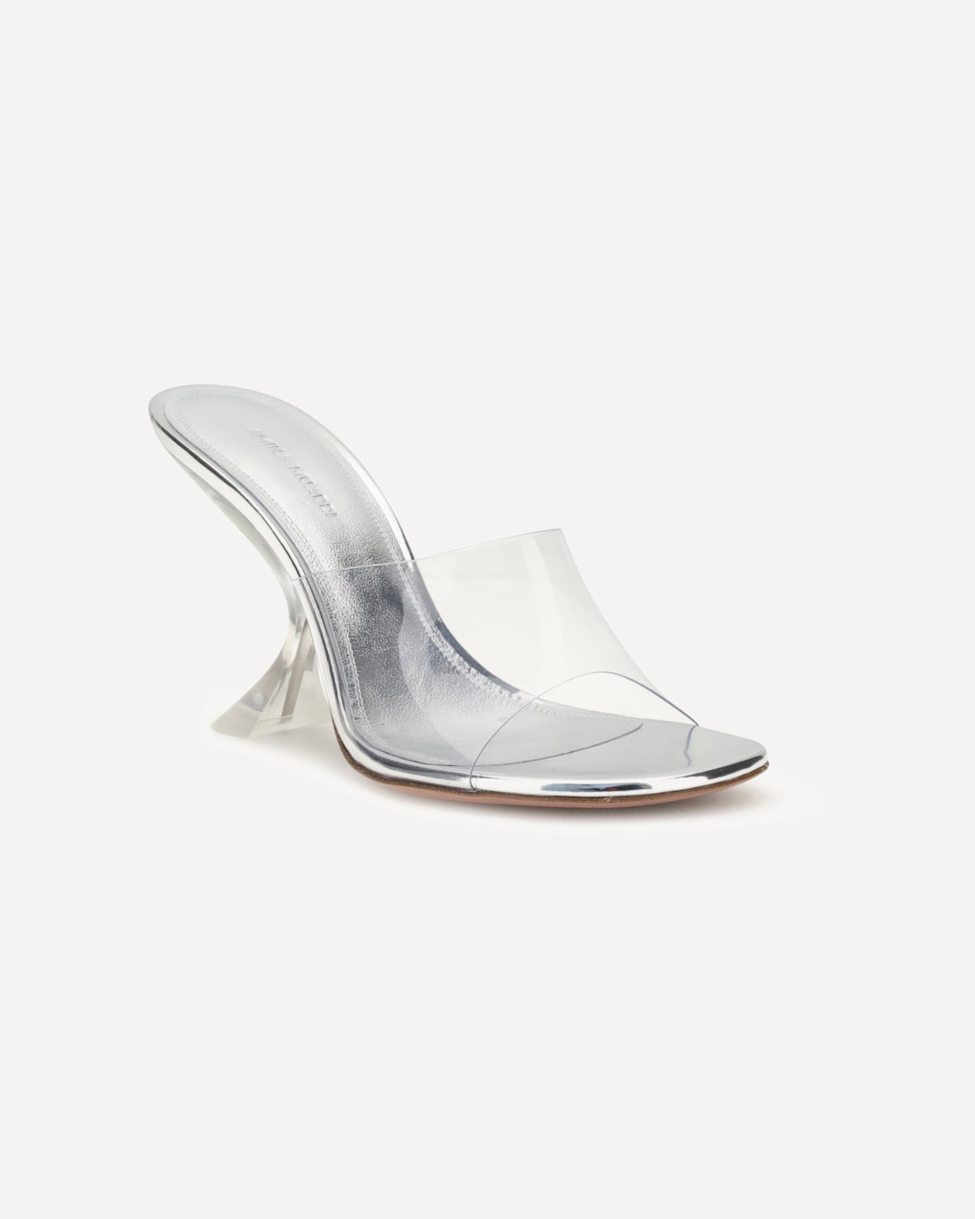Taylor Glass Sandals by Amina Muaddi are an expression of bold, modern design. They are distinguished by a slightly squared open toe, which lends a contemporary and refined touch. The geometric heel, a distinctive element of the brand, offers a sculptural aesthetic and a bold gait. The semi-transparent front band lends a delicate and sensual effect, while the press-stamped logoed insole underscores the brand's authenticity.