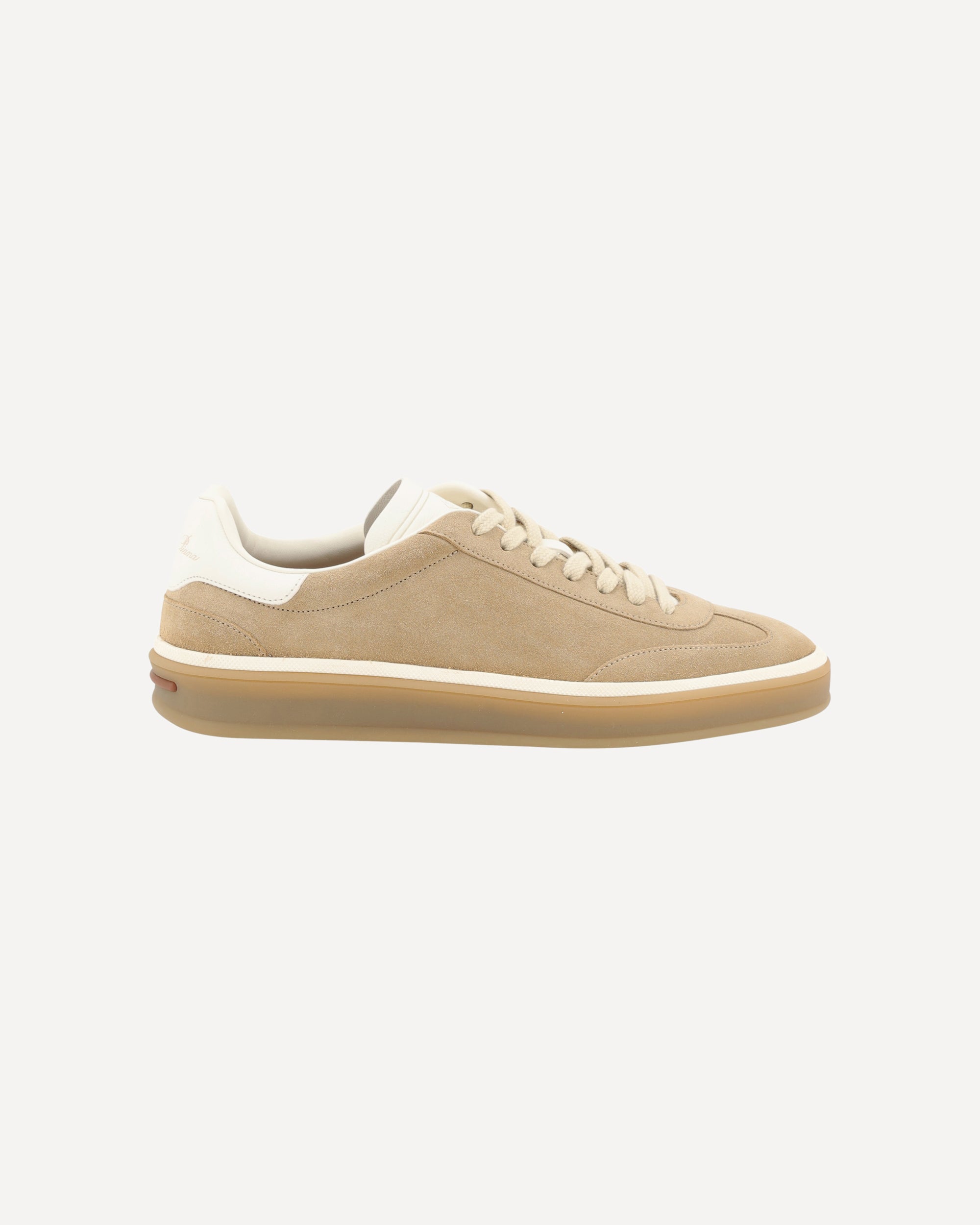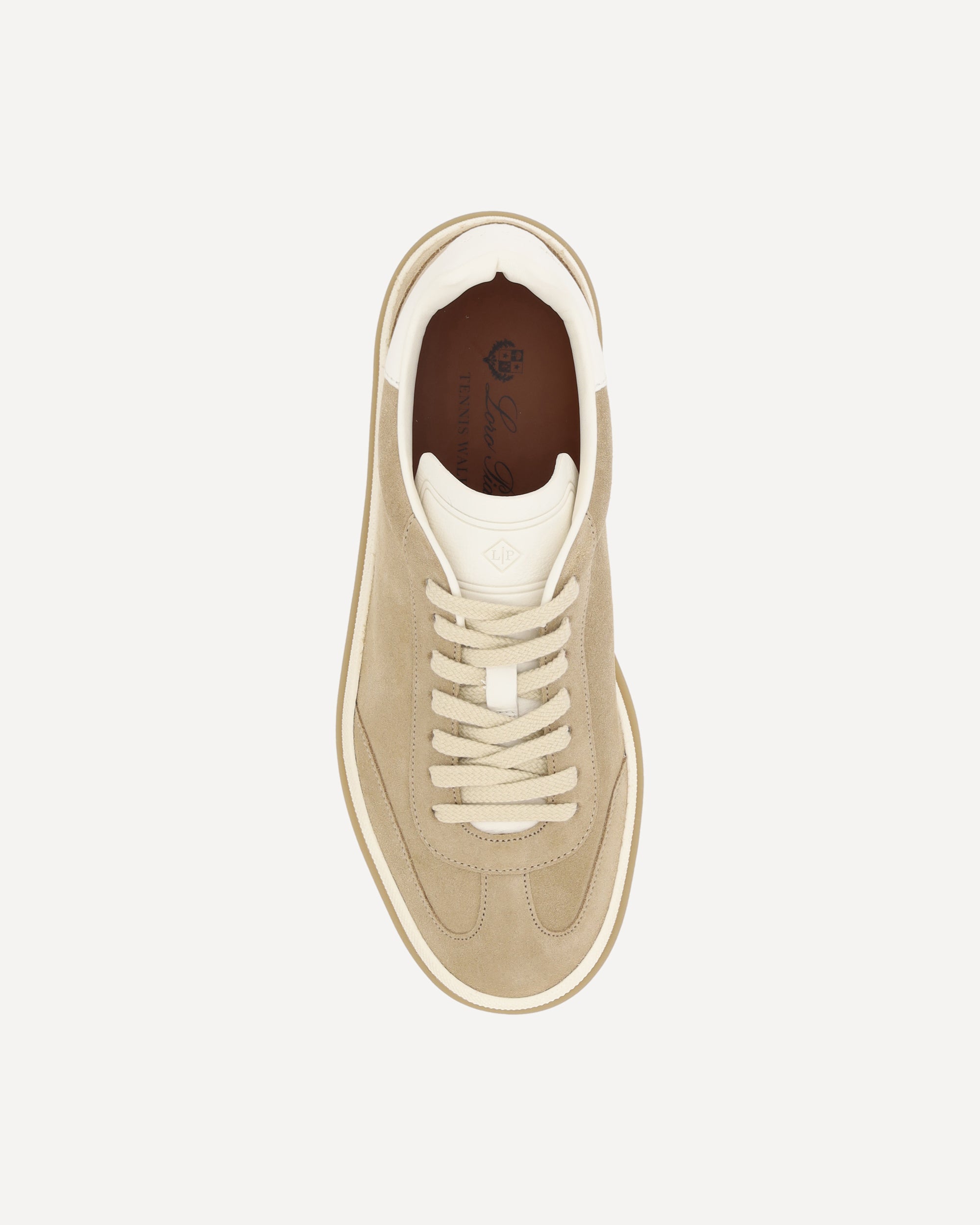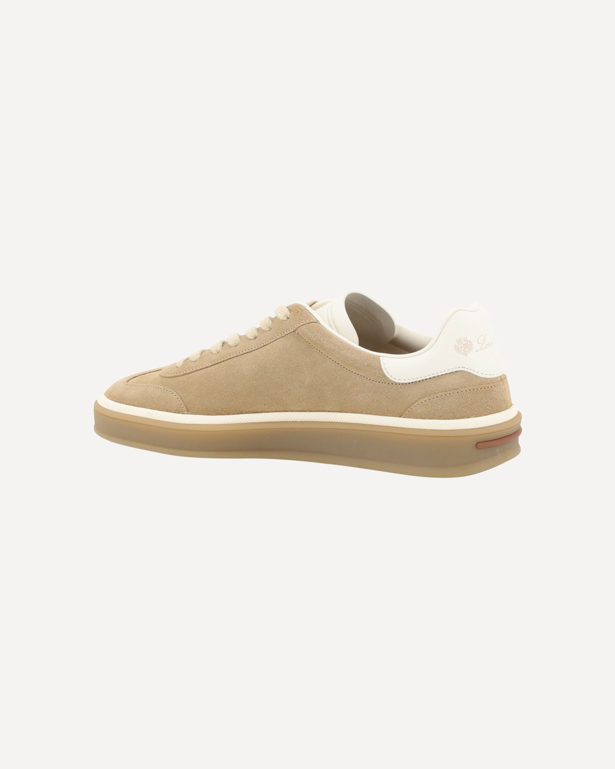Loro Piana's Tennis Walk Sneakers are a perfect example of casual elegance and high quality. Made of suede leather, these sneakers offer a sophisticated and versatile design. The lace-up upper closure ensures a secure and comfortable fit, while the crate sole adds a modern touch and superior comfort. On the back, the brand's iconic monogram stands out, providing a distinctive and recognizable detail.