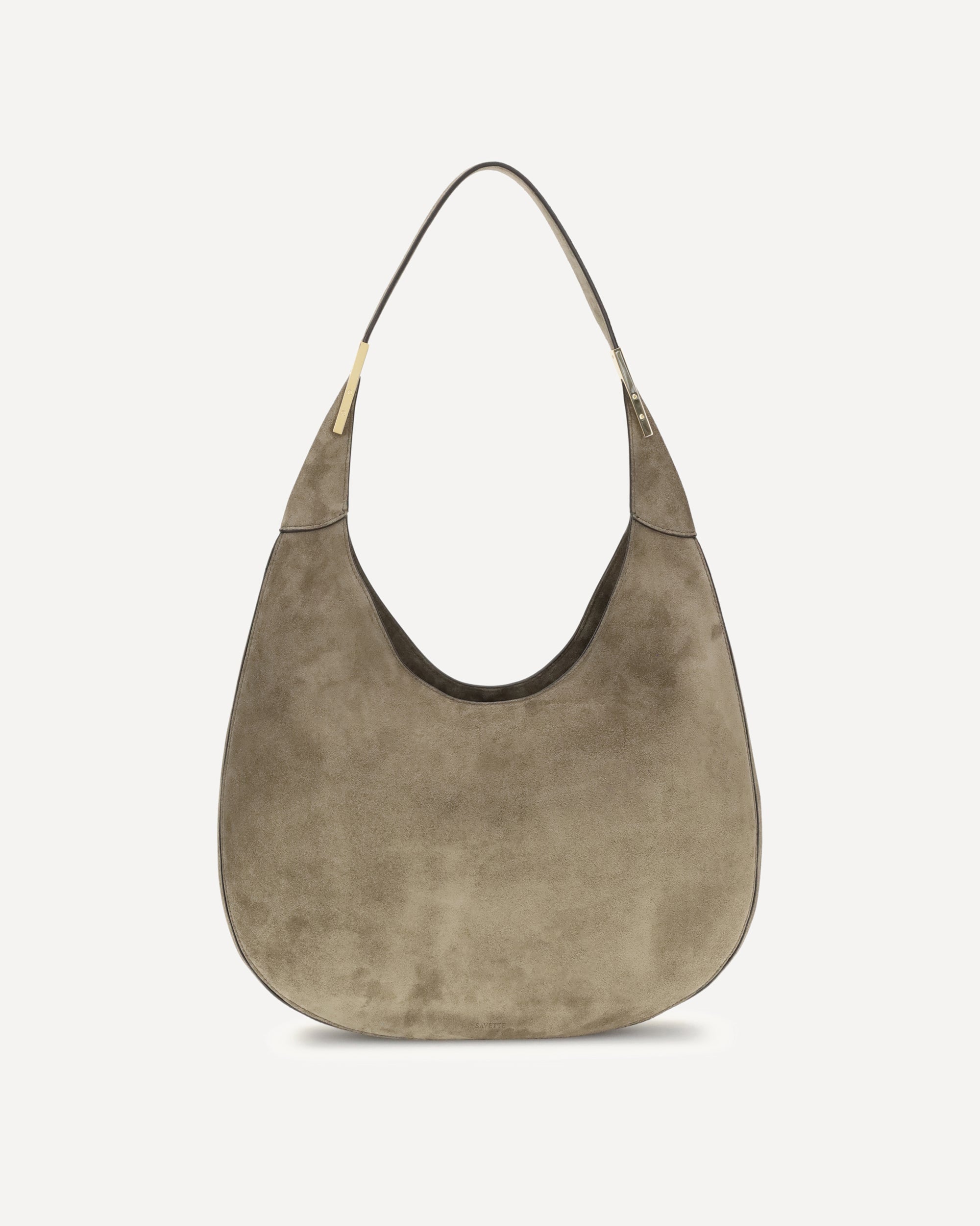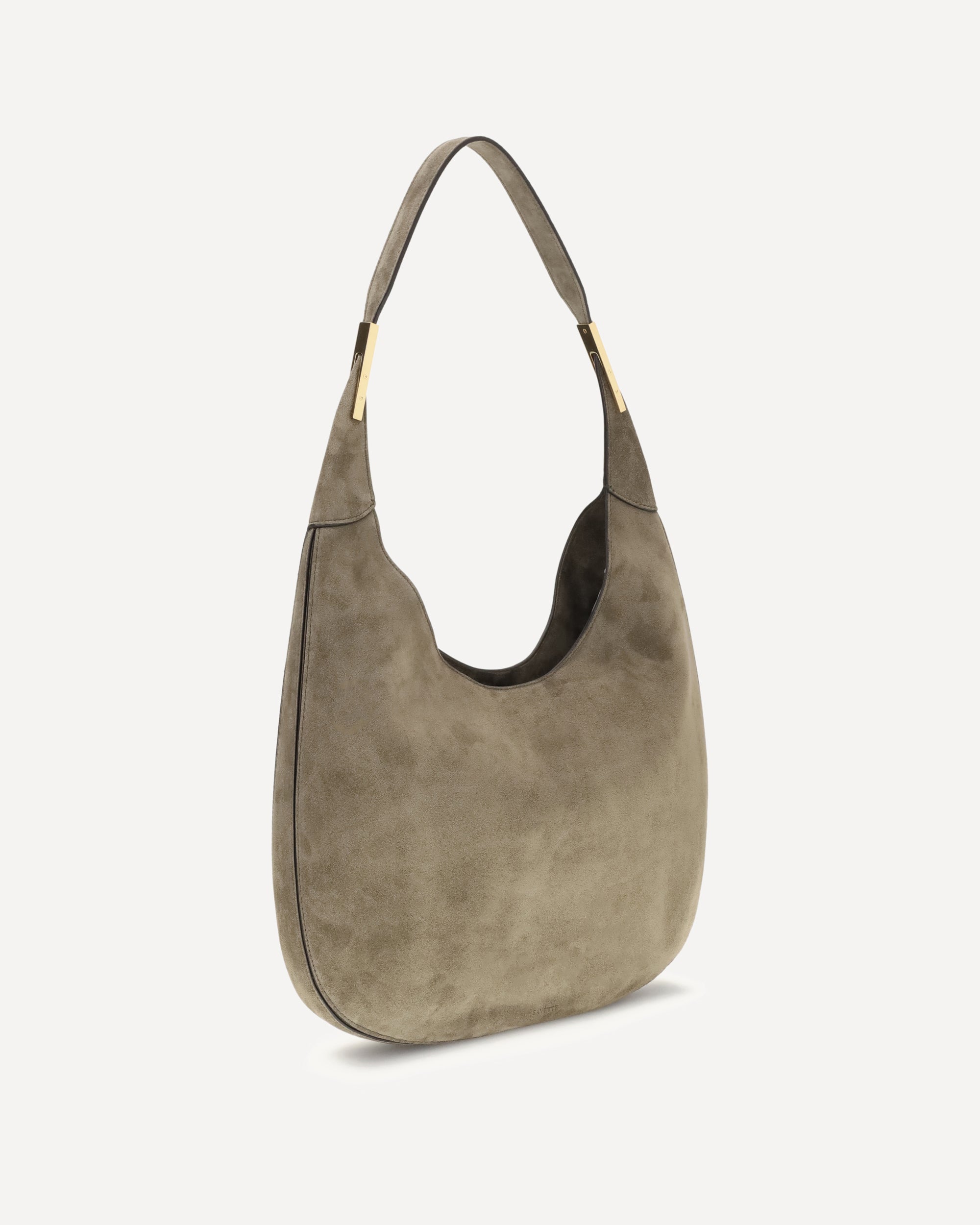 The Florence Hobo Shoulder Bag by Savette features a soft, flowing silhouette that tapers gracefully to a slim shoulder strap. The spacious interior offers great practicality, while minimal metal details lend understated, contemporary elegance. A suede lining, shoulder strap and drawstring closure complete the design for the perfect balance of functionality and sophistication.