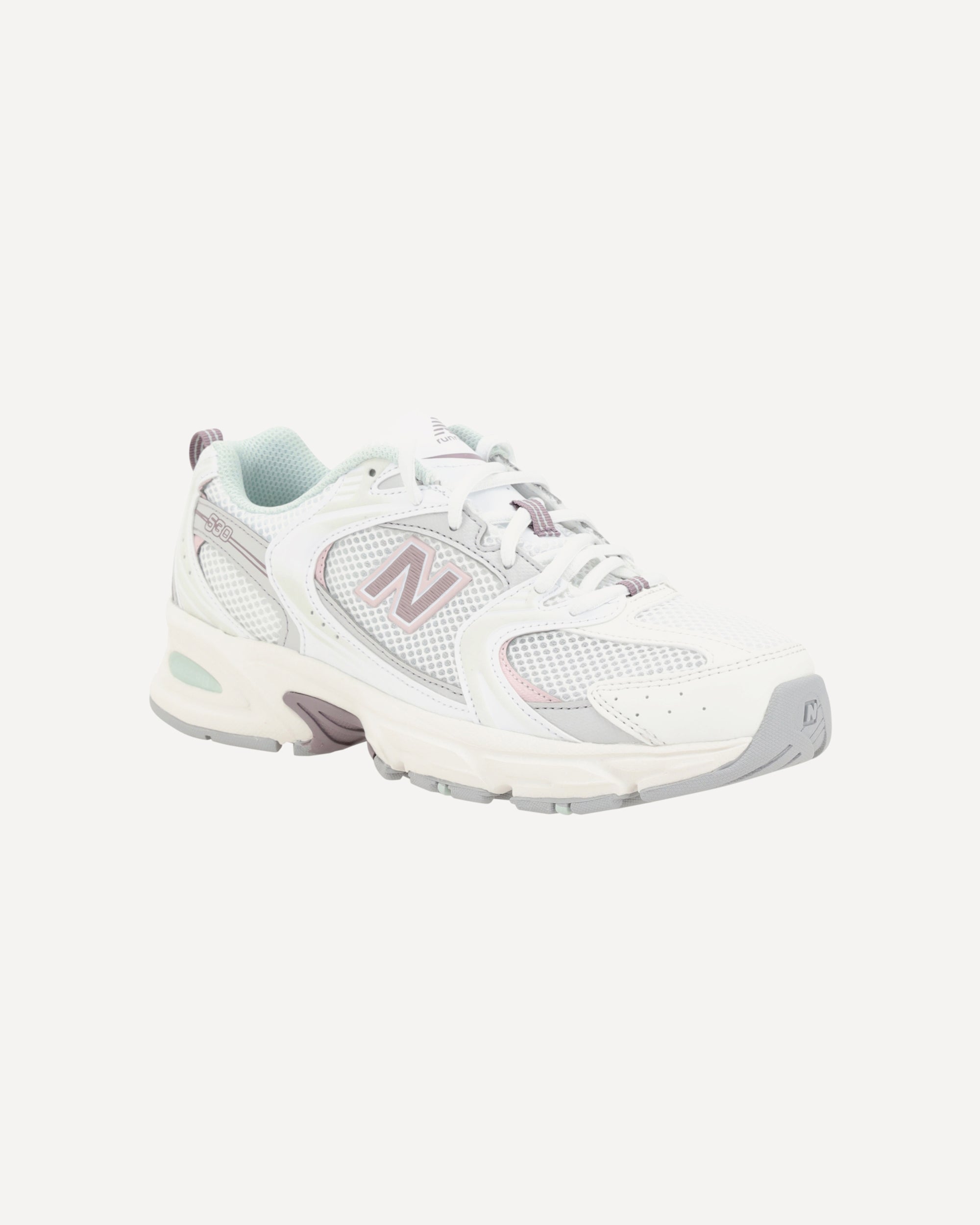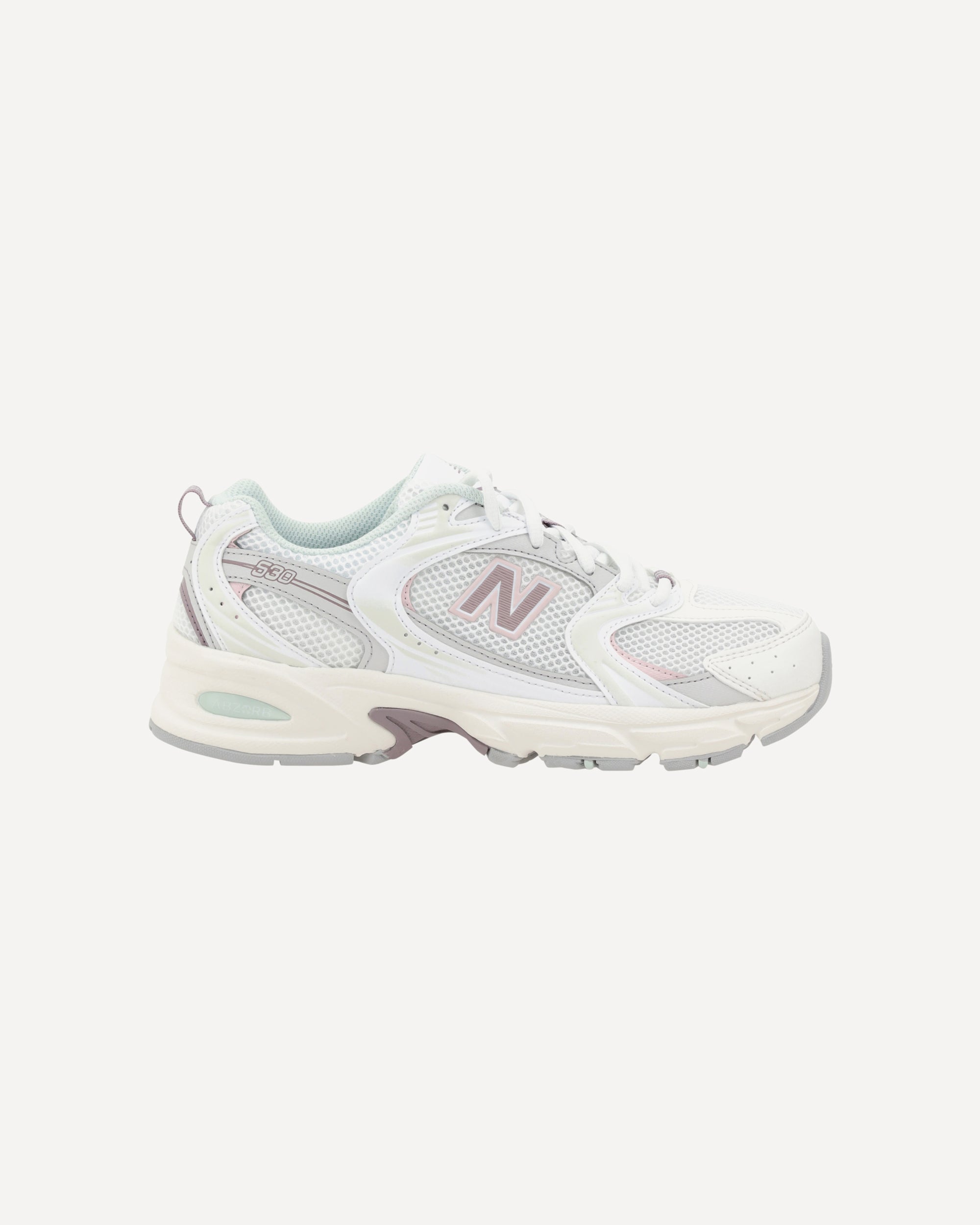 The New Balance 530 Sneakers combine contemporary style and comfort. The mesh upper with leather details ensures breathability and durability. The front lace-up closure ensures a stable fit, while the elongated toe gives a dynamic look. The raised and reinforced rubber sole offers cushioning and support. The iconic contrasting monogram on the side panels and the branded front tongue complete the design with a distinctive touch.