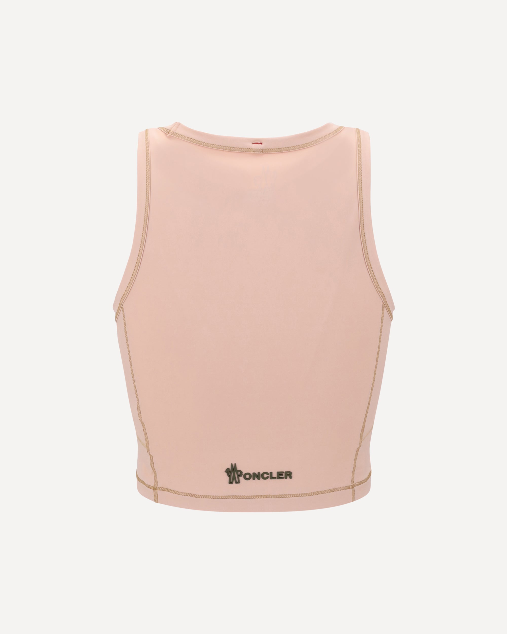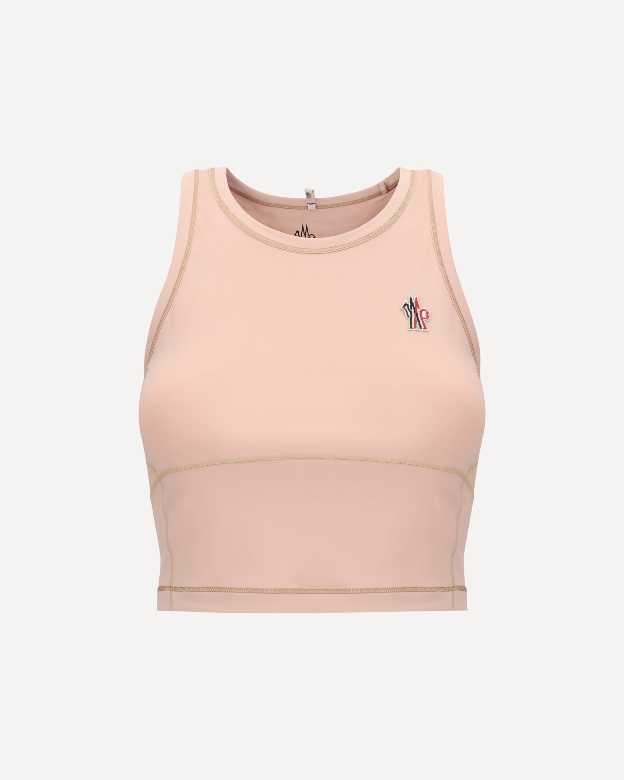 The Moncler Grenoble Cropped Top, designed as sportswear, is made of fabric with a stretchy, comfortable finish. Featuring the iconic logo stitched on the front, it combines style and functionality for a dynamic and versatile look.