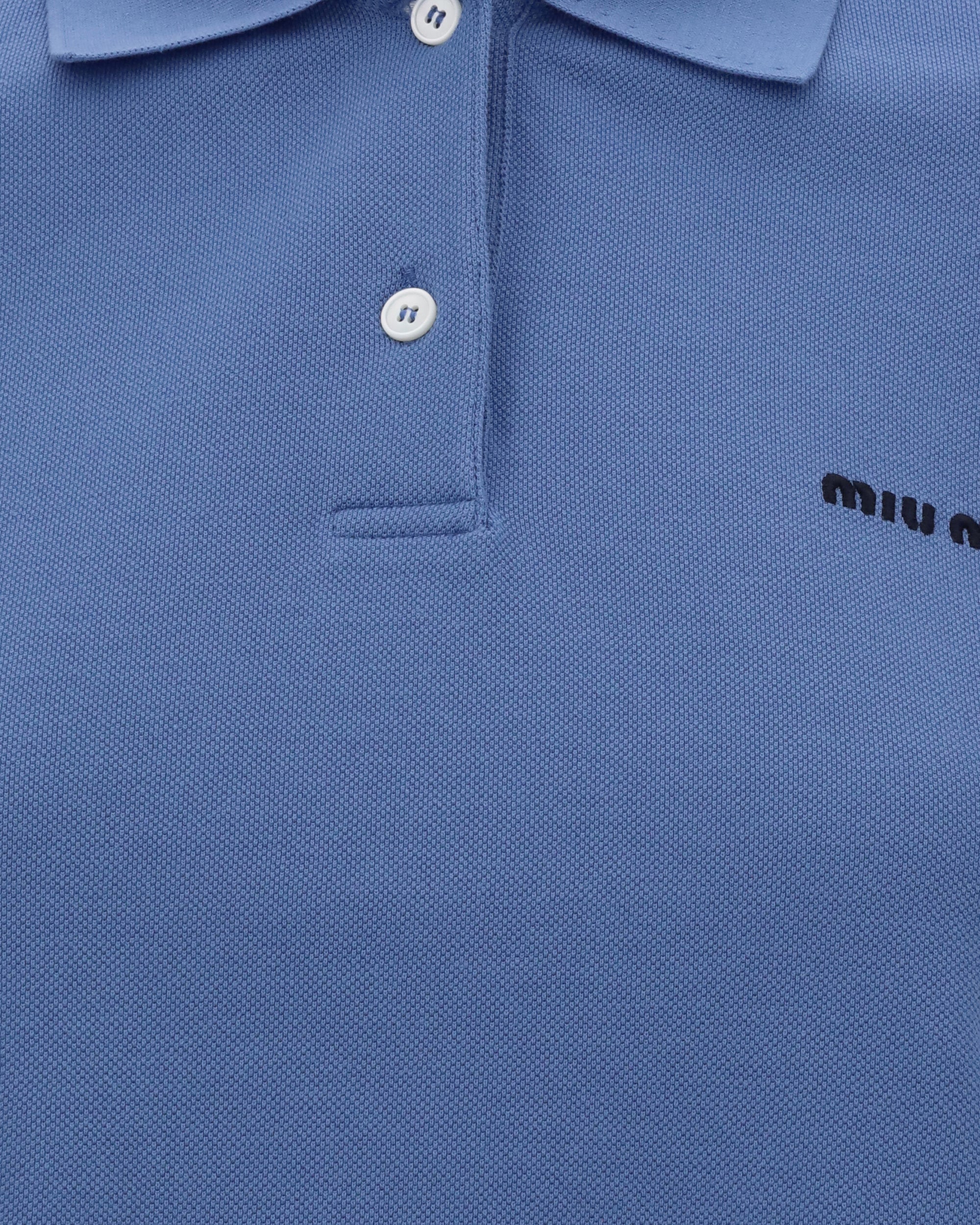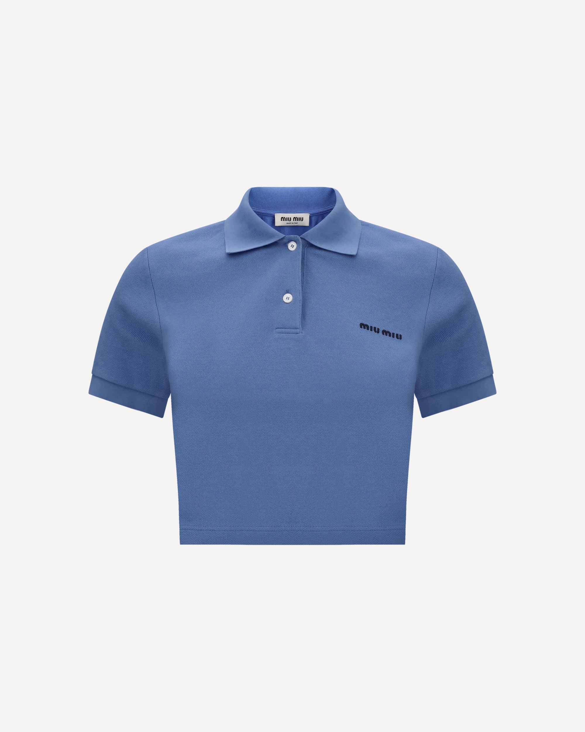 Miu Miu's Polo crop Shirt combines a sporty aesthetic with tasteful details, with a short cut that enhances the silhouette with a modern twist. The classic ribbed collar and two-button front closure maintain the polo's timeless style, while the brand's iconic signature stitched on the front adds a distinctive and recognizable touch. Two side slits complete the design, giving added comfort and movement.