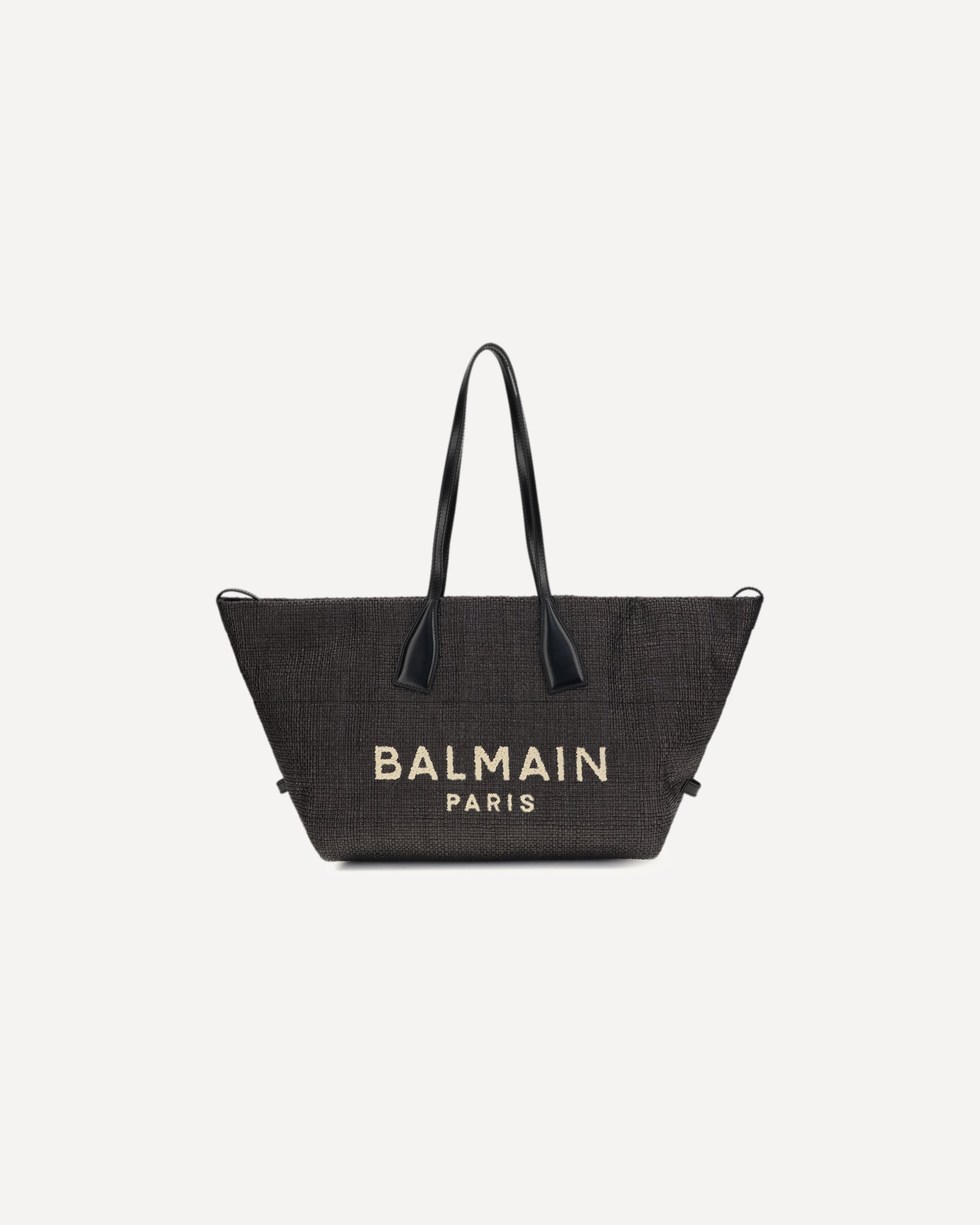 BALMAINTrack Shoulder Bag in leather and raffia