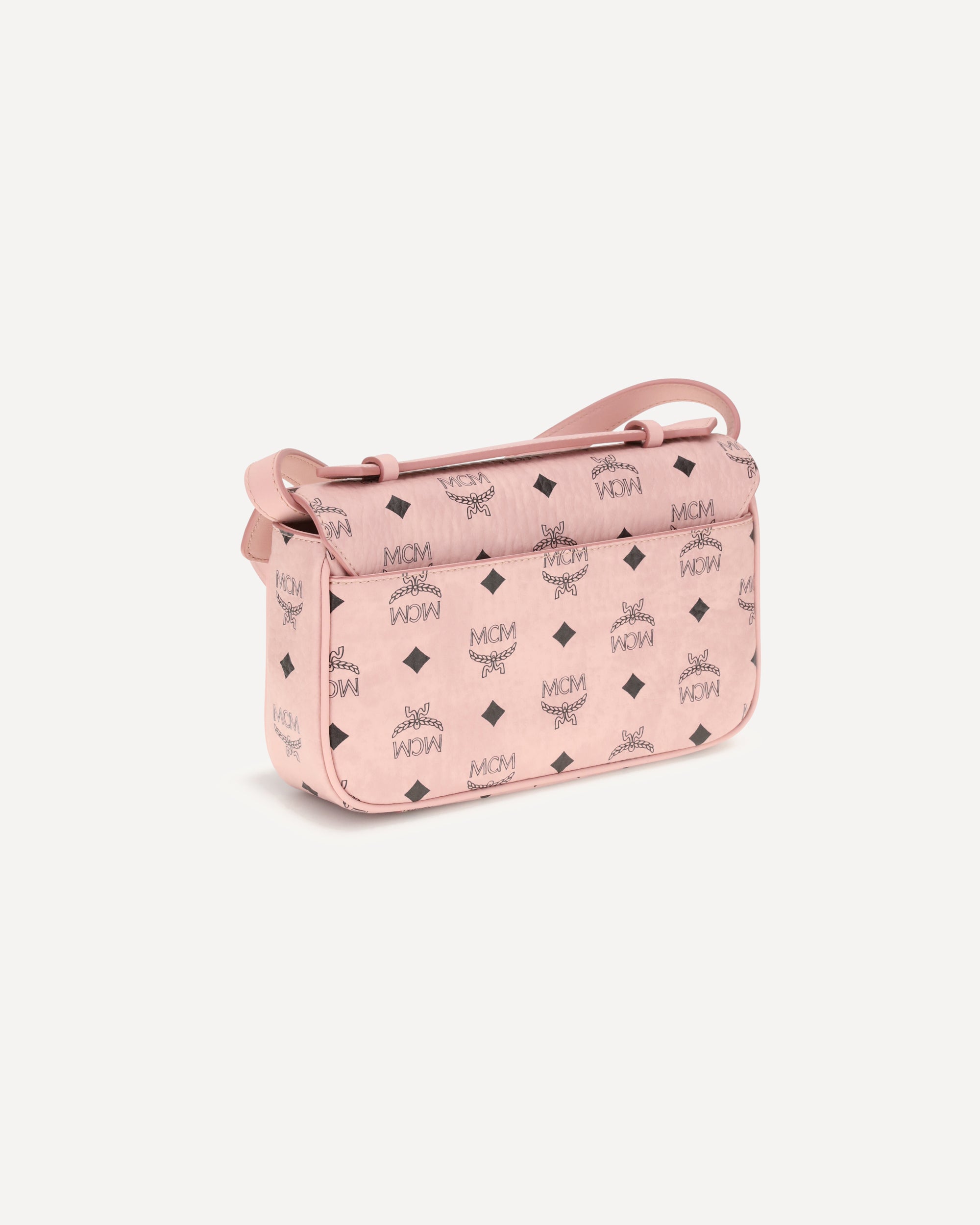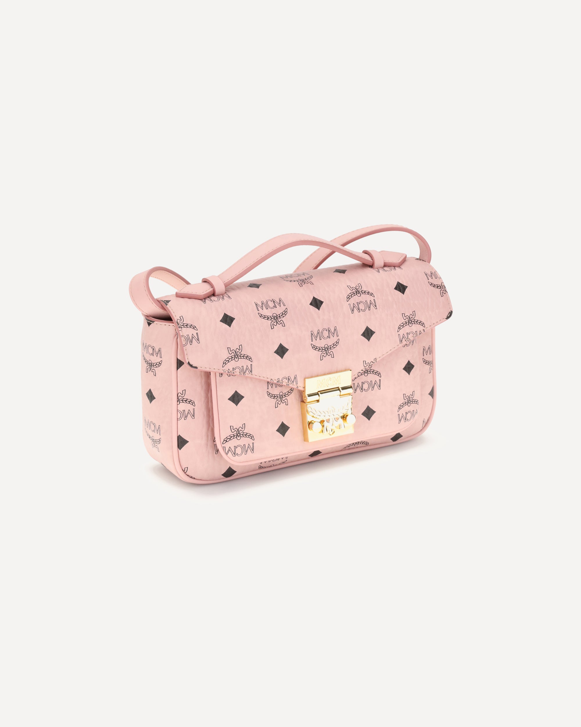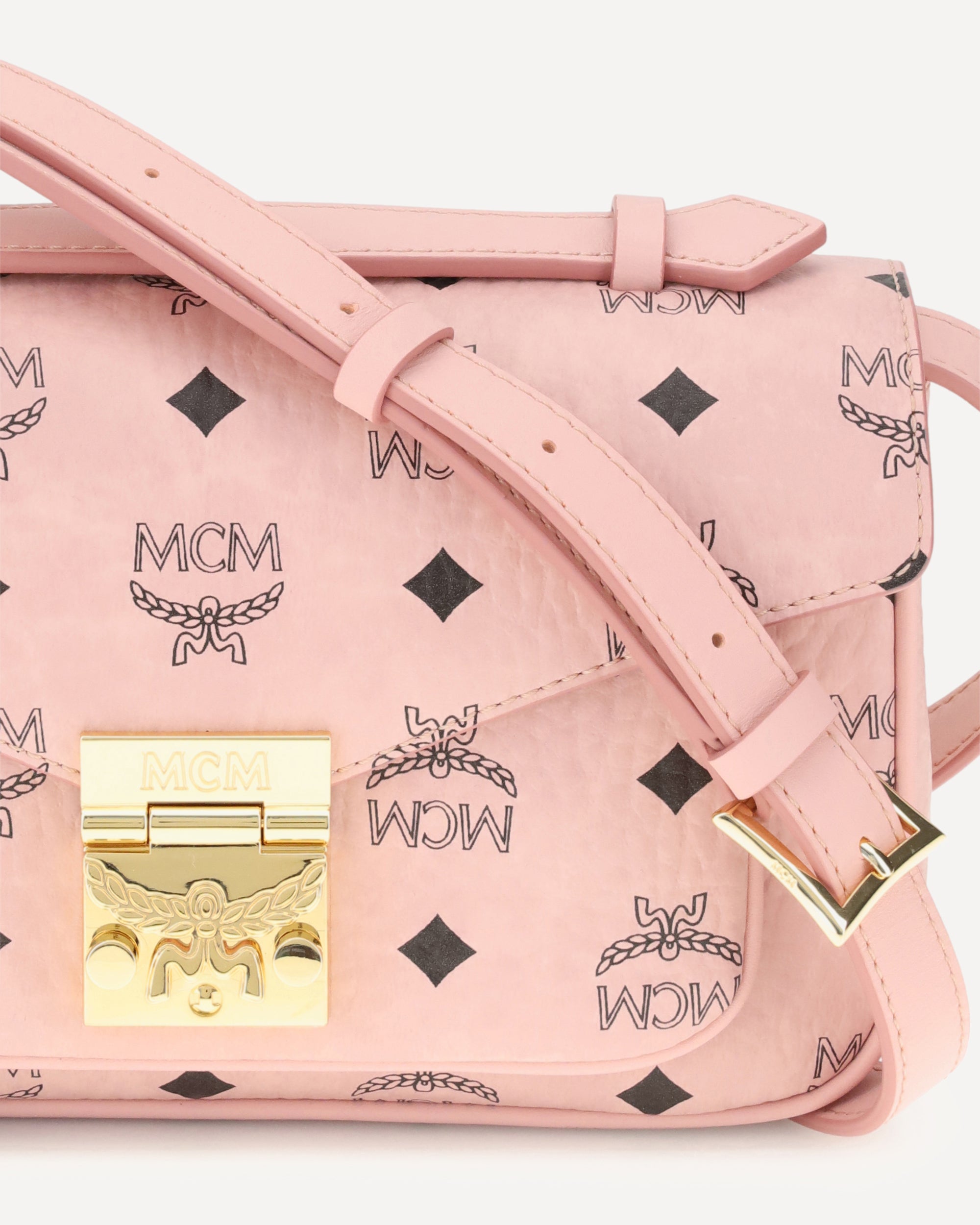 The Handbag by MCM features a rectangular design with rounded corners. Made of premium coated leather and carefully selected canvas. The meticulously finished interior is functional and organized, with multiple compartments and a zippered pocket. Luxurious details, such as the gold metal snap closure with engraved decoration and engraved MCM logo, enhance the brand's excellent craftsmanship.