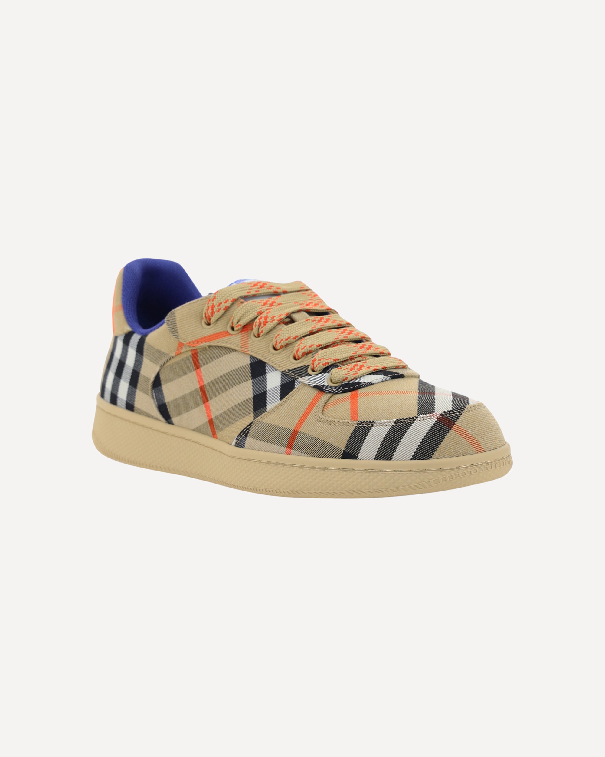 Trainer Sneakers by Burberry featuring round toe, printed fabric upper with iconic all-over printed Check Archivio pattern, flat sole, front lace-up closure.