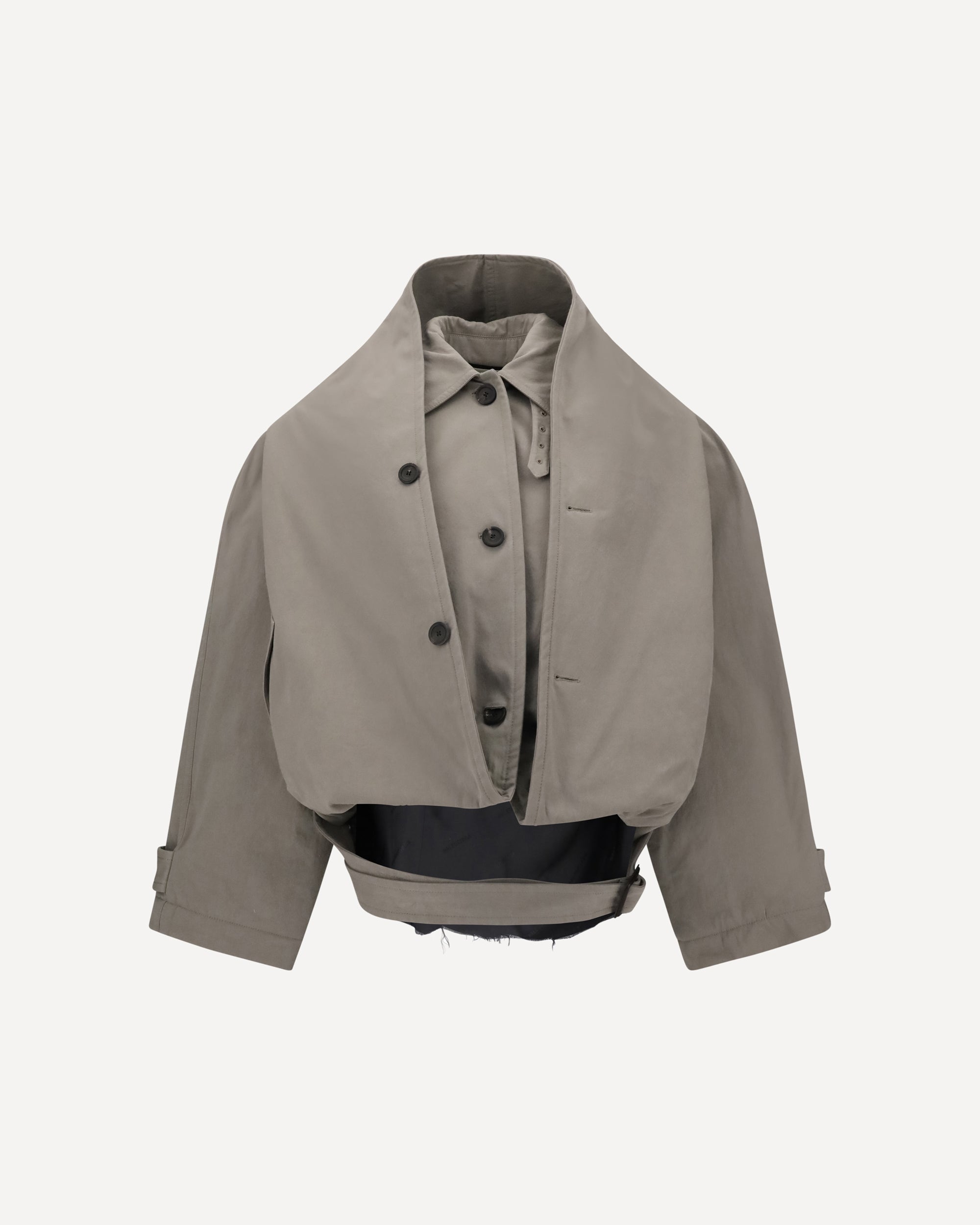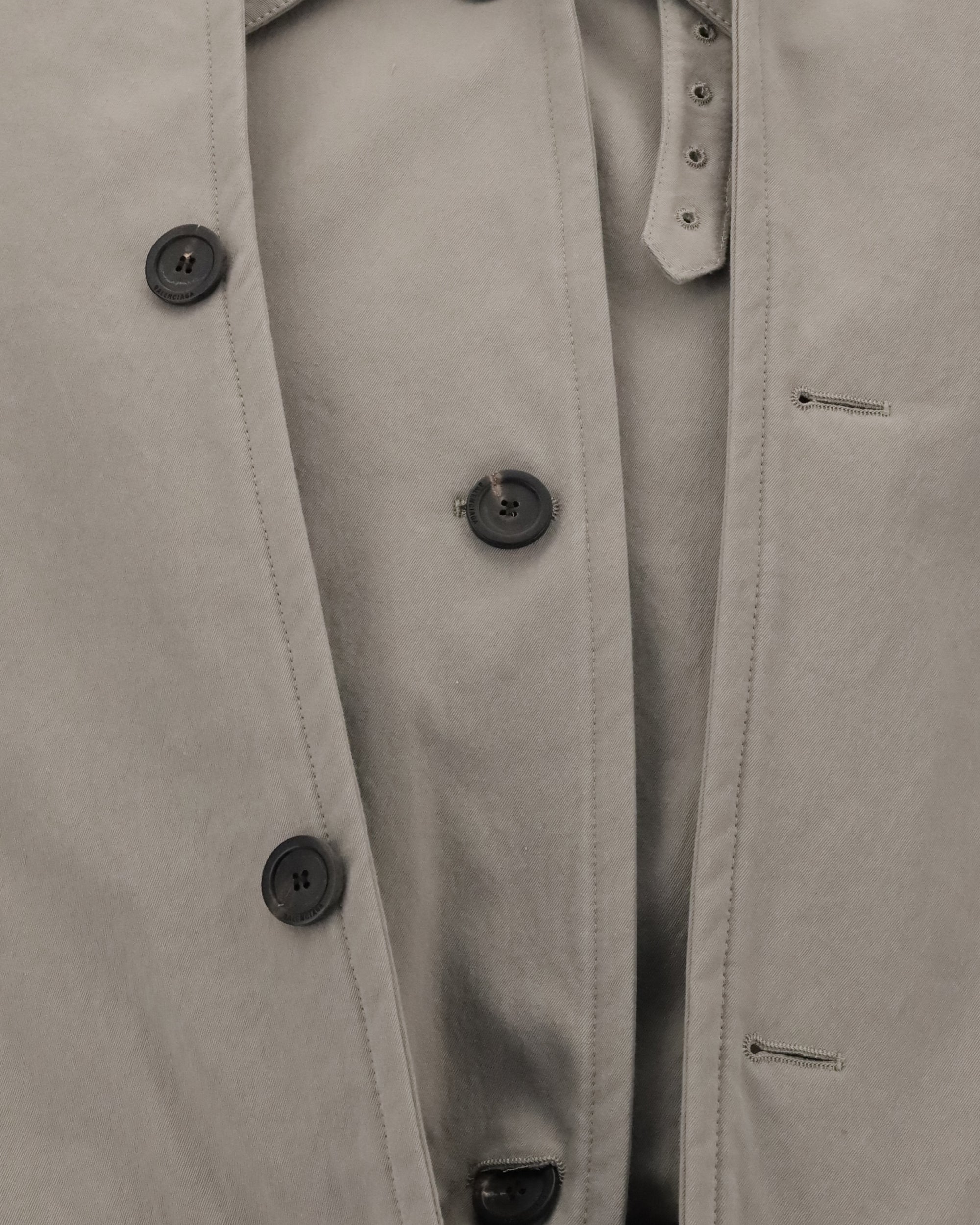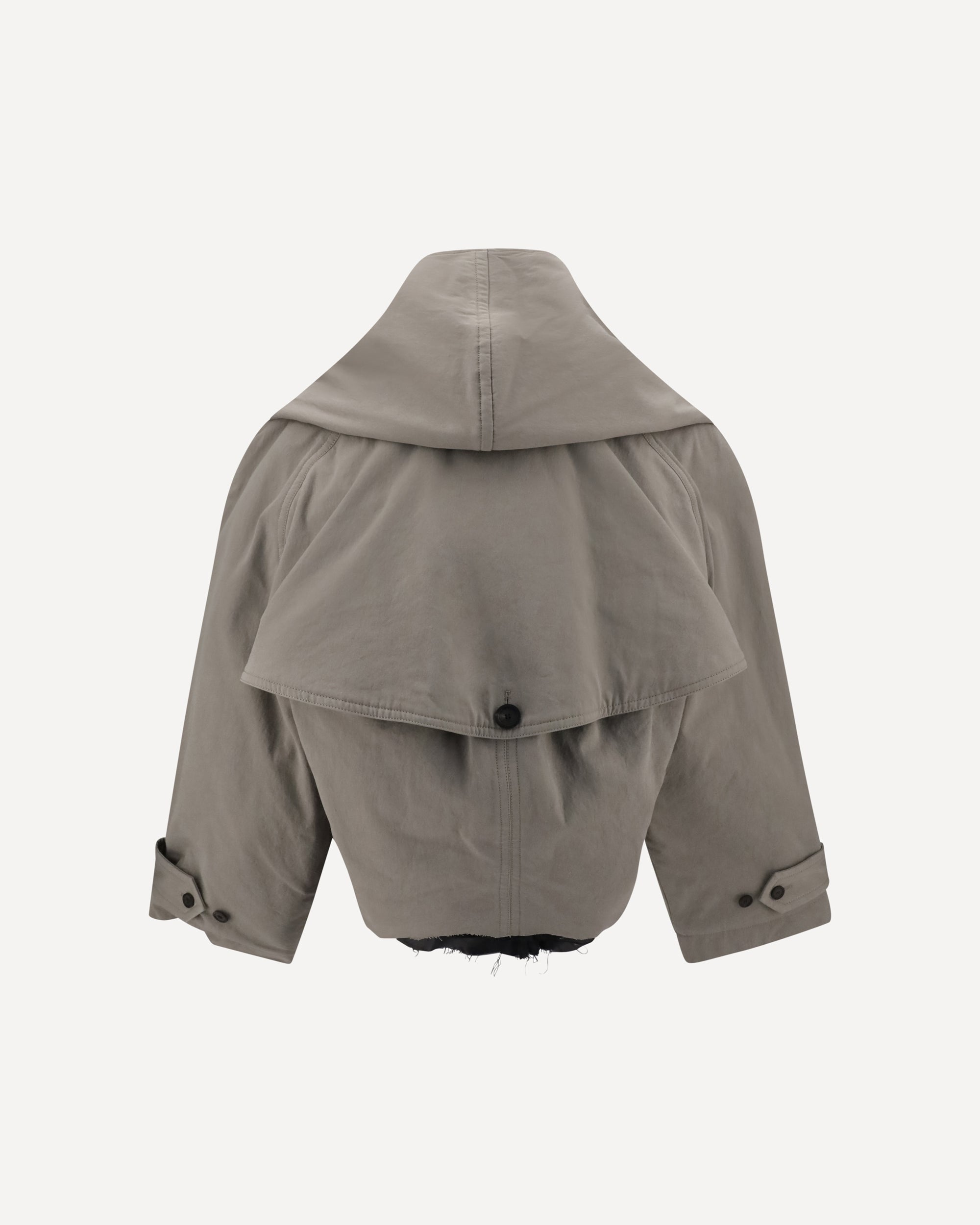 Balenciaga's Reverse Hooded Trench coat reinterprets the classic with an inverted construction and deconstructed details. Featuring a windbreak flap, front button closure and removable belt, it is distinguished by a large elongated hood and a raw-cut lining left visible. Side welt pockets complete a garment with a bold, experimental aesthetic.
