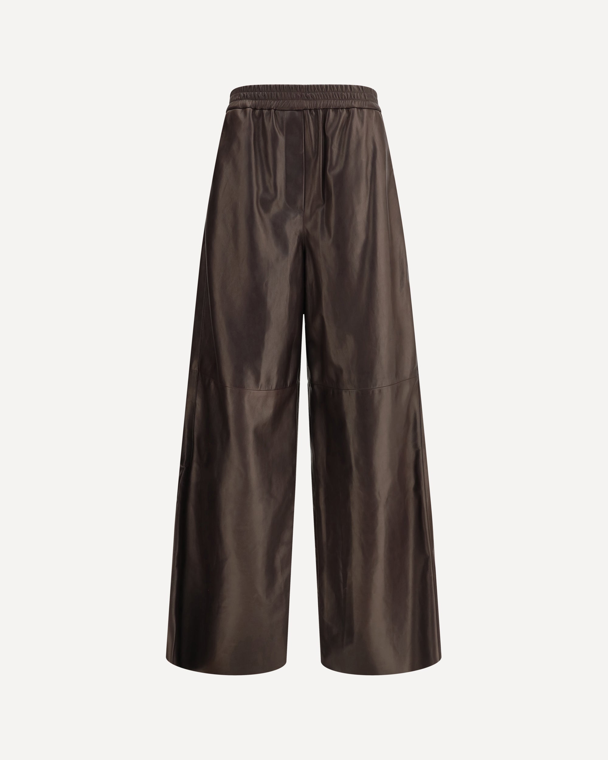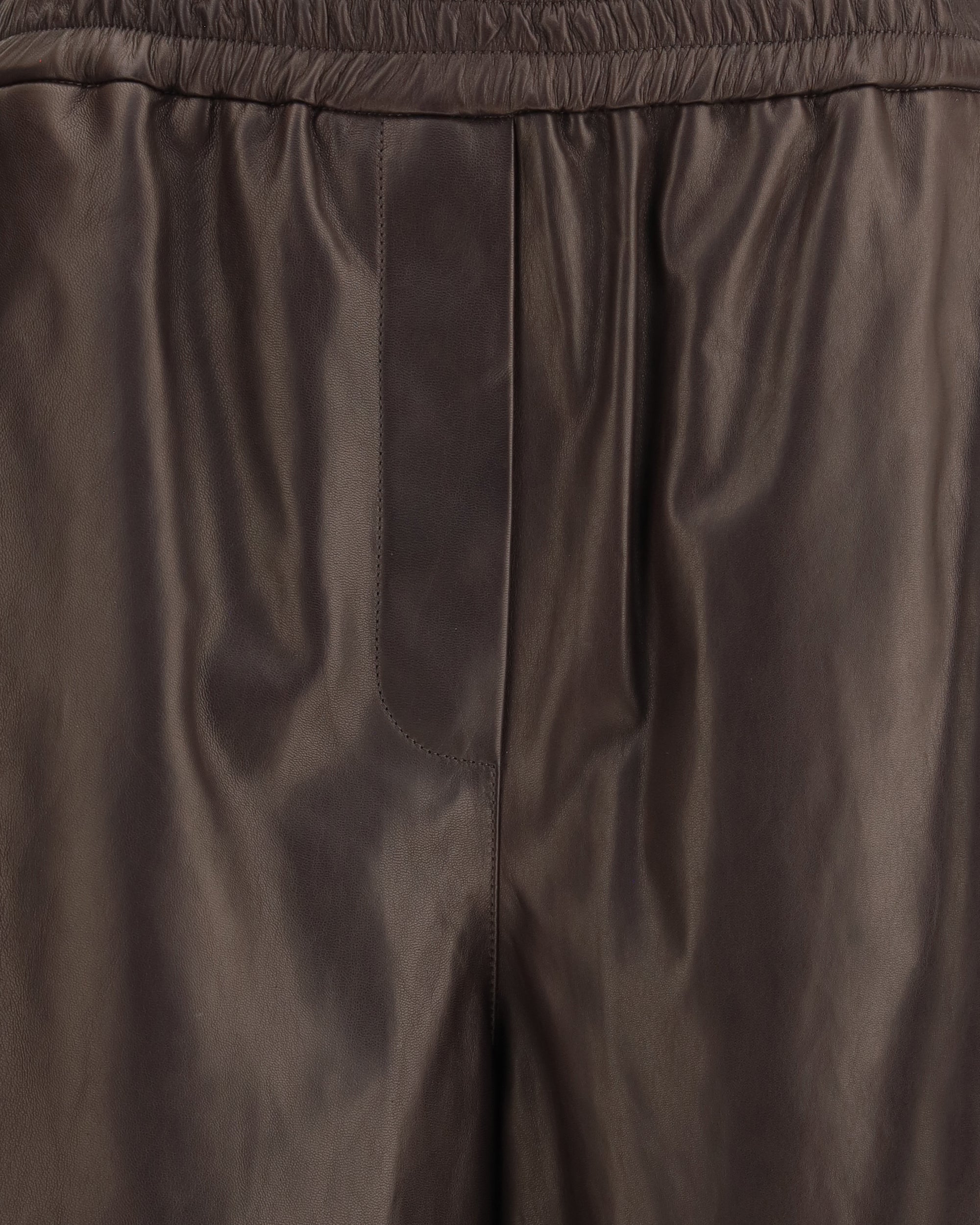 Giorgio Armani's Lambskin nappa leather Pants combine luxury and understatement in an essential design. Featuring a straight silhouette and an elastic strap for comfort and fit, they feature a zipper closure, two side pockets and a patch pocket on the back. The softness of the leather lends elegance and fluidity, making it perfect for sophisticated looks with a modern touch.