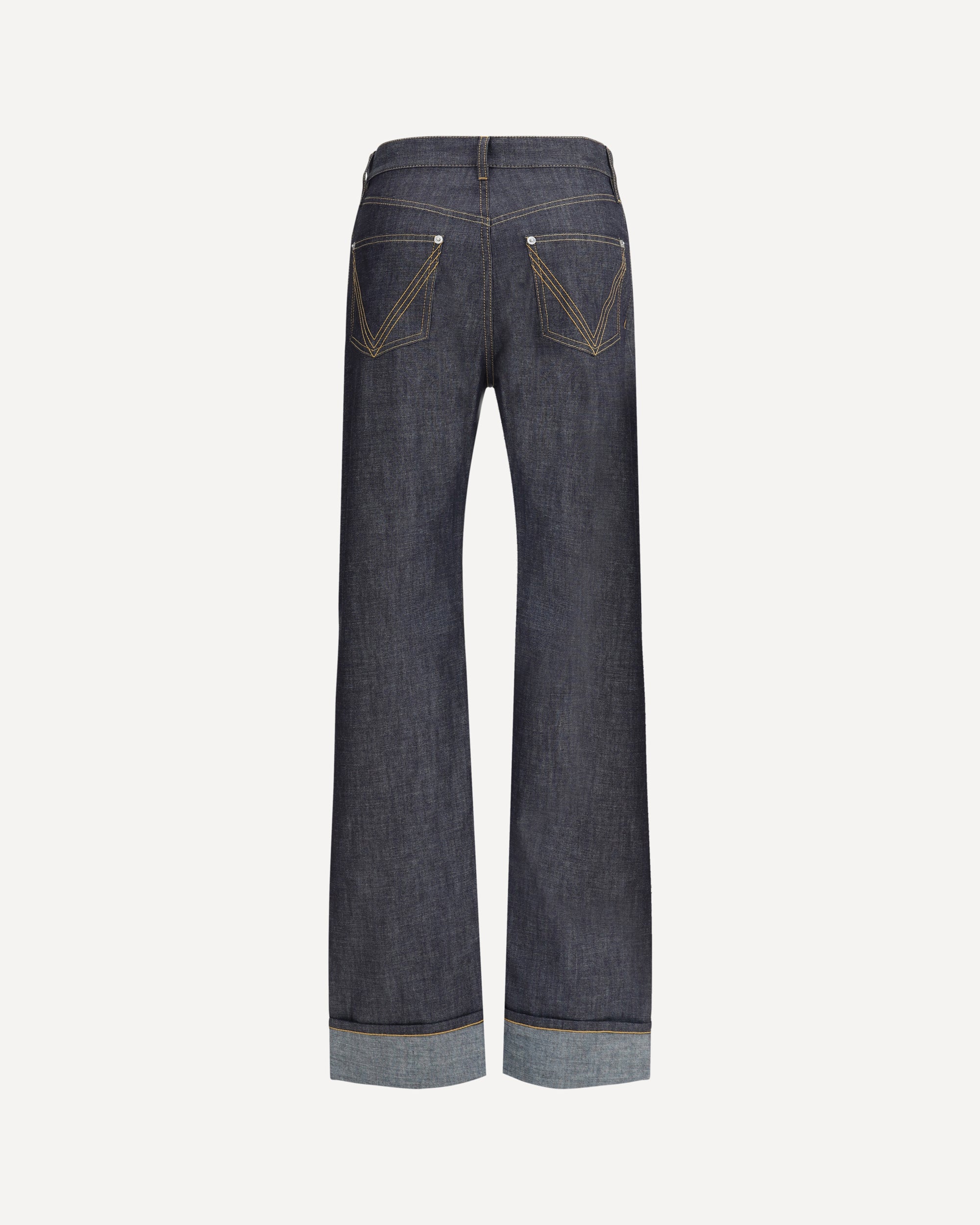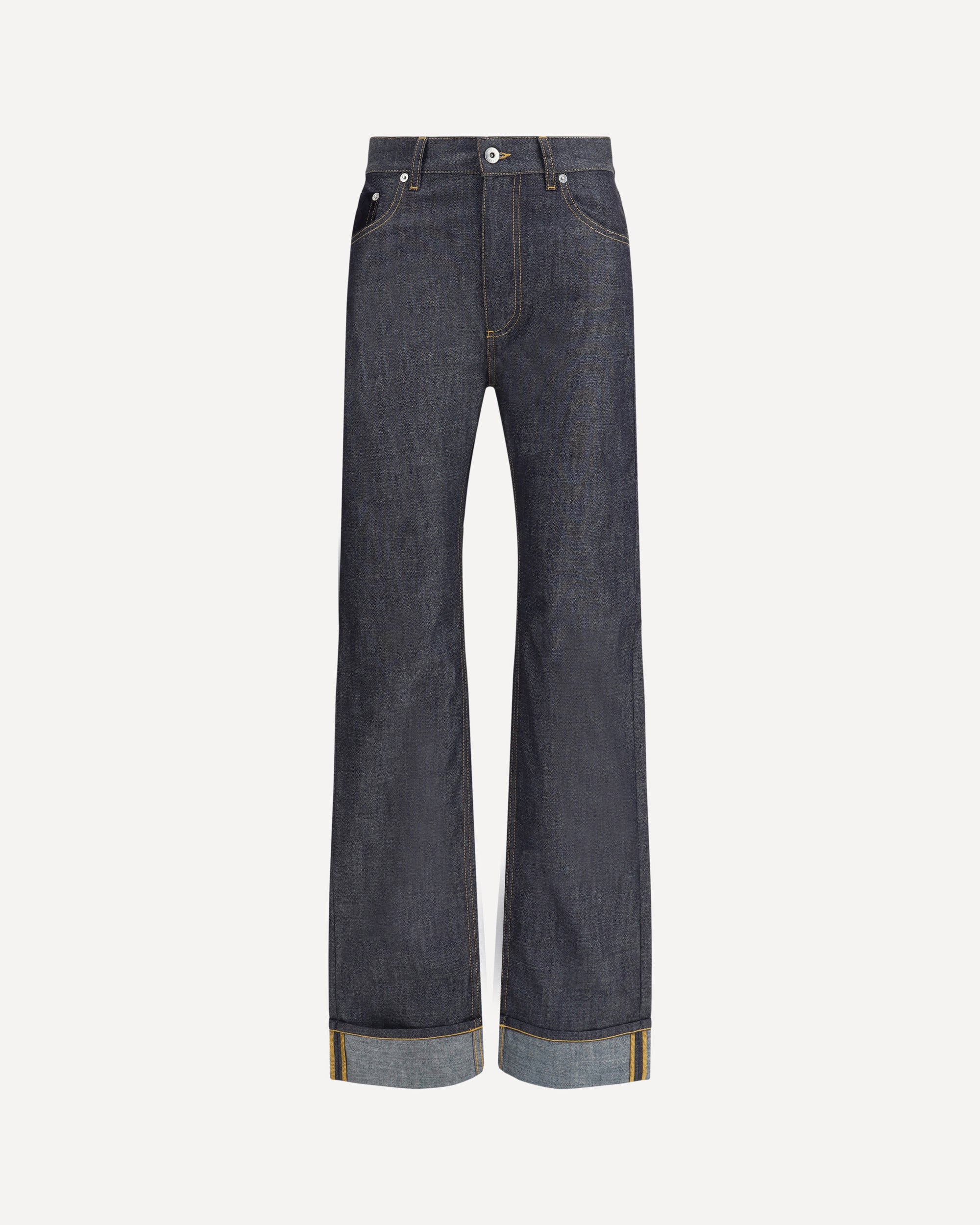 Bottega Veneta's turn-up Jeans combine the essentiality of denim with the brand's iconic details. Made in a classic straight five-pocket style, they feature belt loops at the waist and a front zip-and-button closure. The signature intreccio detail and turn-up at the hem add a sophisticated touch to a casual garment with timeless style.