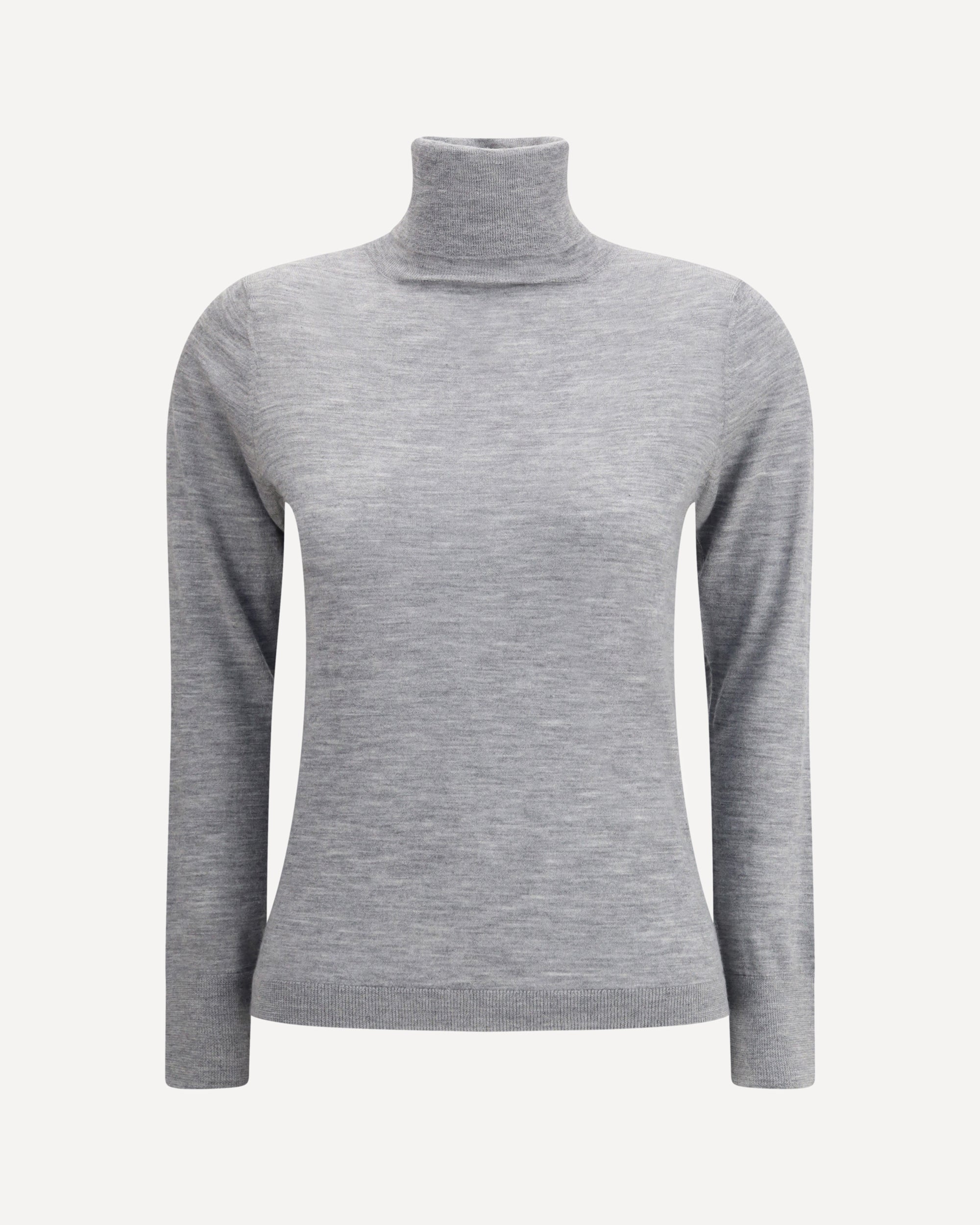 The cashmere turtleneck Sweater by Allude is an essential and refined garment, perfect for facing the cold season with elegance. Made of fine cashmere, it features a ribbed collar, hem and cuffs, discreetly defining the line. The gray mélange pattern gives a soft and versatile touch, ideal for both casual and more sophisticated looks.