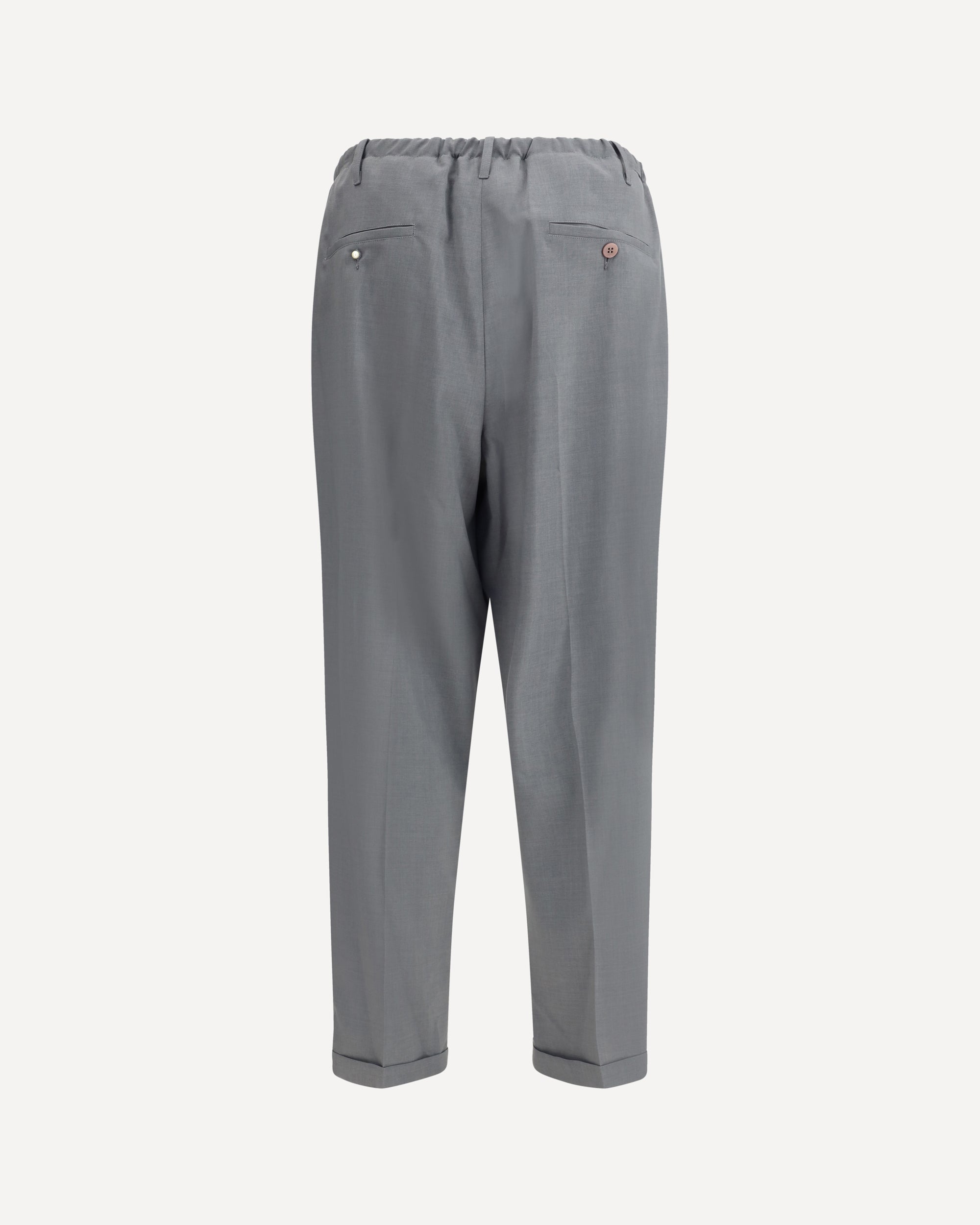 Magliano's wool elastic Pants combine comfort and character in a relaxed design. They feature an elasticized waistband with front zipper closure and belt loops, plus two practical side pockets. The baggy-cut bottom hem completes the look with a contemporary, casual touch.