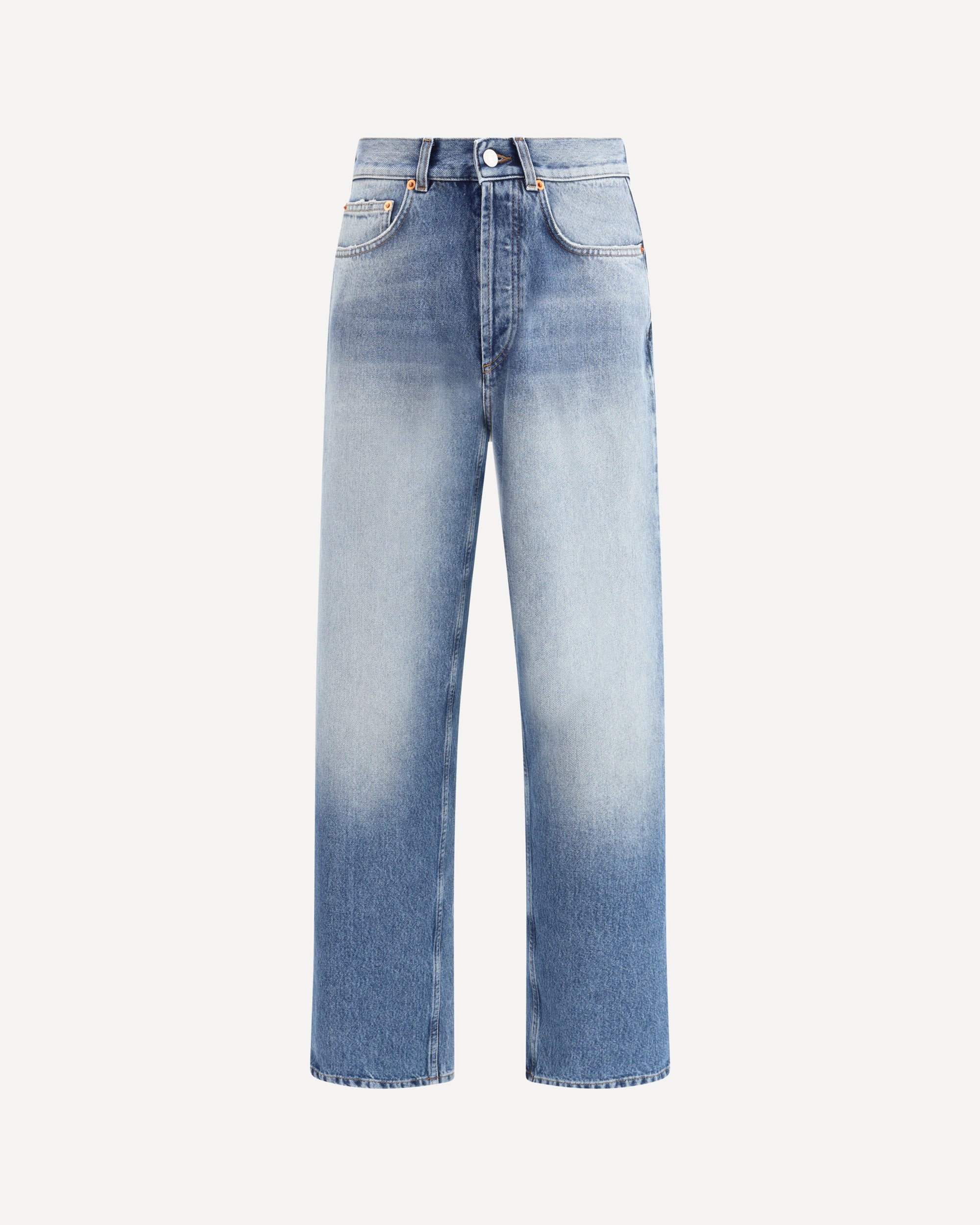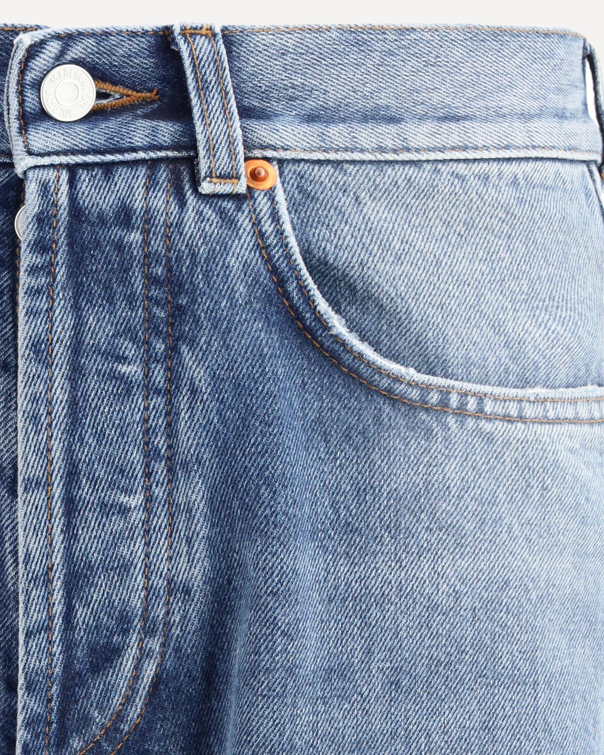 The Denim Trousers by Magliano blend the casual essence of the five-pocket design with a refined, contemporary attitude. The classic construction, featuring belt loops and a front button closure, is enhanced by a branded patch on the back a signature detail that highlights the label’s identity. With a relaxed fit and structured texture, this piece captures the effortless urban elegance that defines the Maison’s aesthetic.