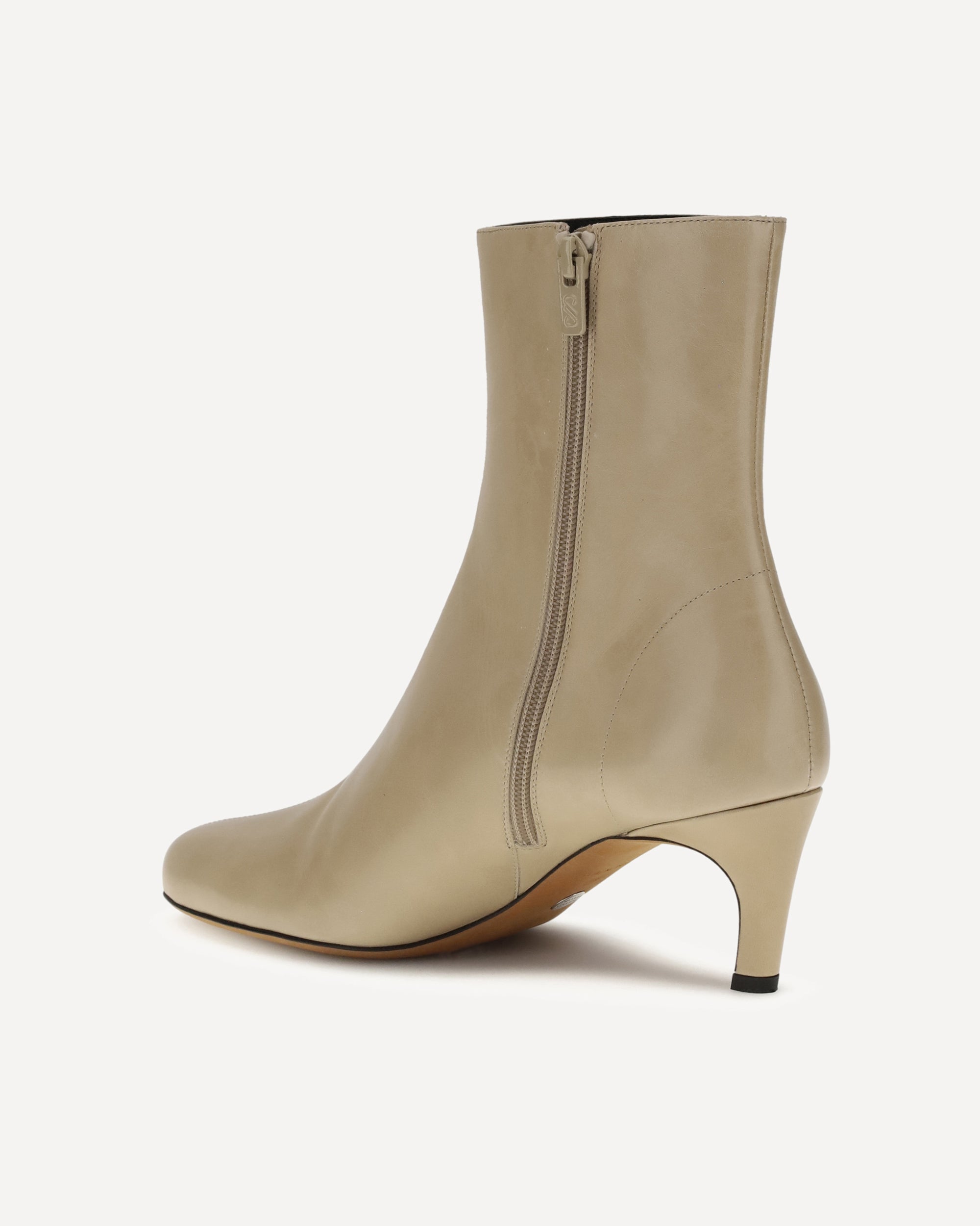 The Uma Ankle Boots by Proenza Schouler are crafted from shiny calfskin and feature a classic ankle-high silhouette. The design is enhanced by an exposed side zip, embellished with a monogrammed pull tab, adding a graphic and contemporary touch.